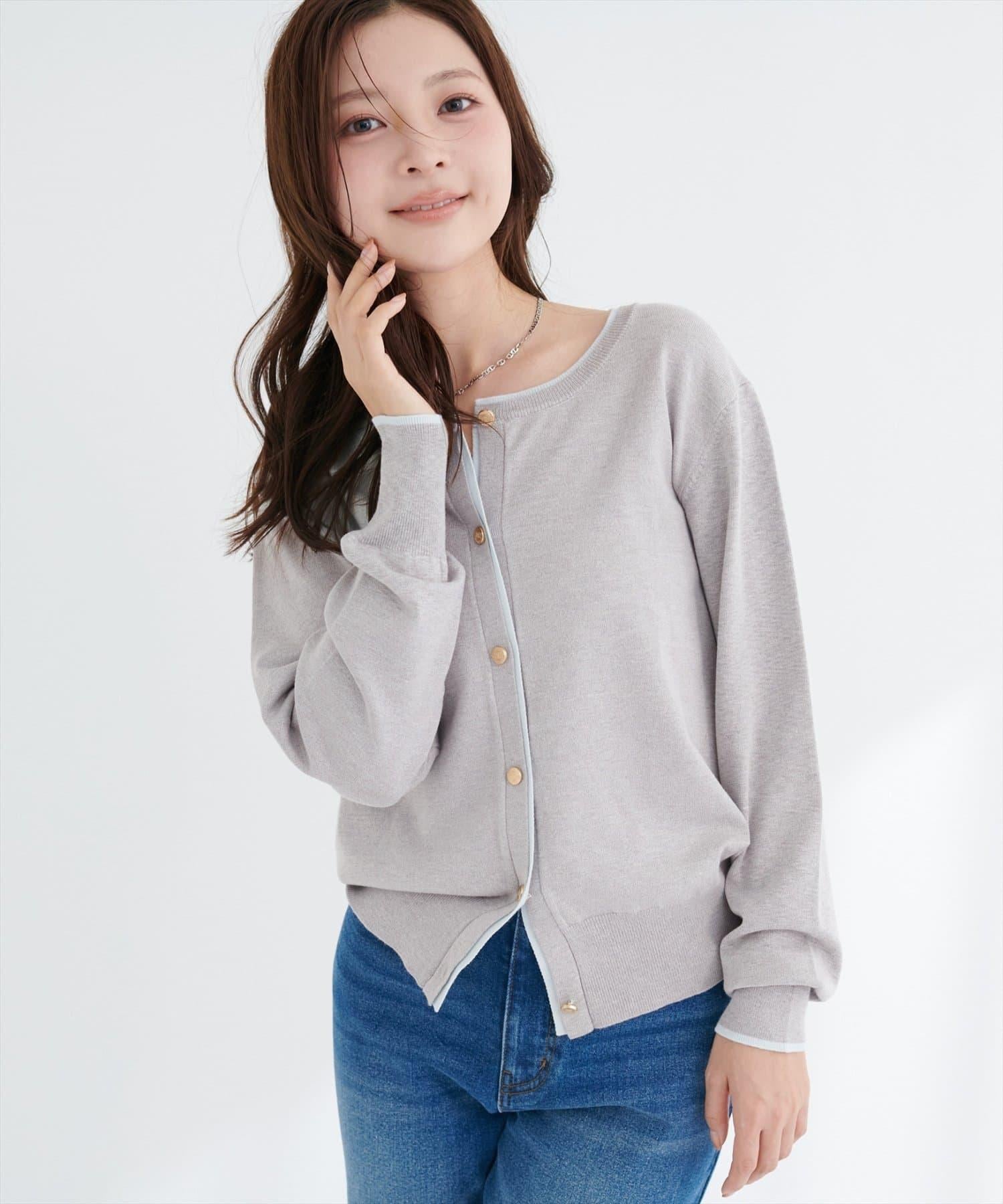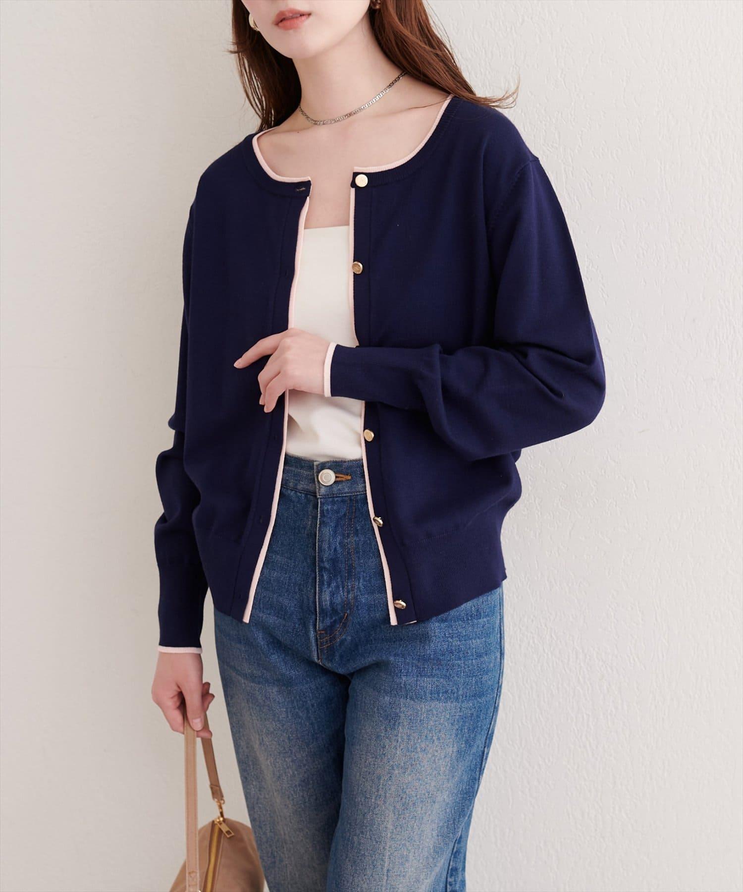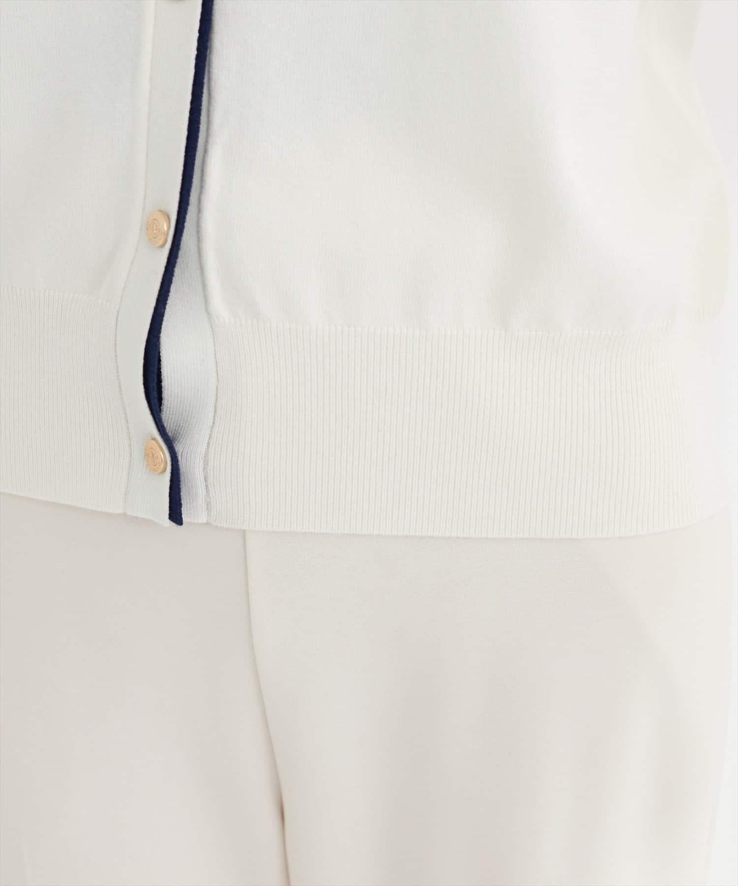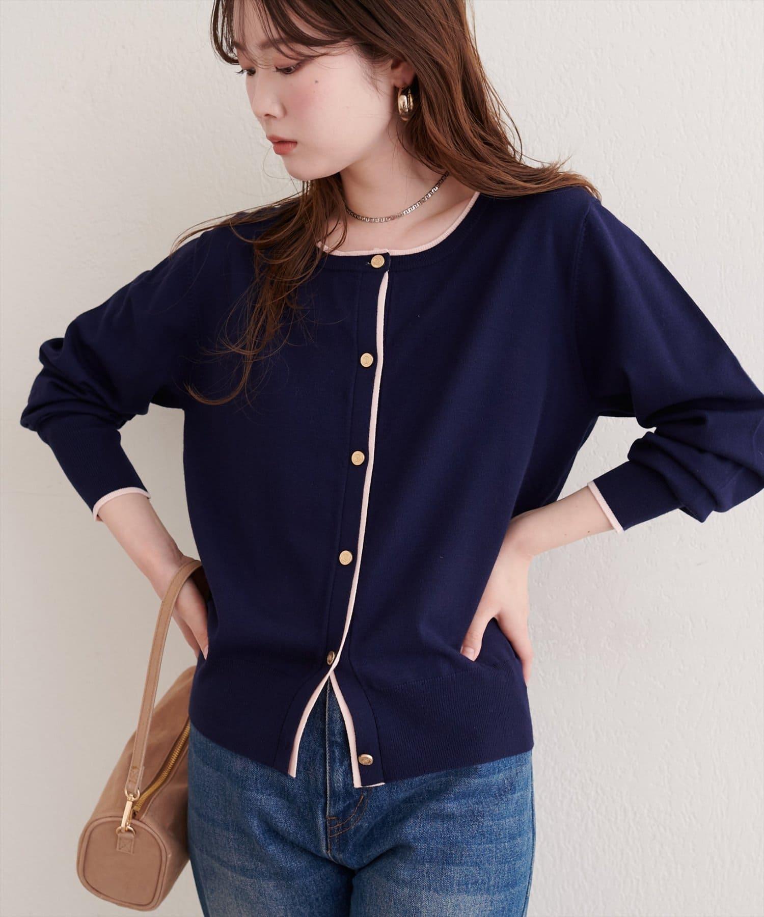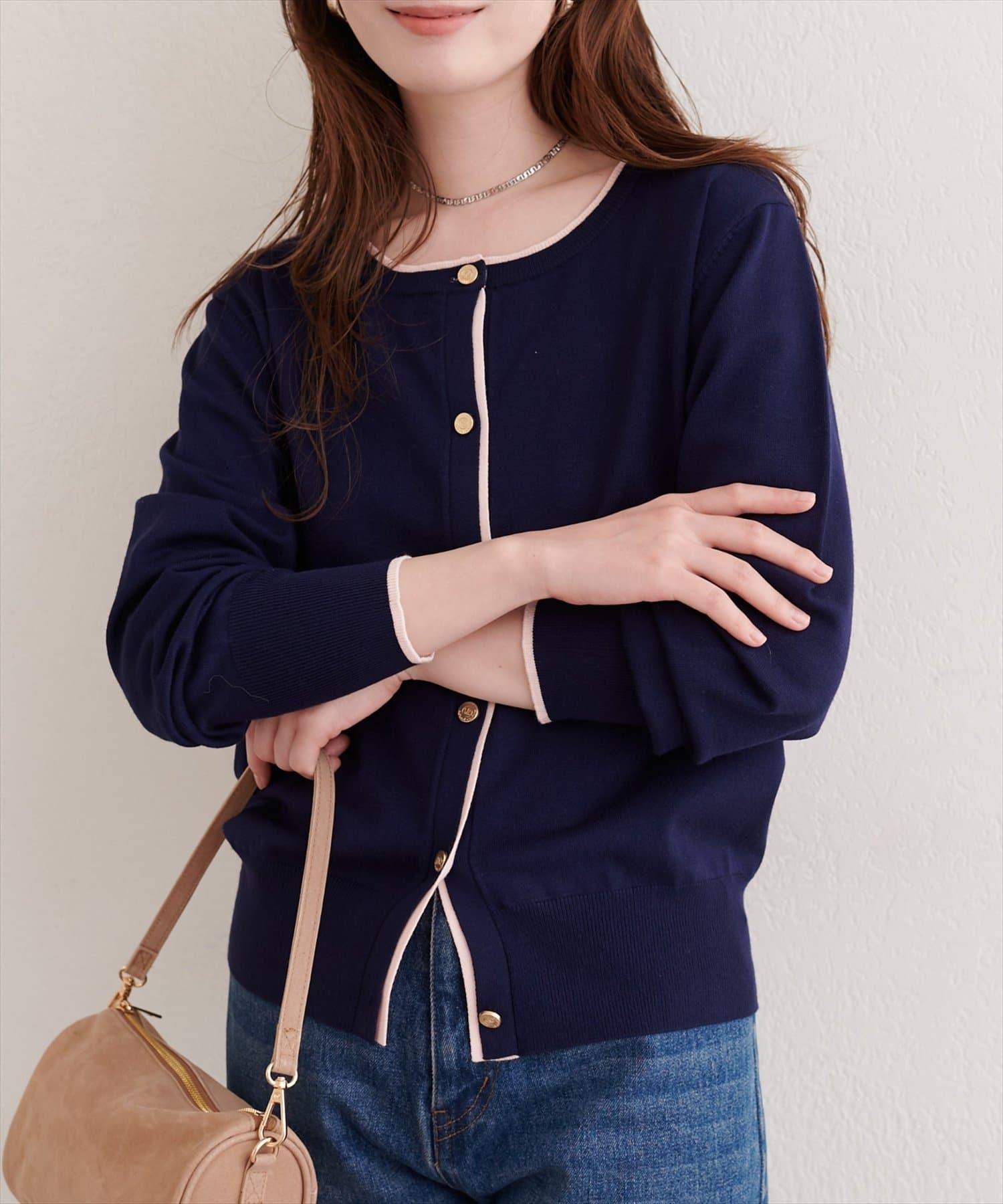 金色紐扣閃耀著優雅的光澤,為整件開衫增添了一絲魅力,使其宛如配飾。