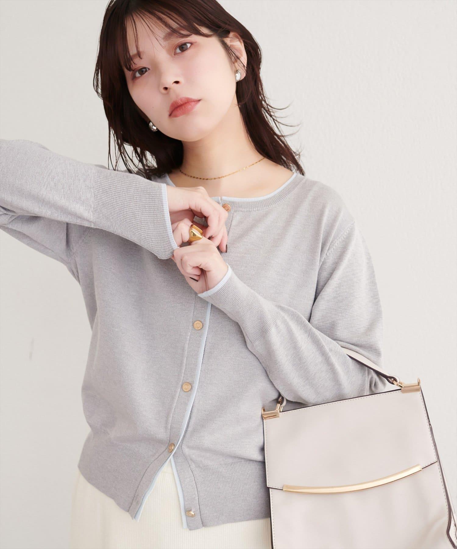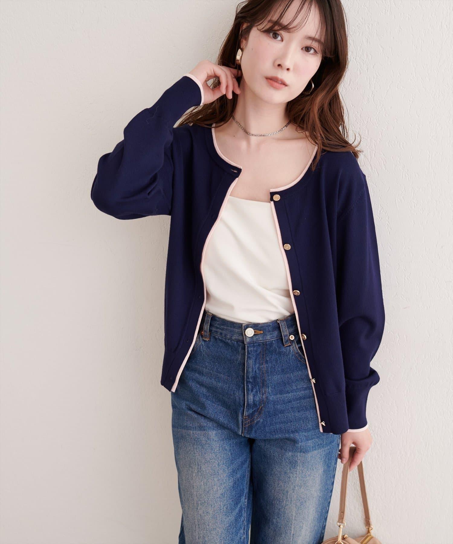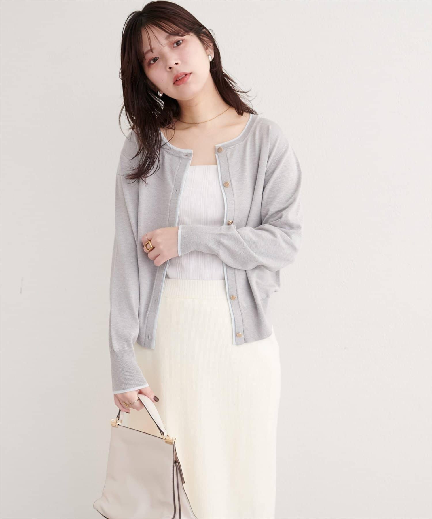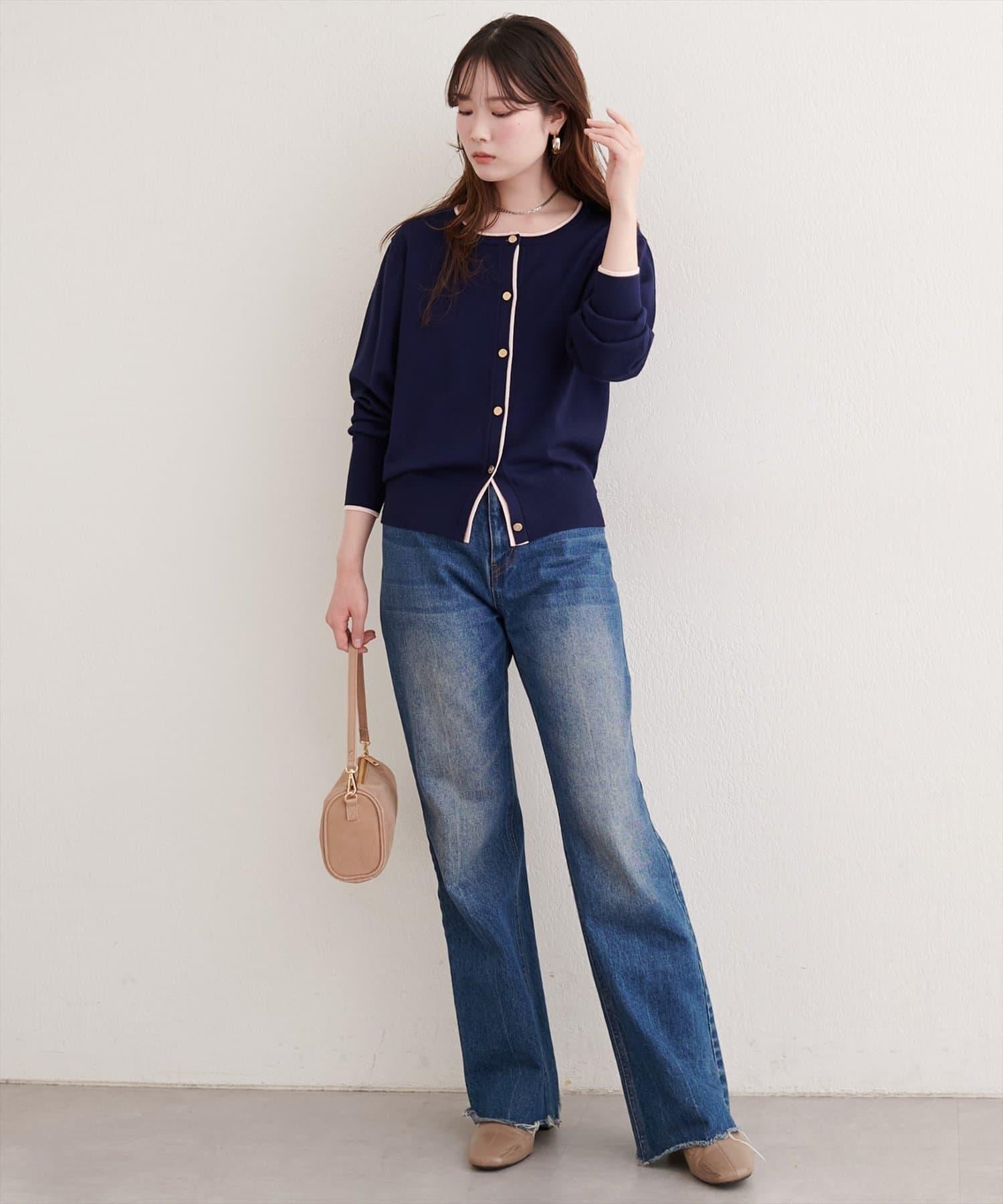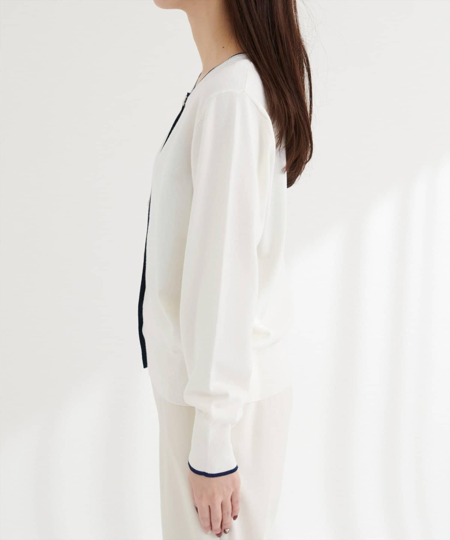 金色紐扣閃耀著優雅的光澤,為整件開衫增添了一絲魅力,使其宛如配飾。
