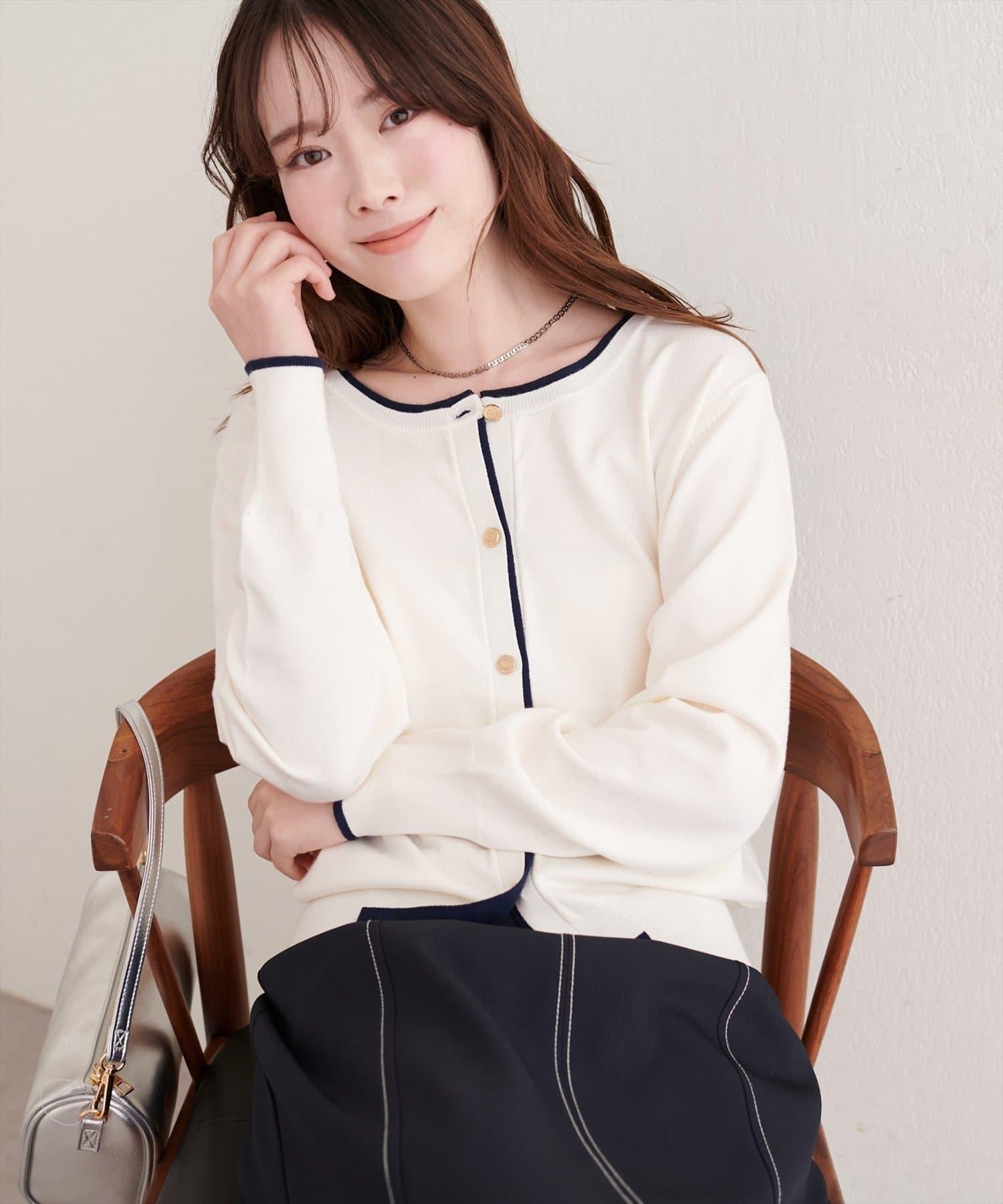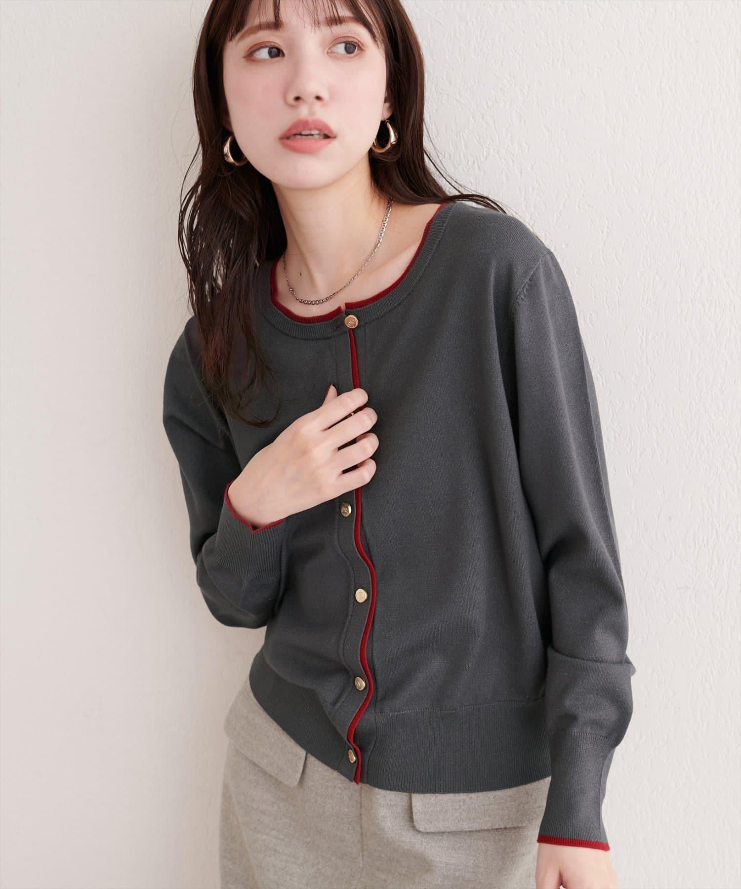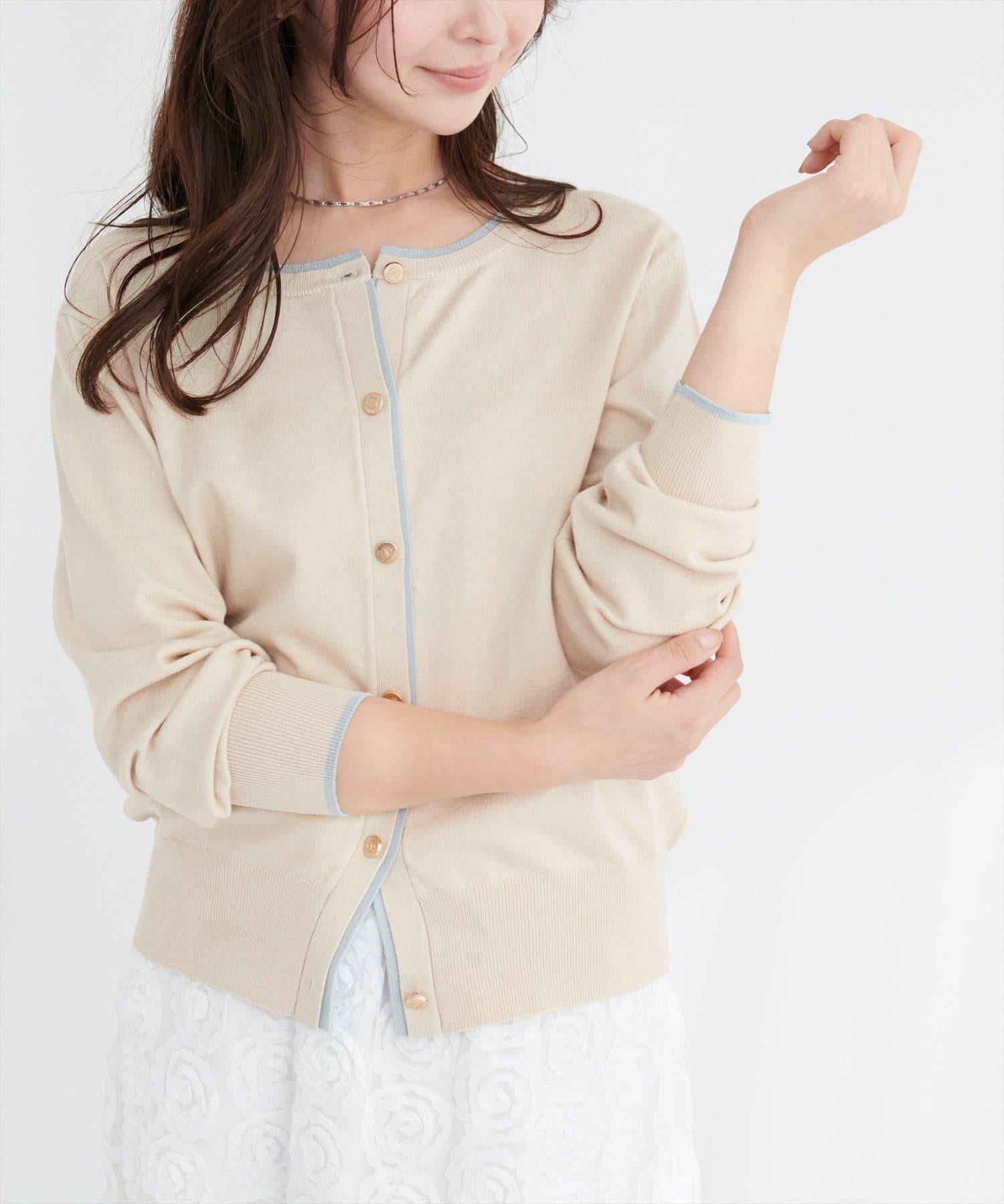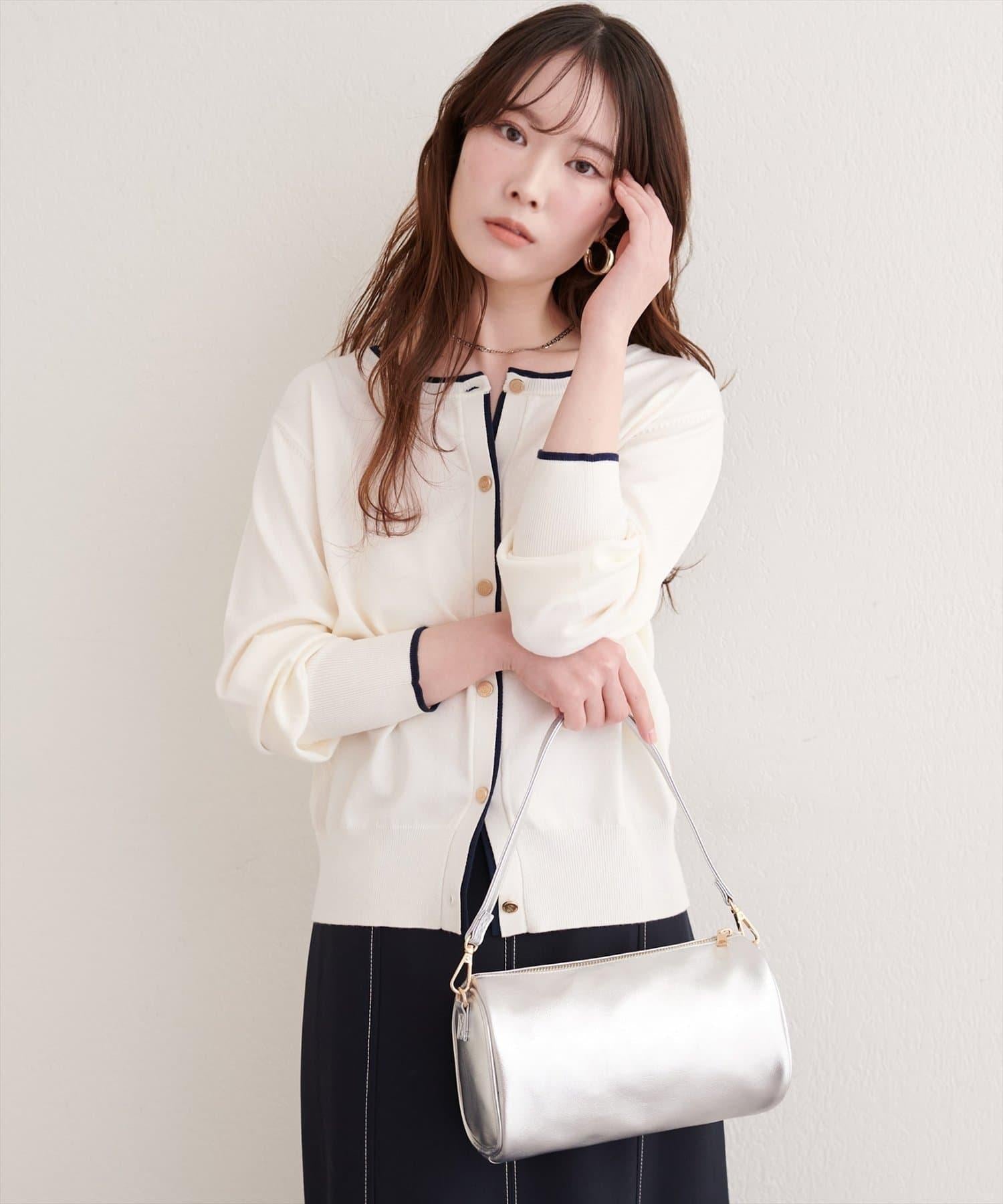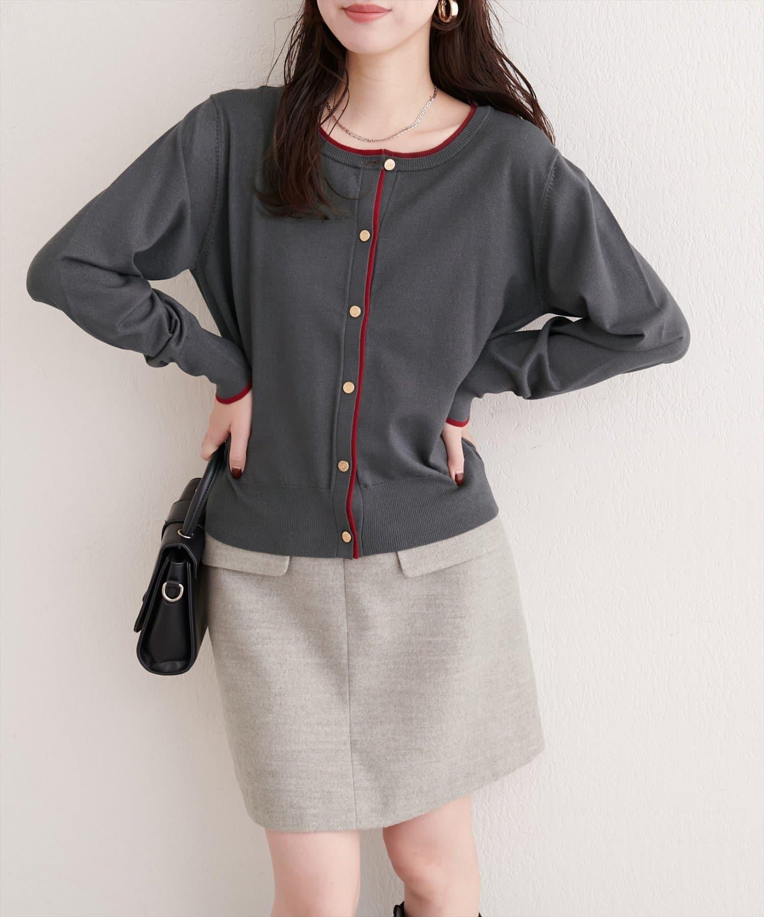 金色紐扣閃耀著優雅的光澤,為整件開衫增添了一絲魅力,使其宛如配飾。