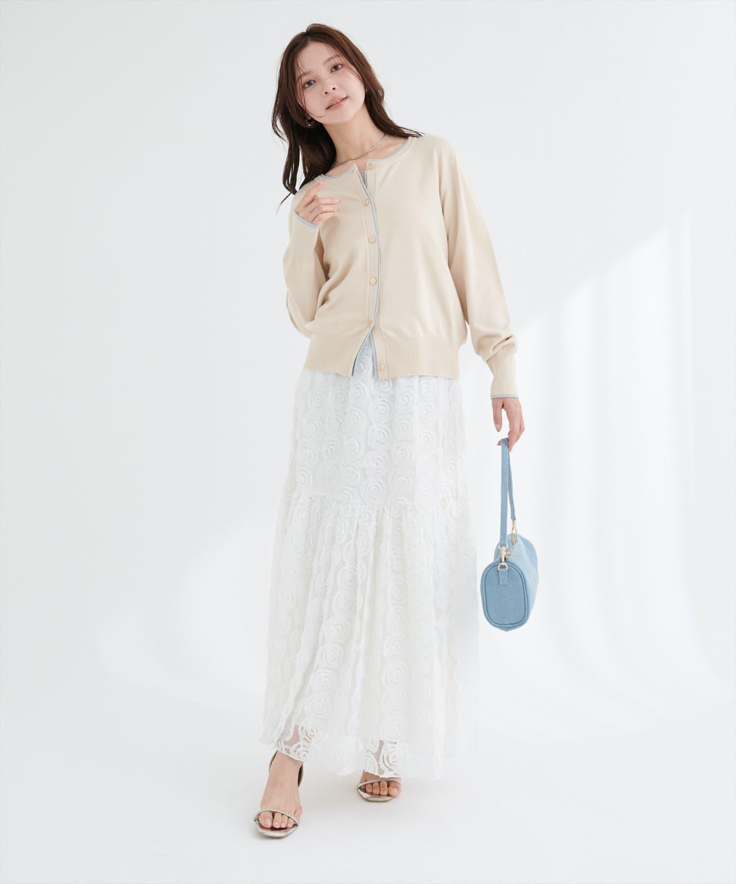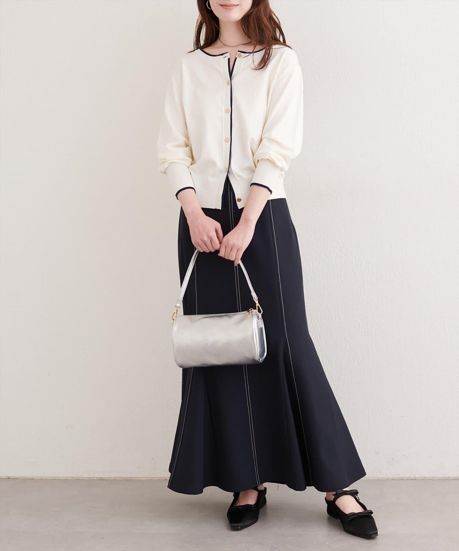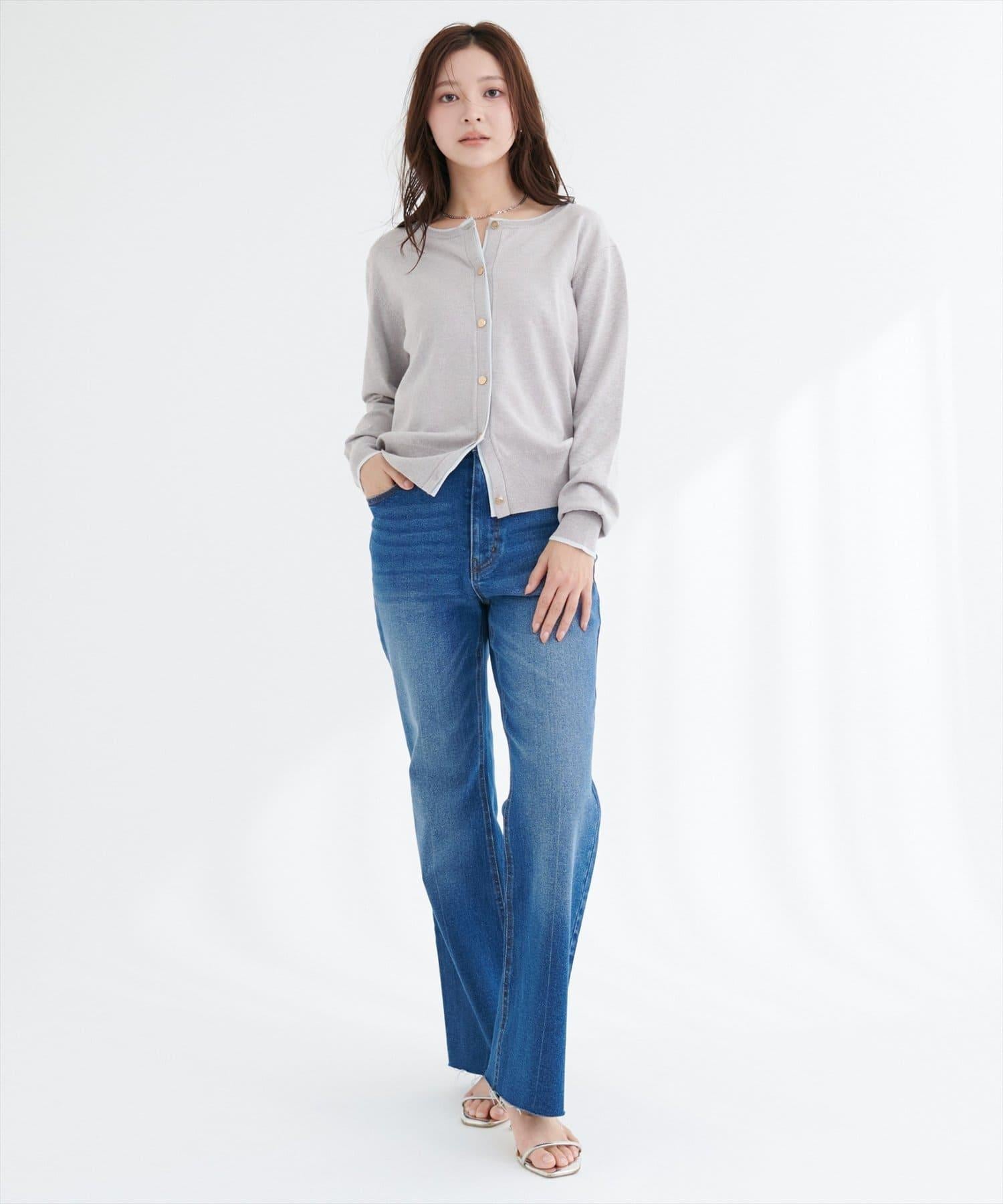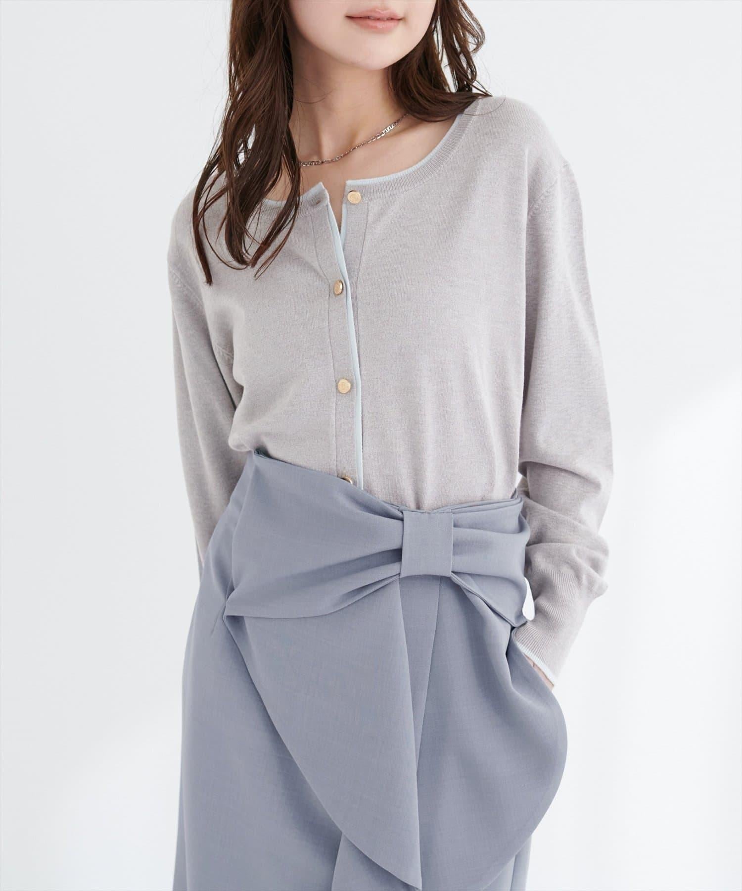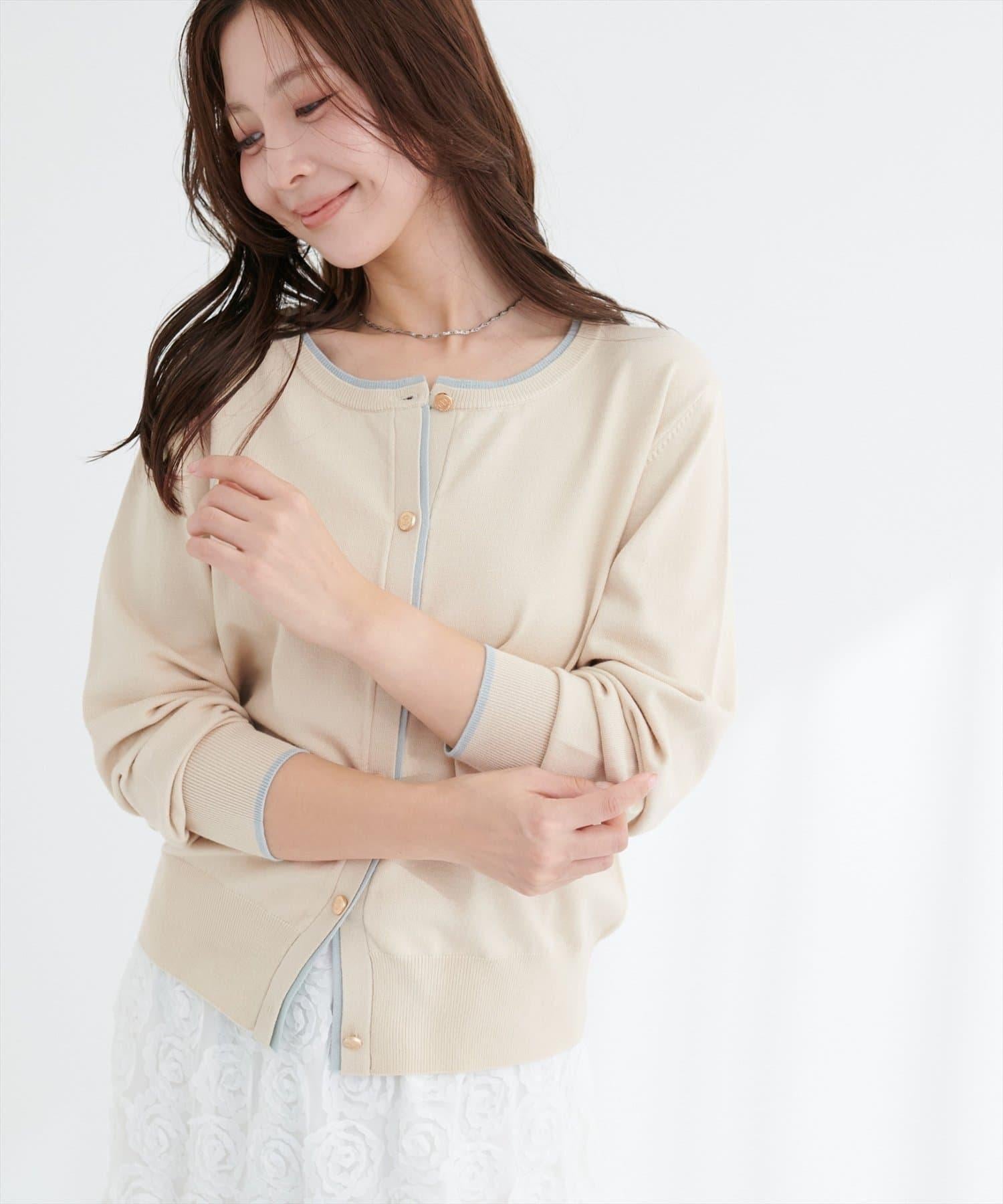 金色紐扣閃耀著優雅的光澤,為整件開衫增添了一絲魅力,使其宛如配飾。