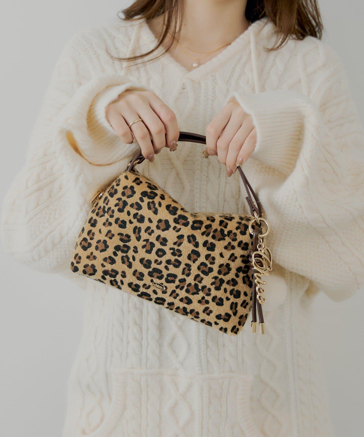 金色的品牌徽標吊飾為這款手袋增添了一抹亮色。