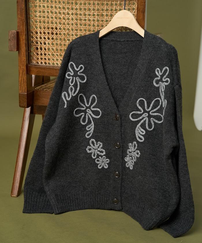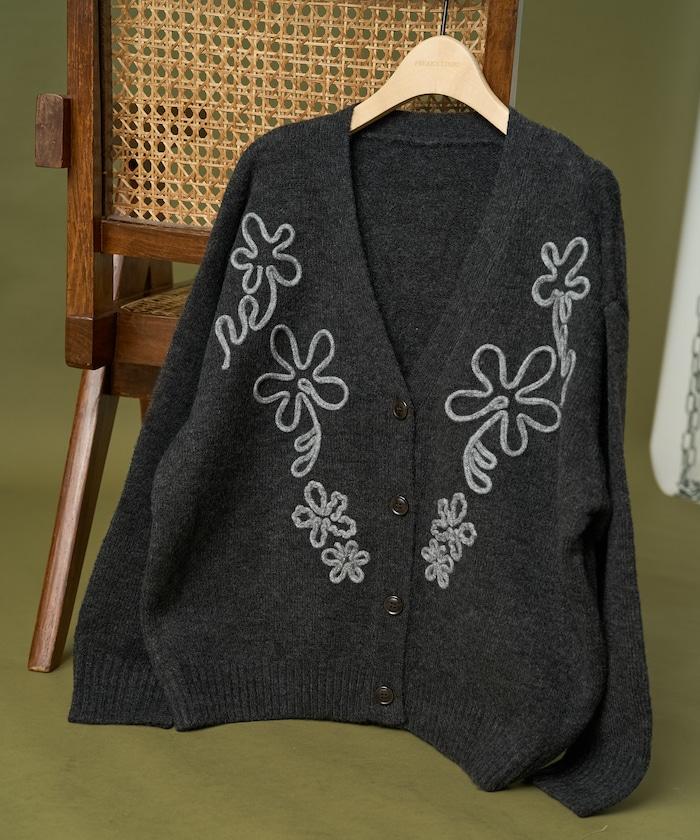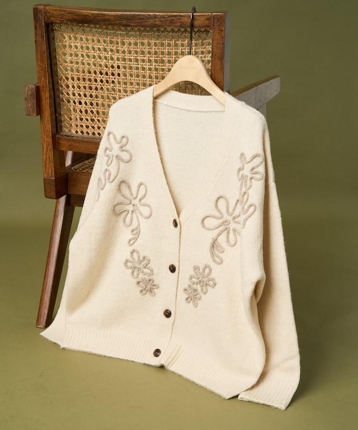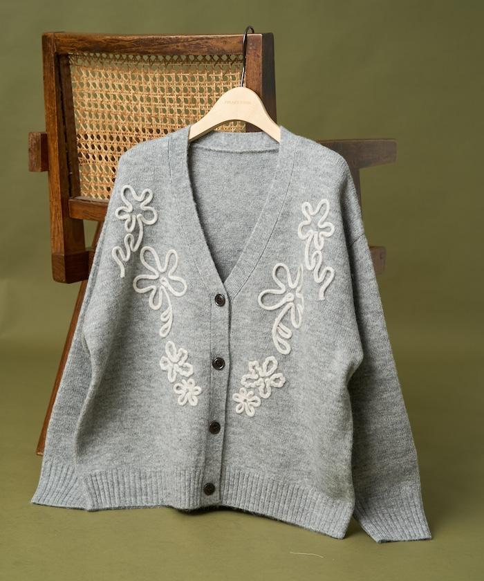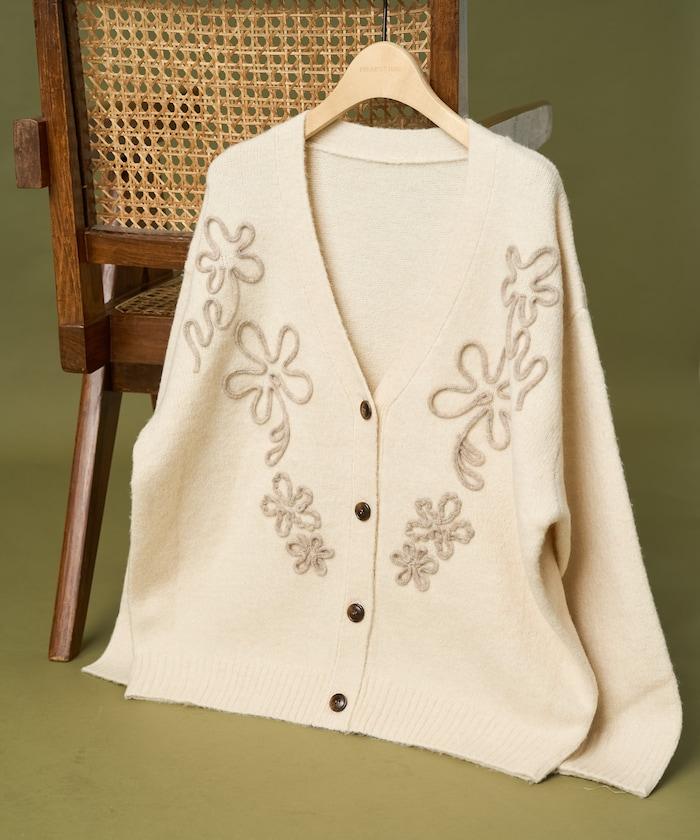 柔軟的質地和立體刺繡讓這款開衫成為全場的焦點。