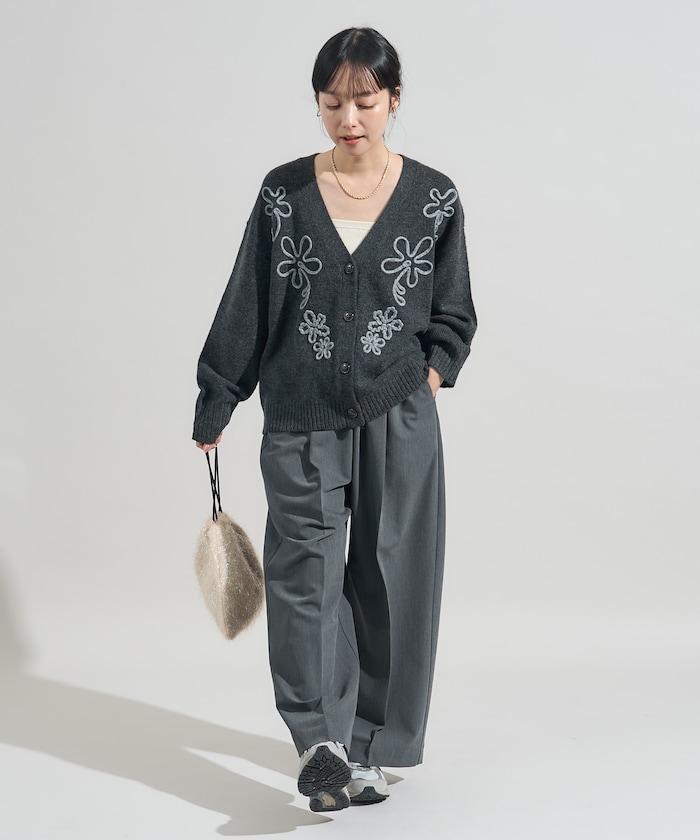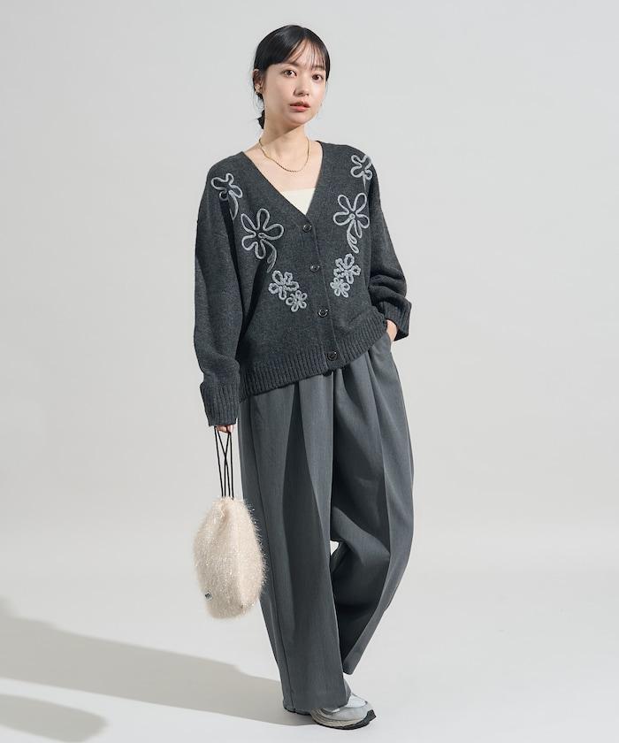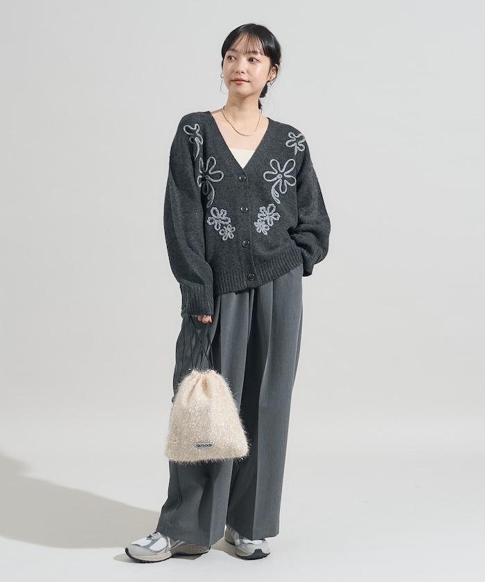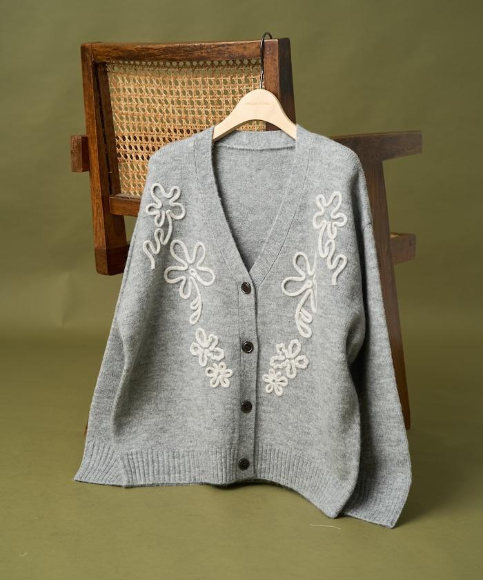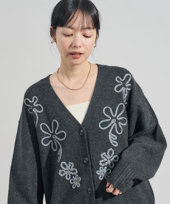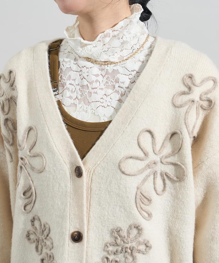 柔軟的質地和立體刺繡讓這款開衫成為全場的焦點。