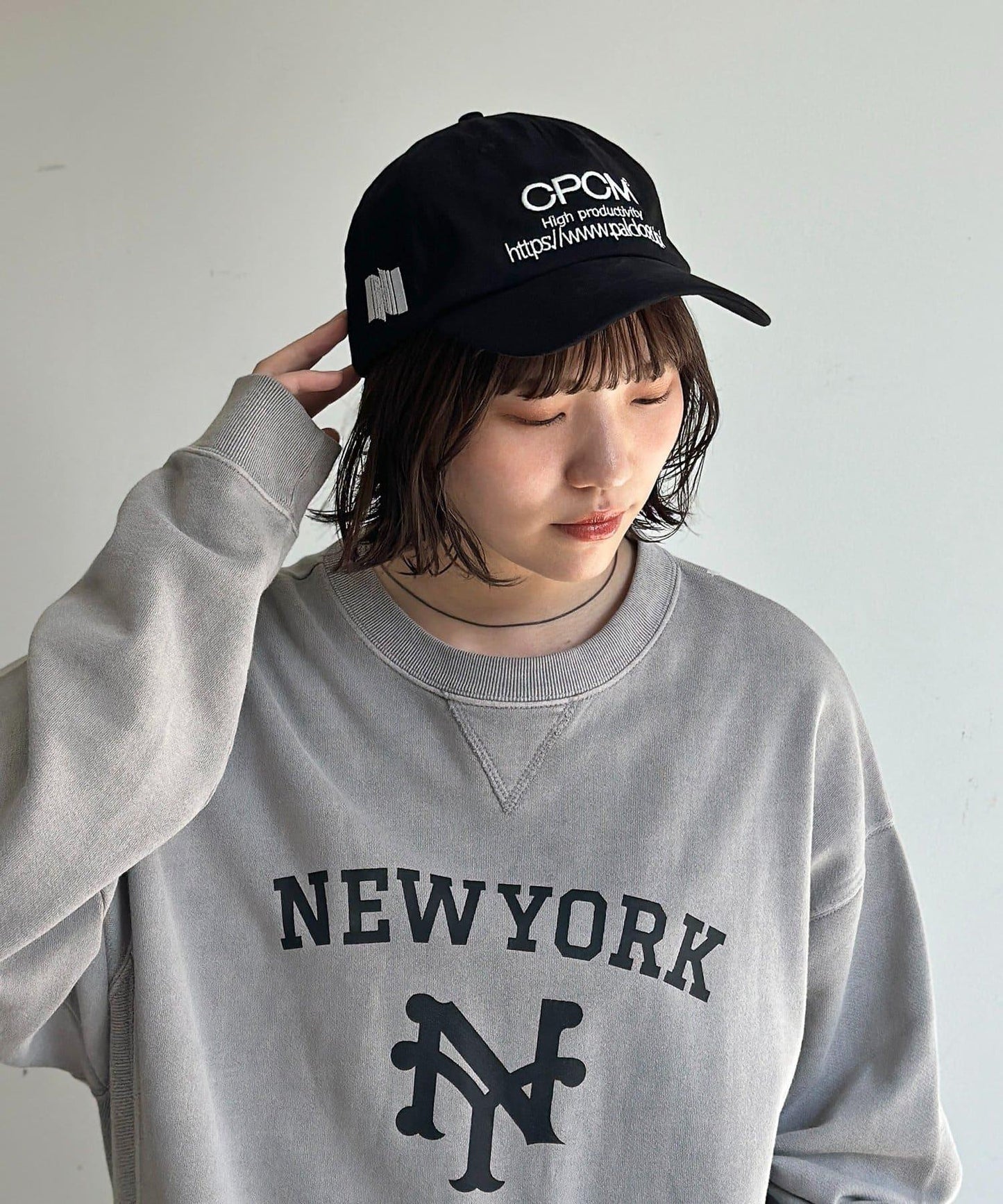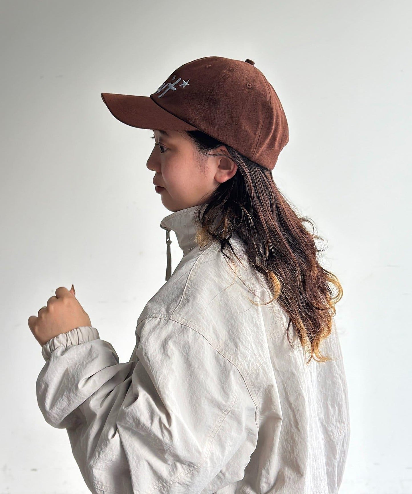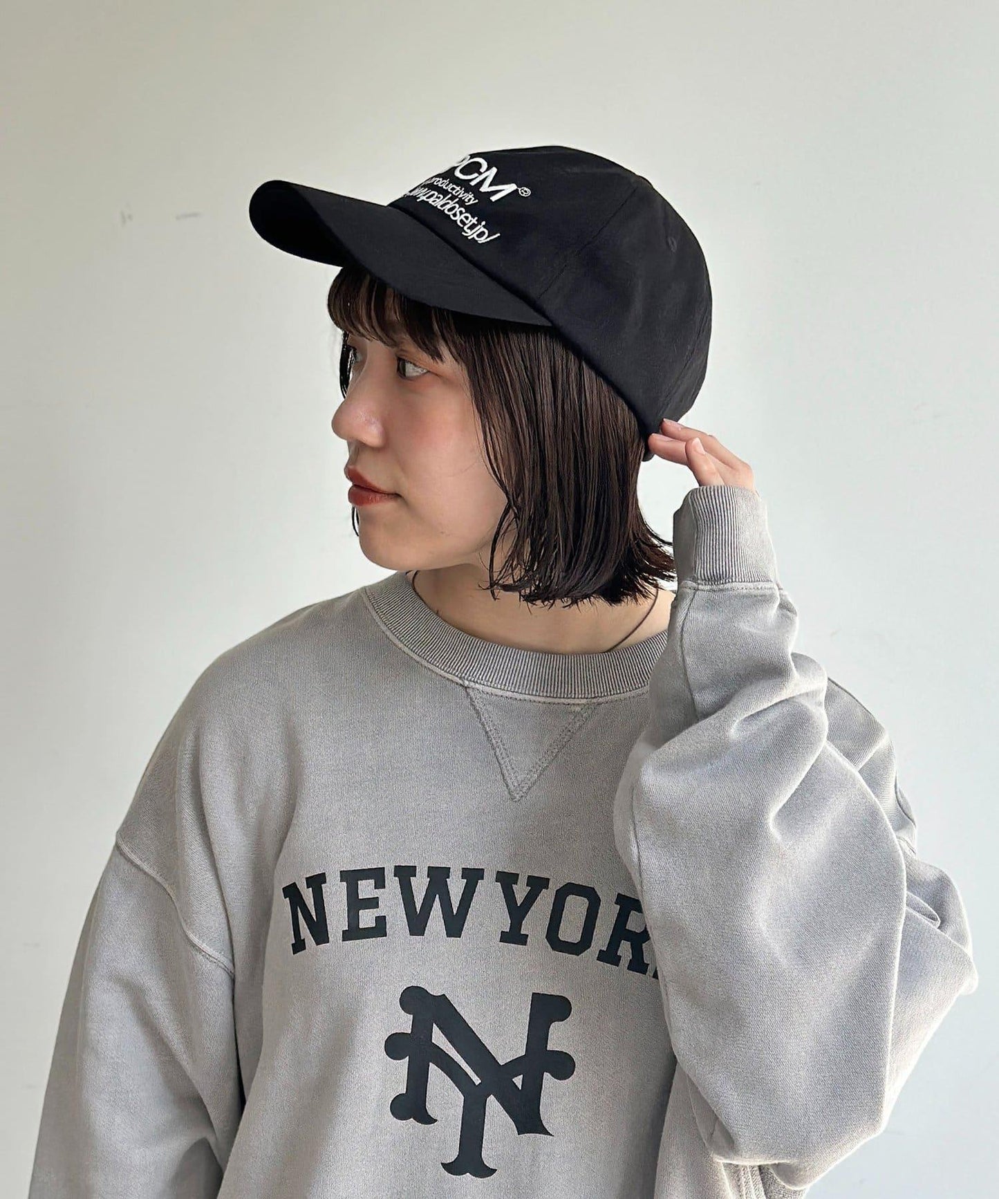 造型] 這頂帽子可與 T 恤和牛仔褲搭配。