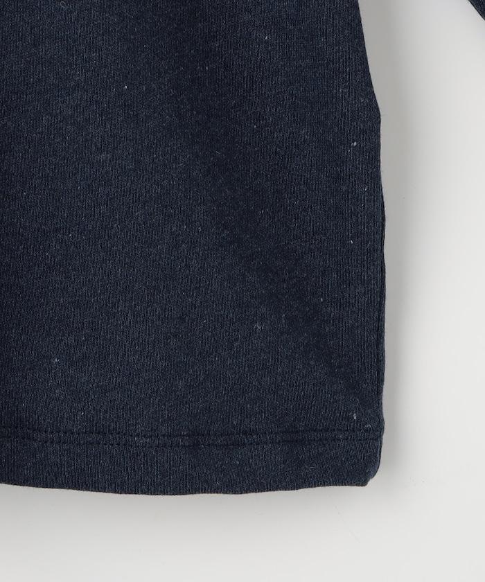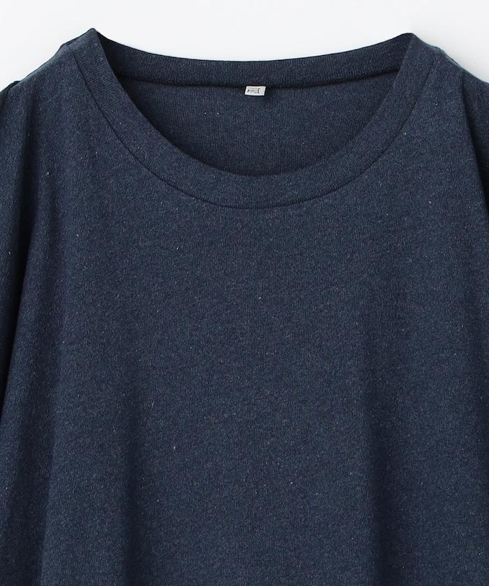 這款基本款 T 恤從正面看,肩部有不對稱的開衩設計。