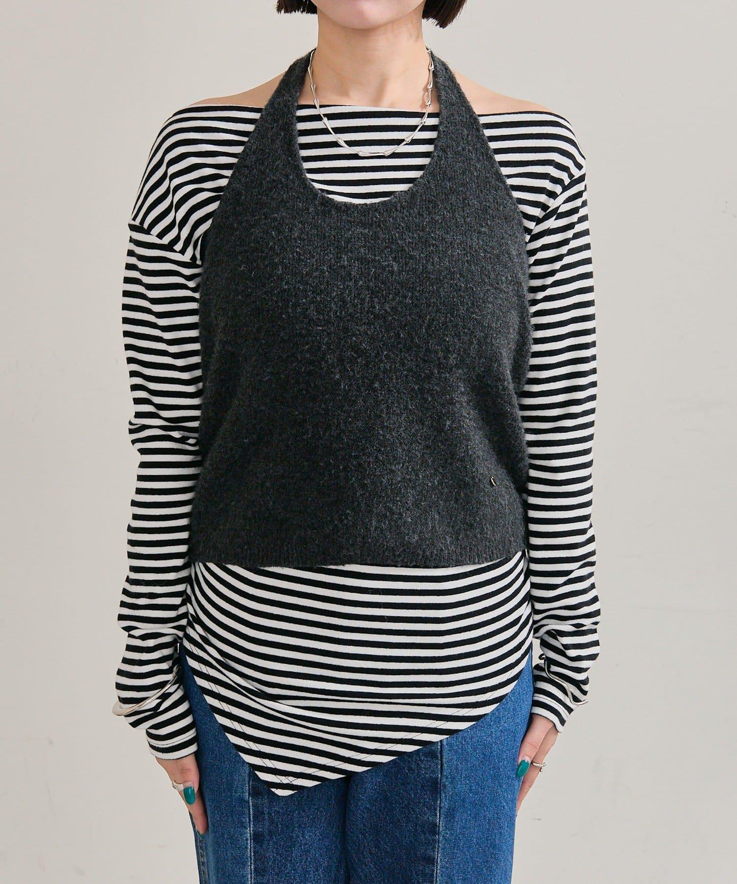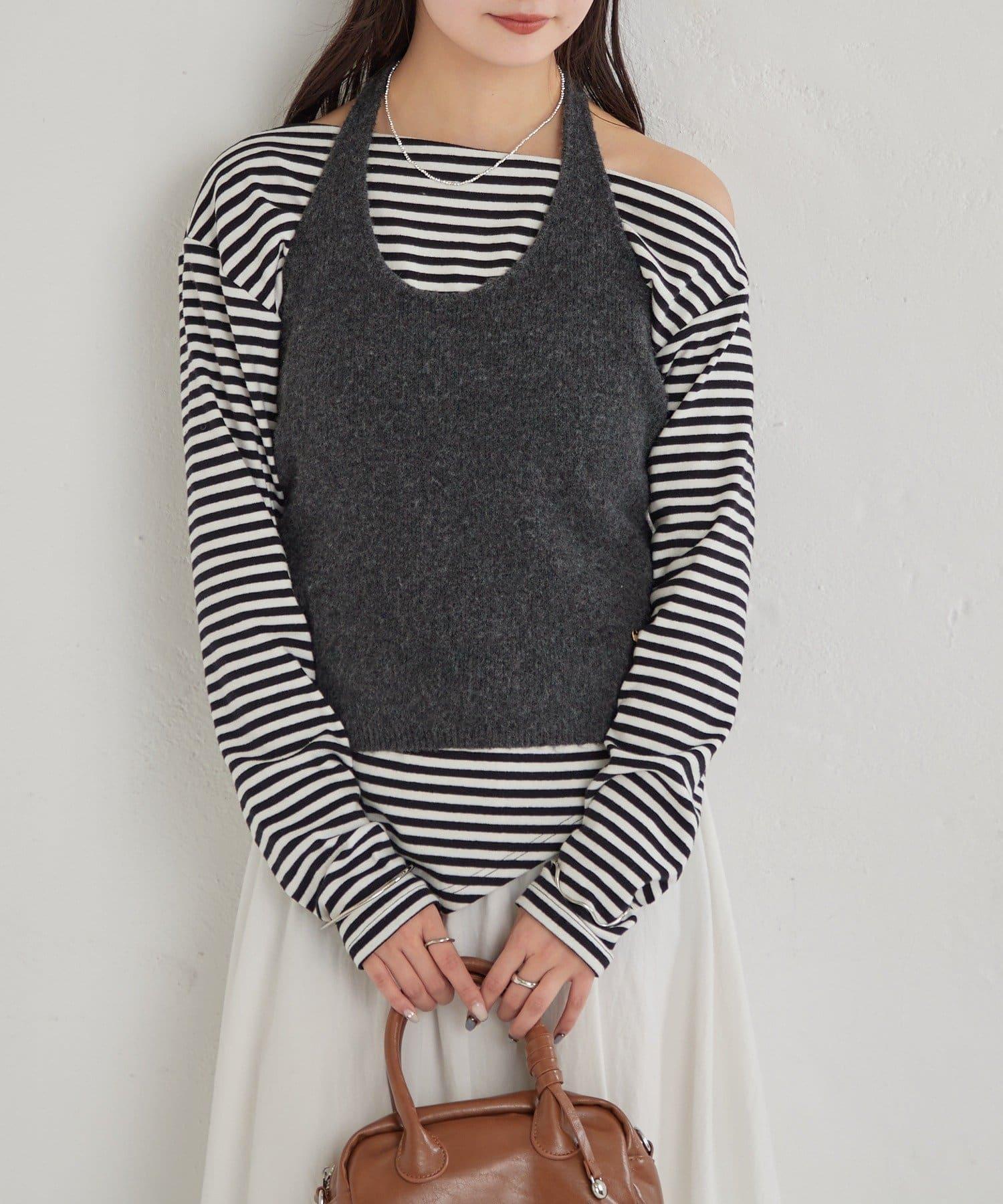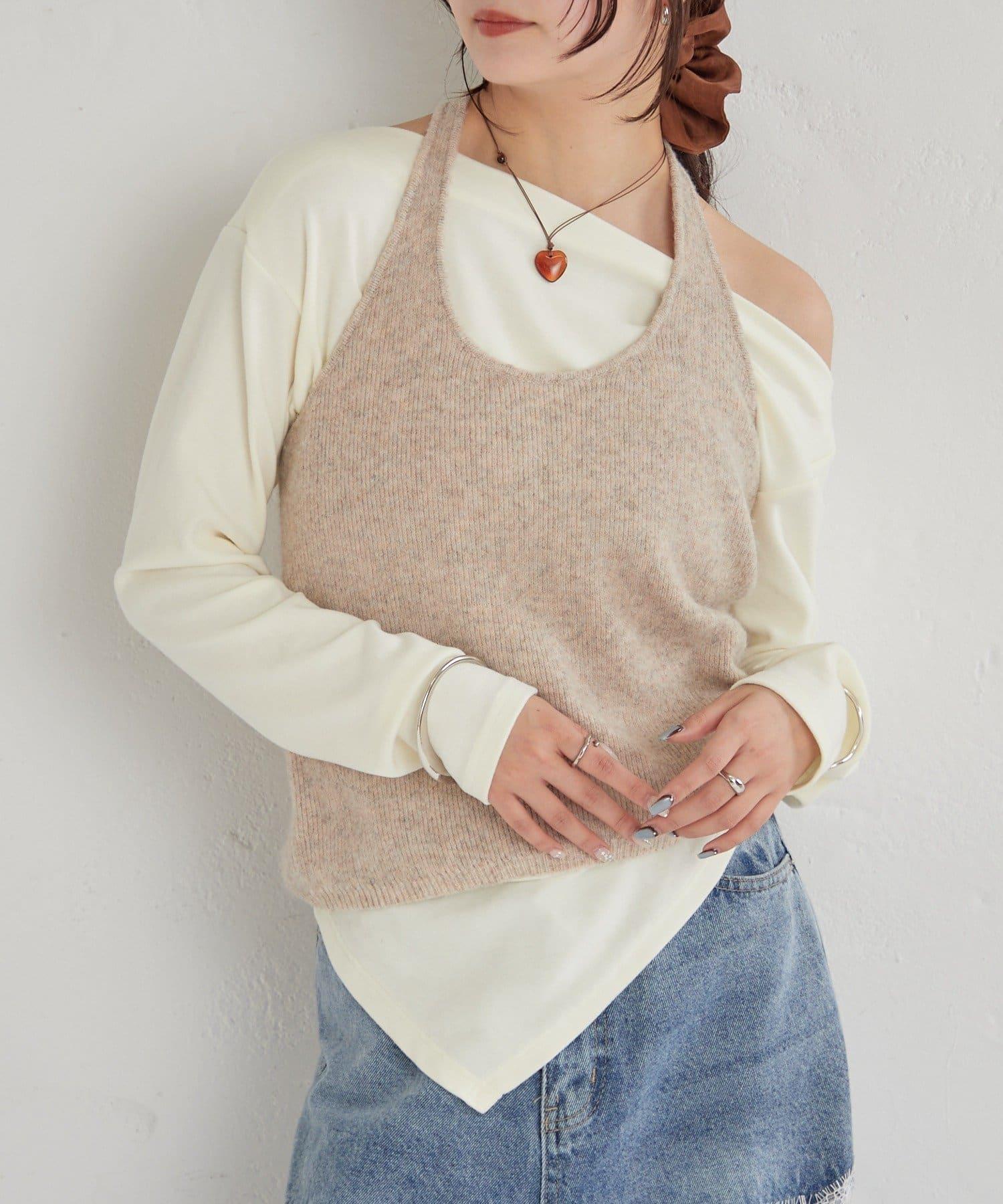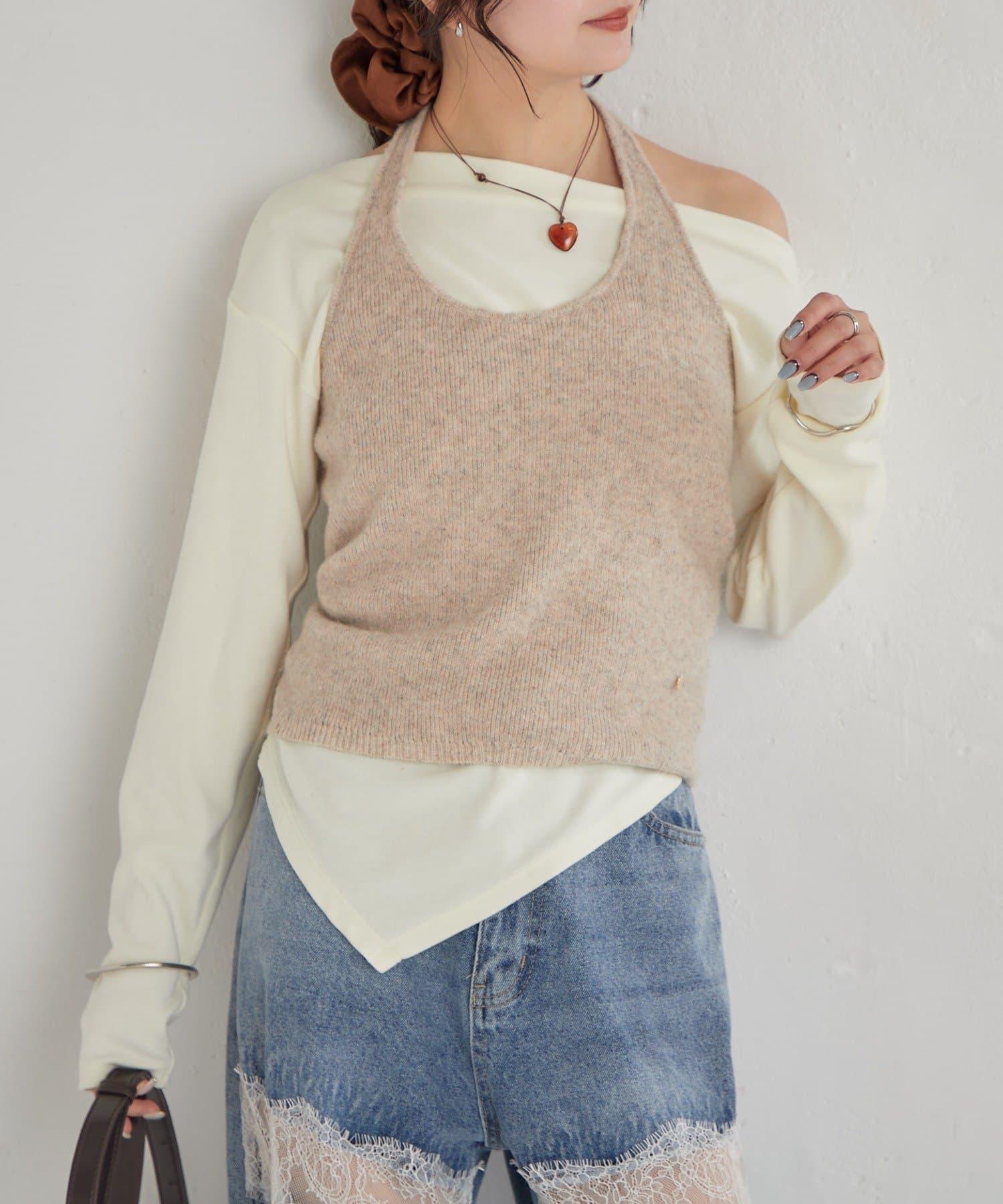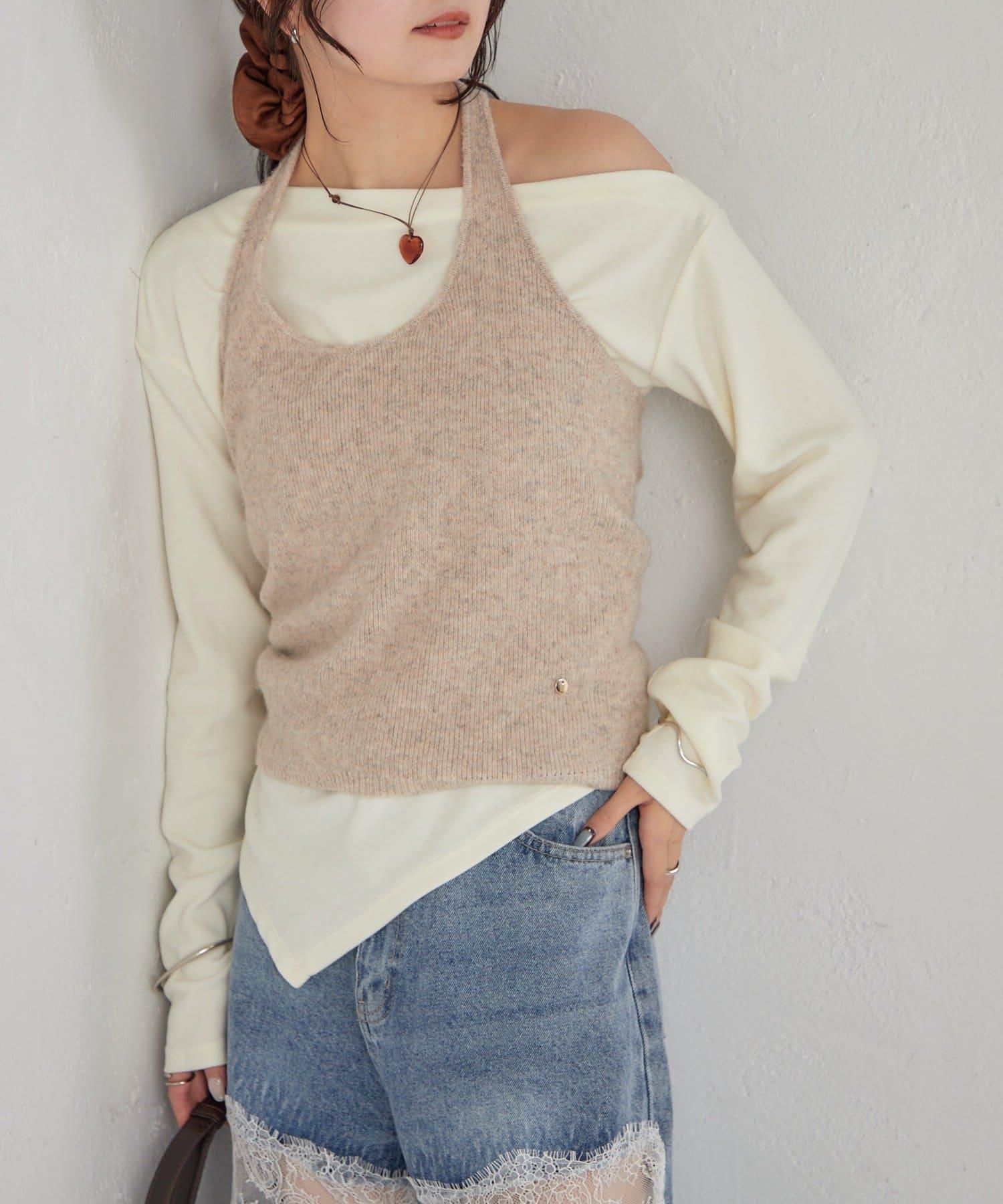 掛脖短款背心套裝長袖T恤