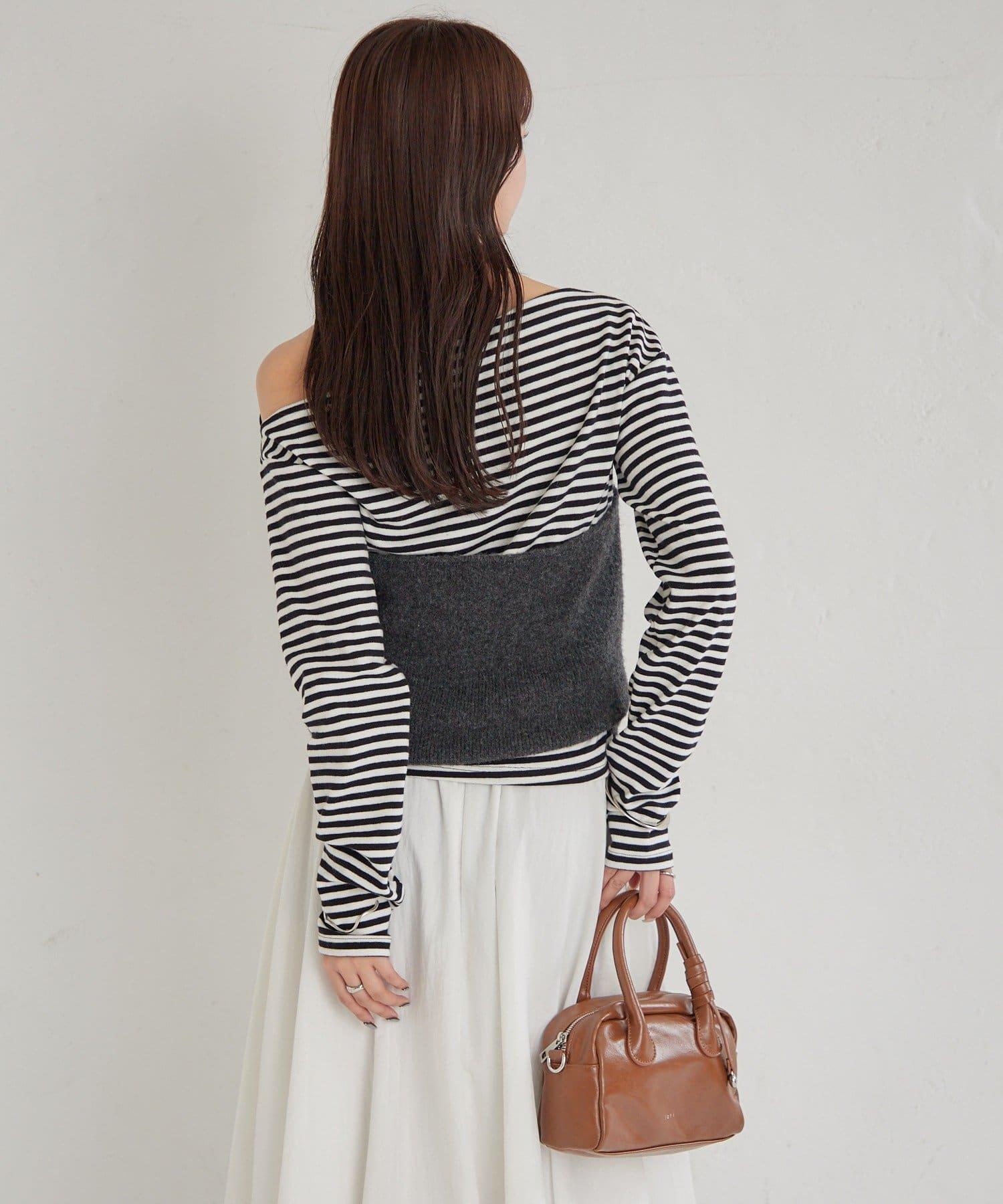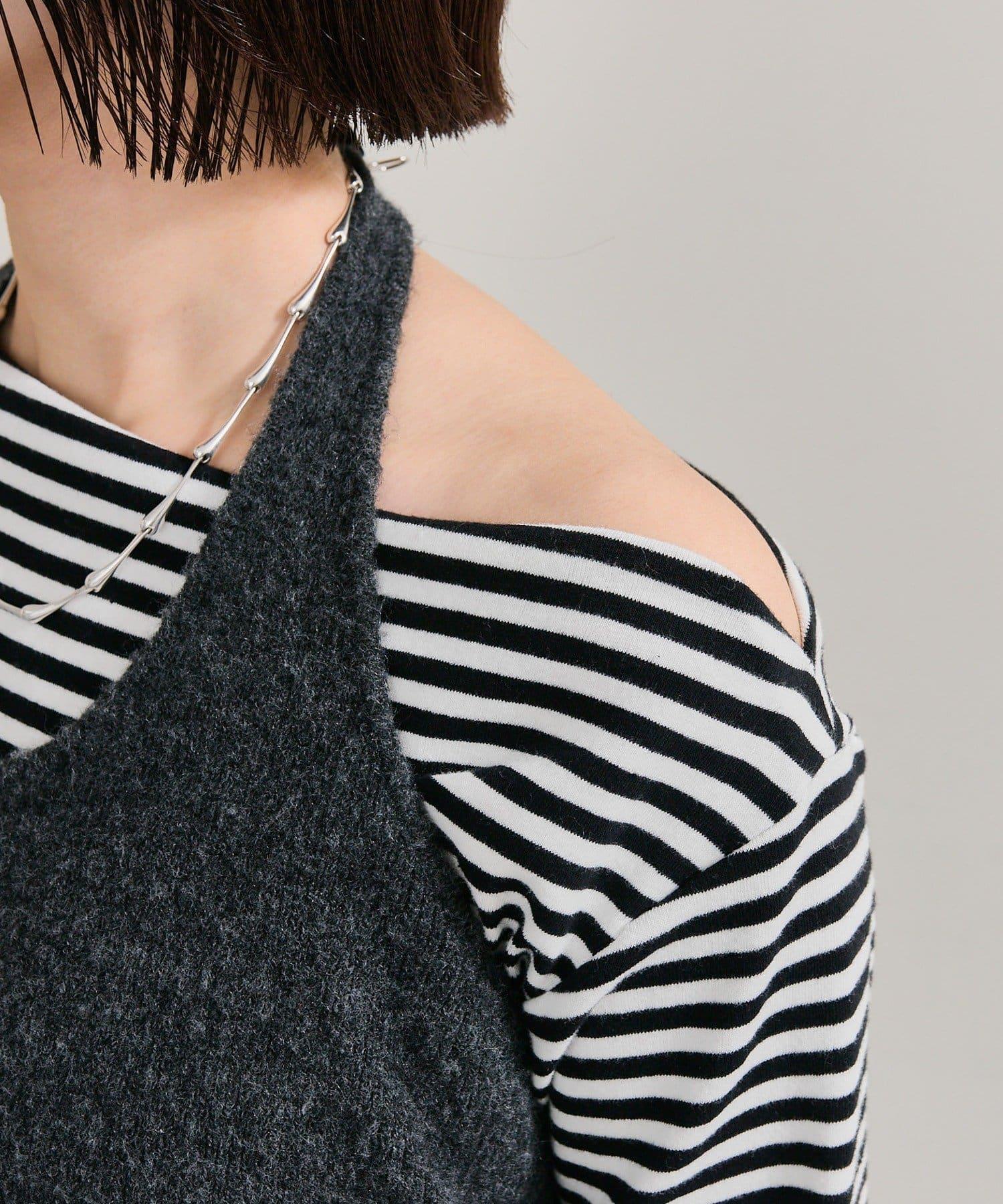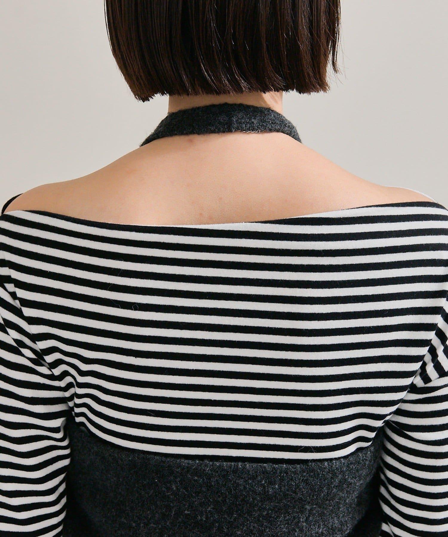 此款上衣由可露肩的船領剪裁和露肩半身裙組成。
