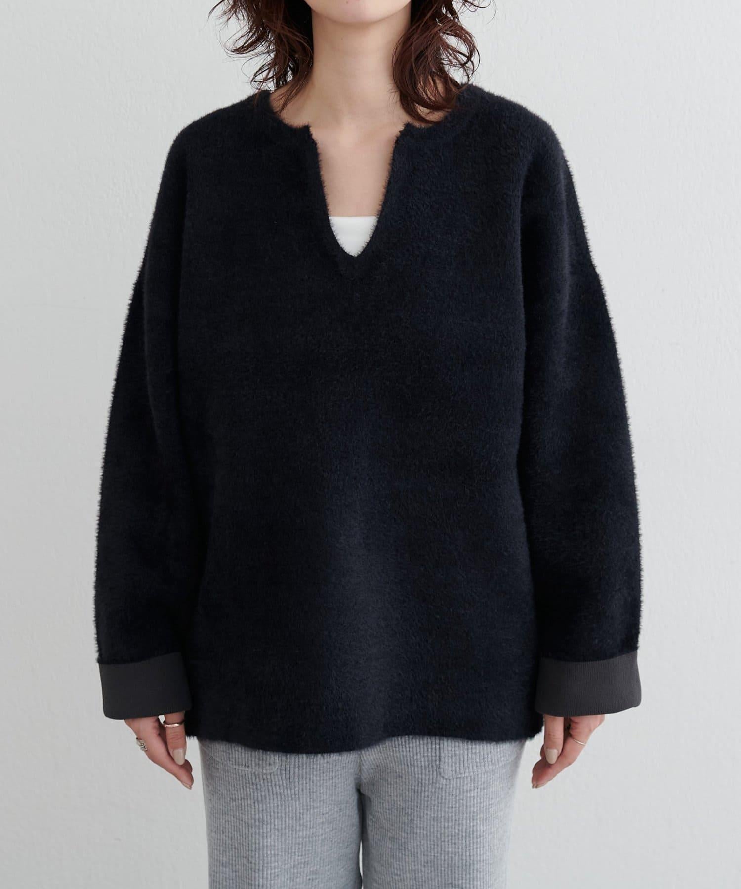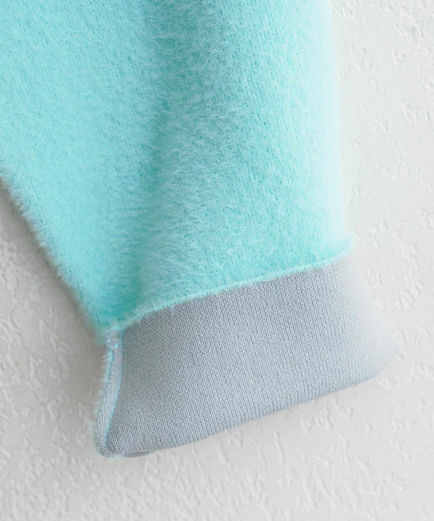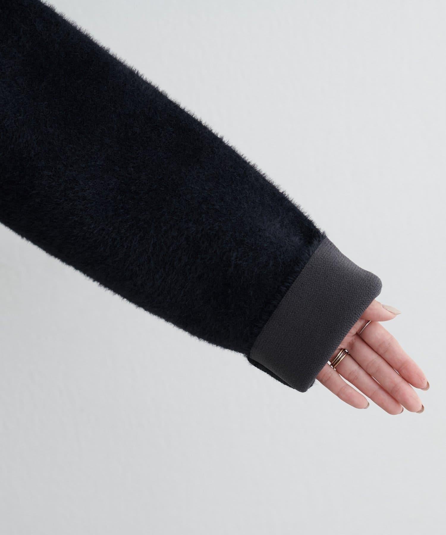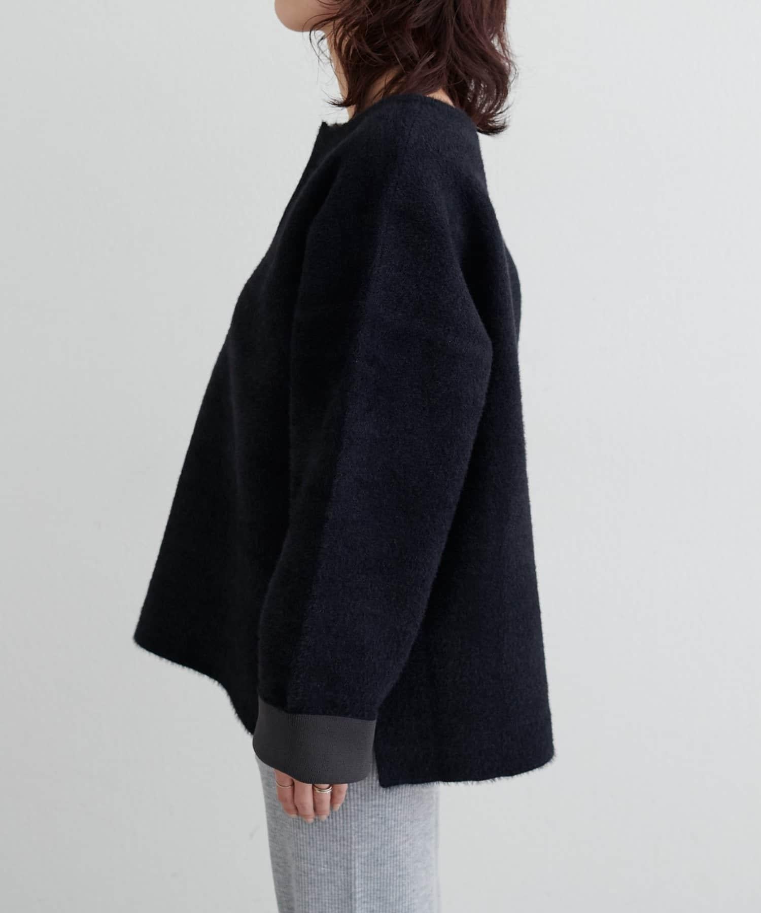 將蓬鬆羽毛的 W 面結構與輕薄柔軟的針織面料相結合的套頭衫。