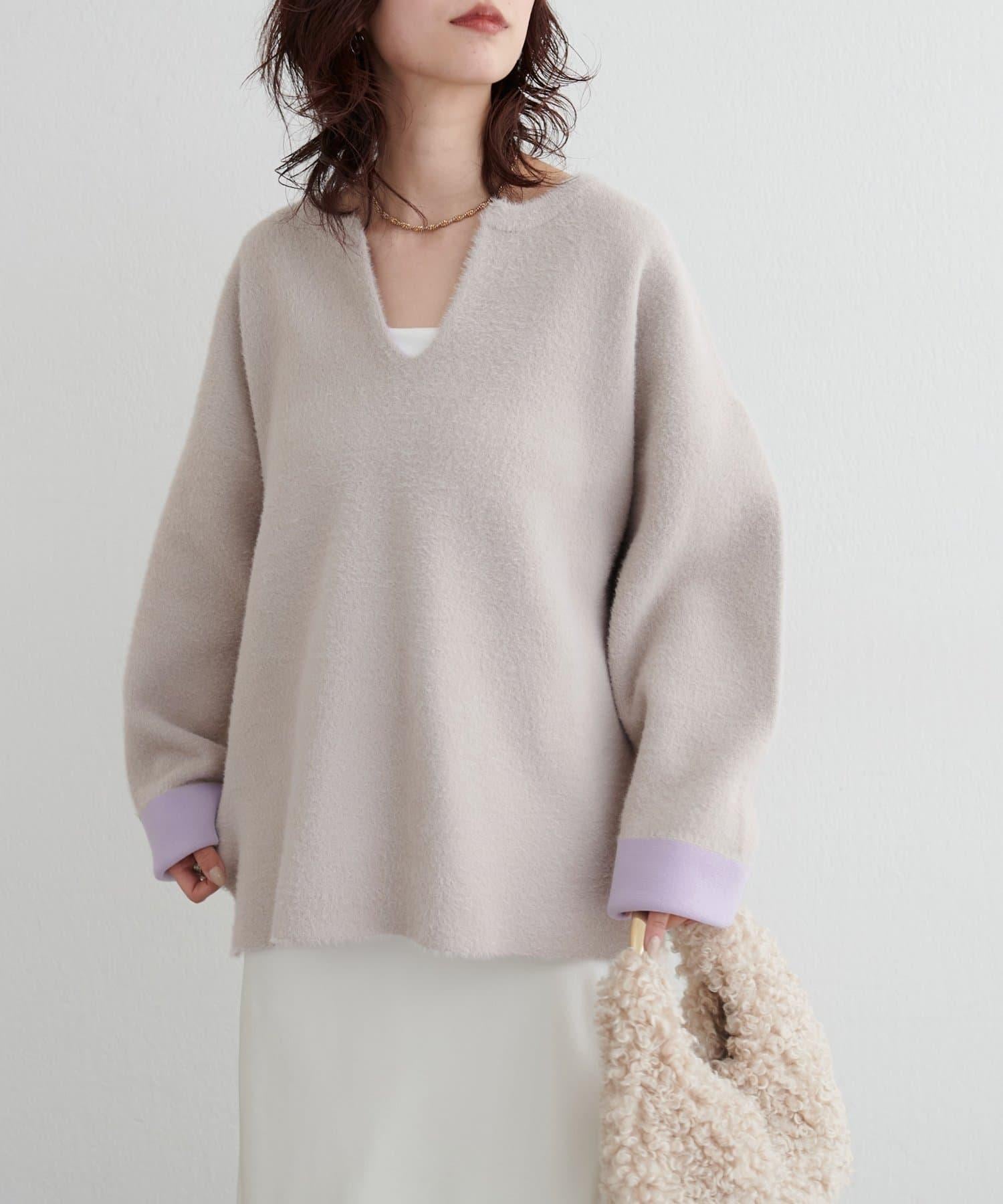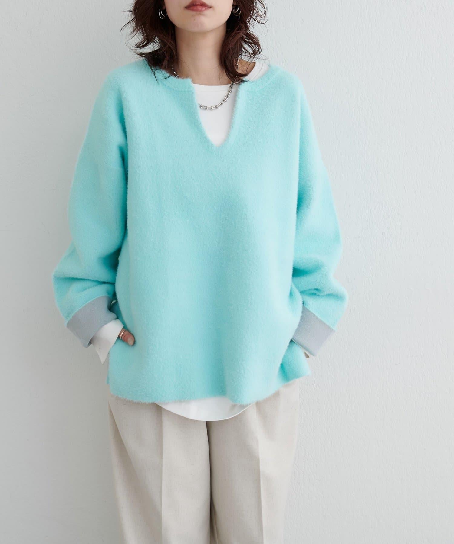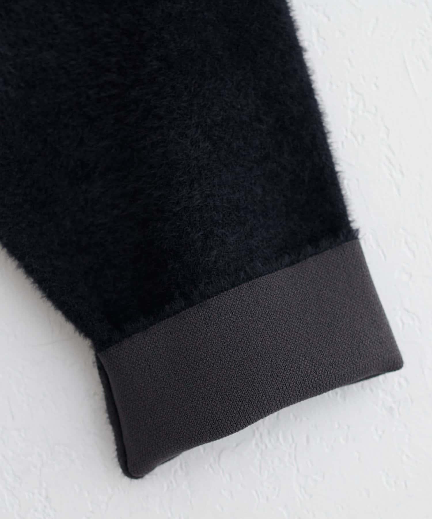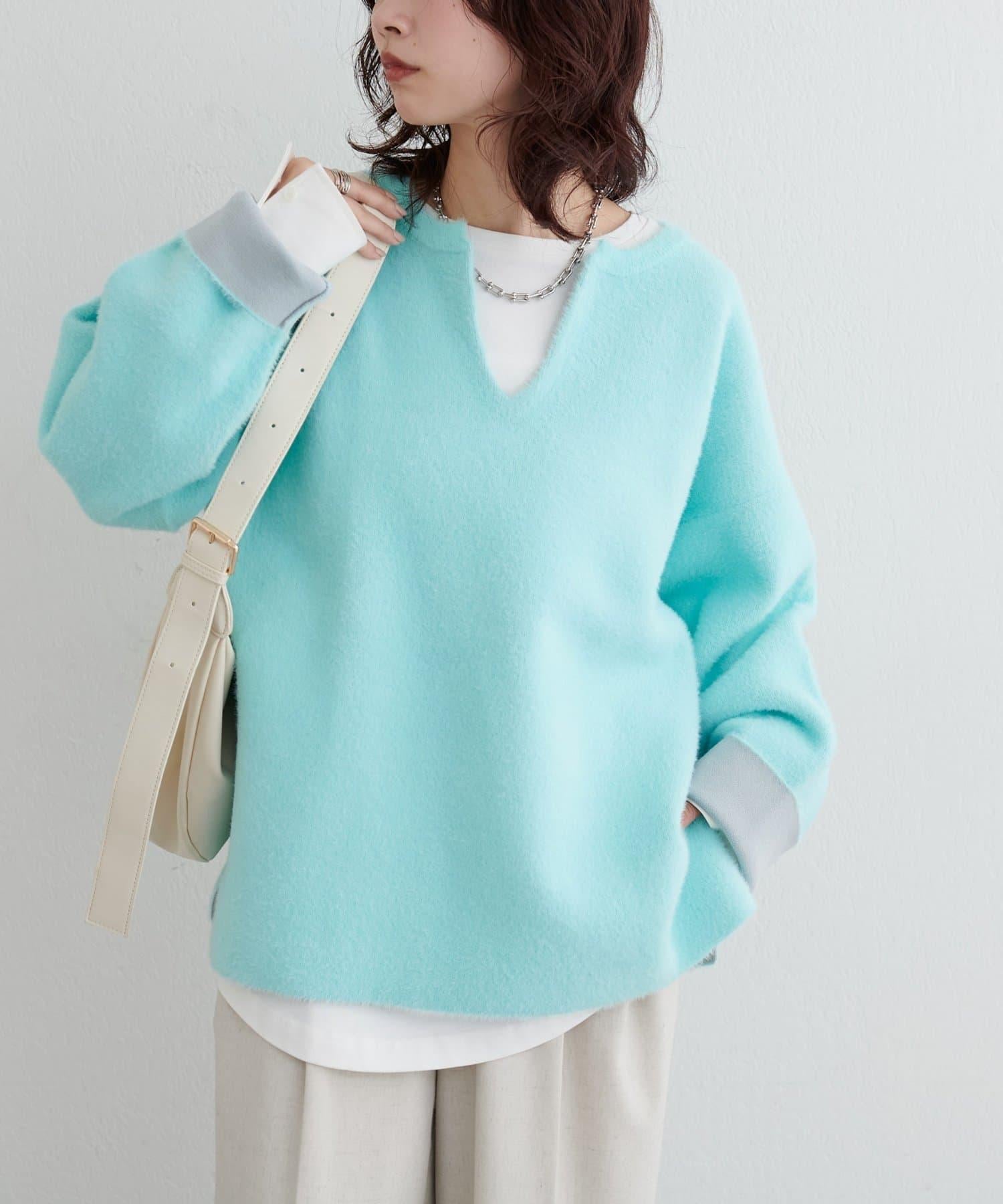 將蓬鬆羽毛的 W 面結構與輕薄柔軟的針織面料相結合的套頭衫。