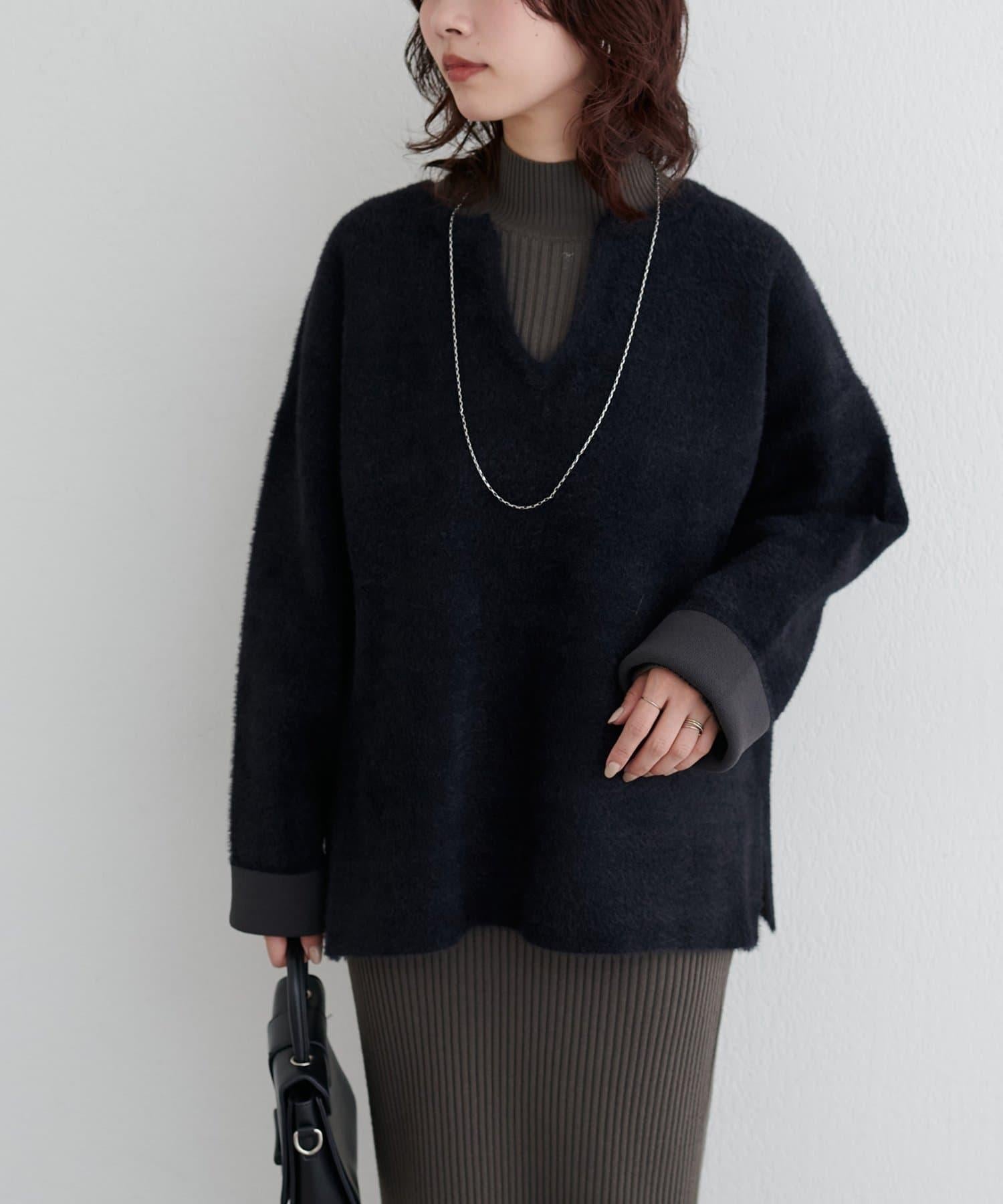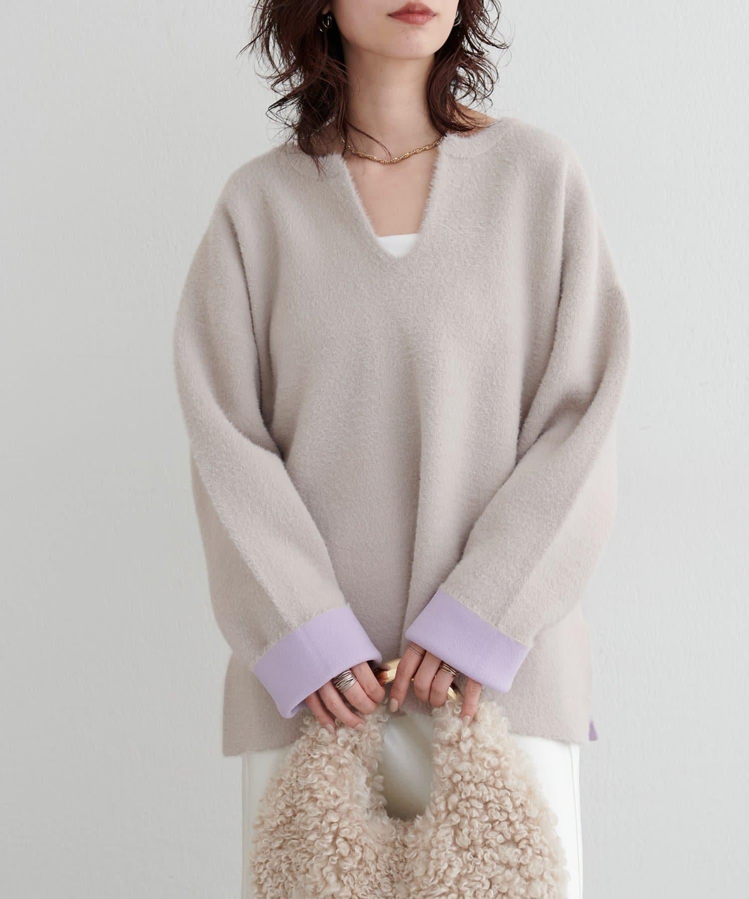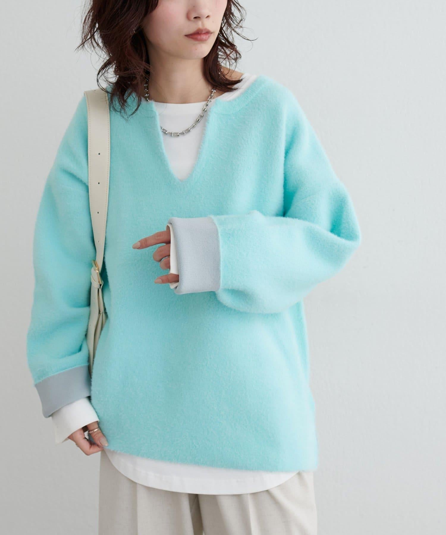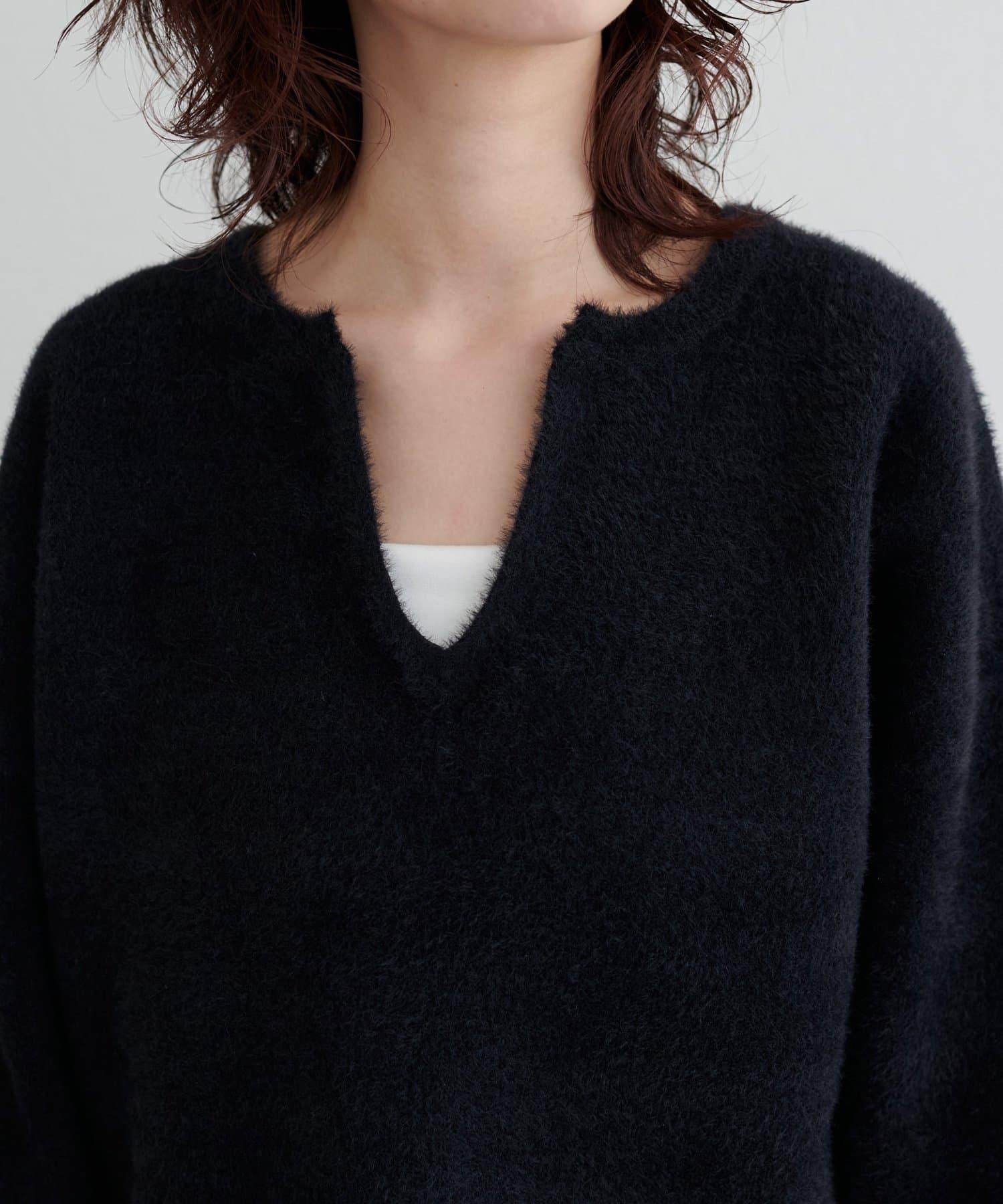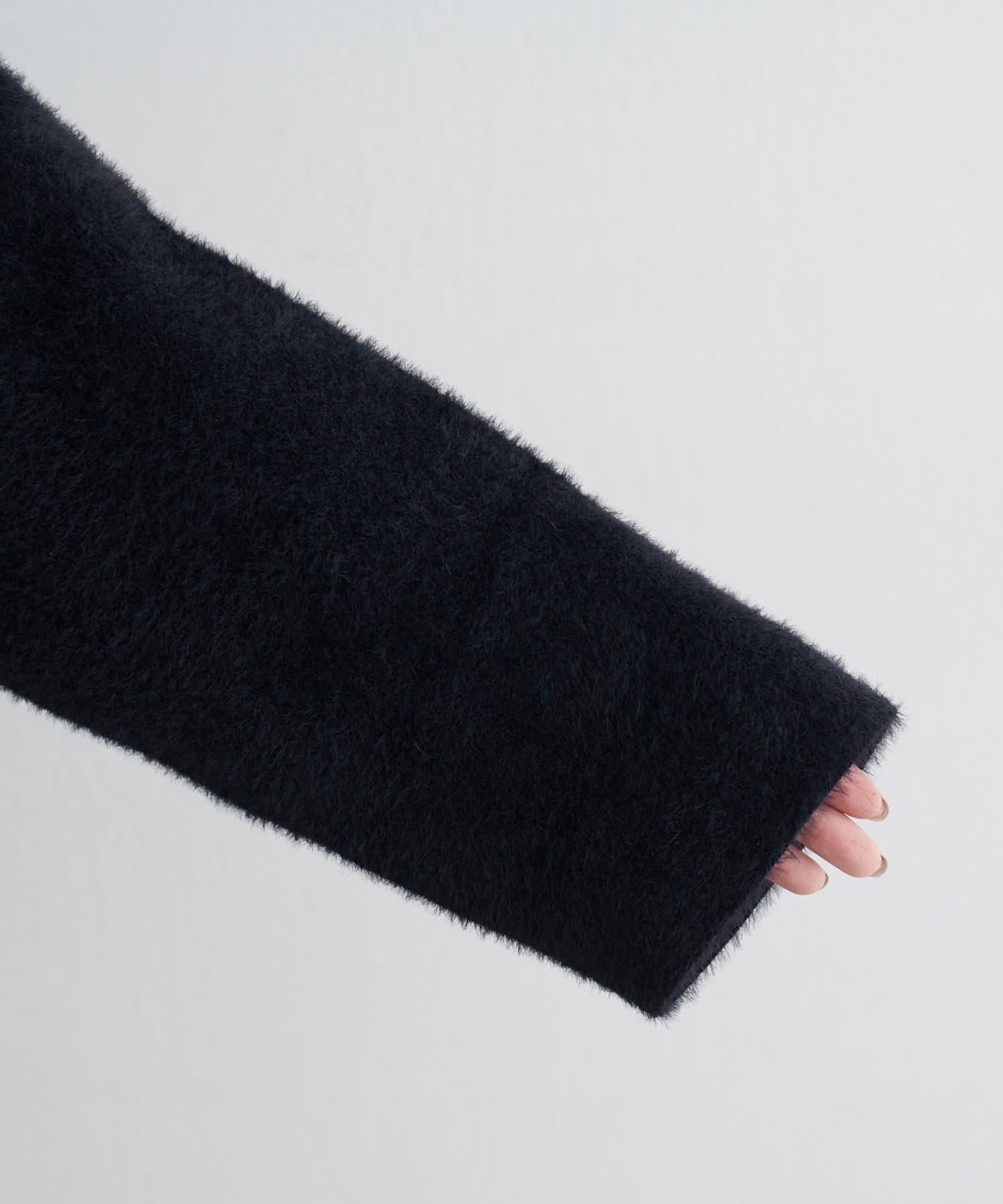 將蓬鬆羽毛的 W 面結構與輕薄柔軟的針織面料相結合的套頭衫。