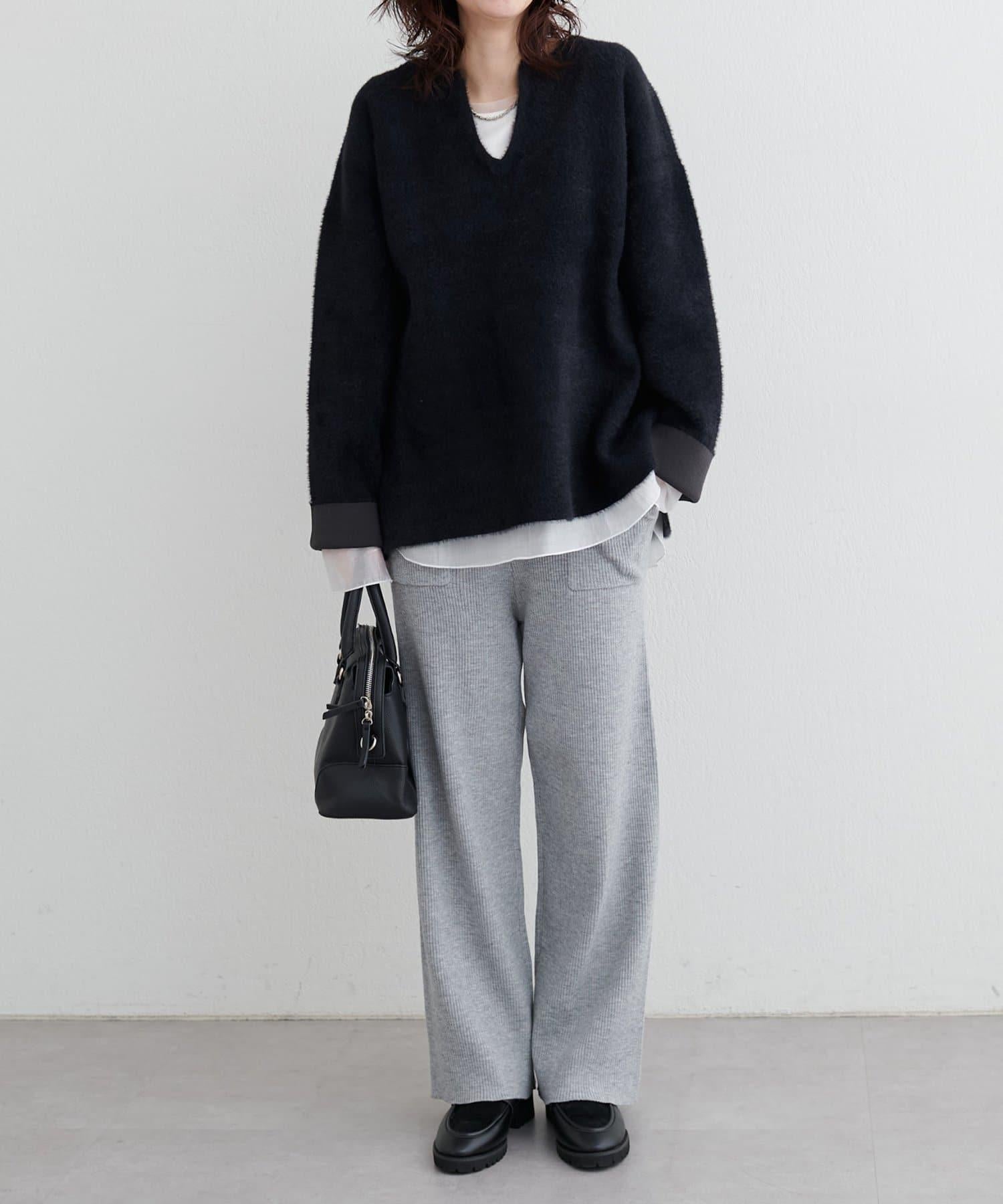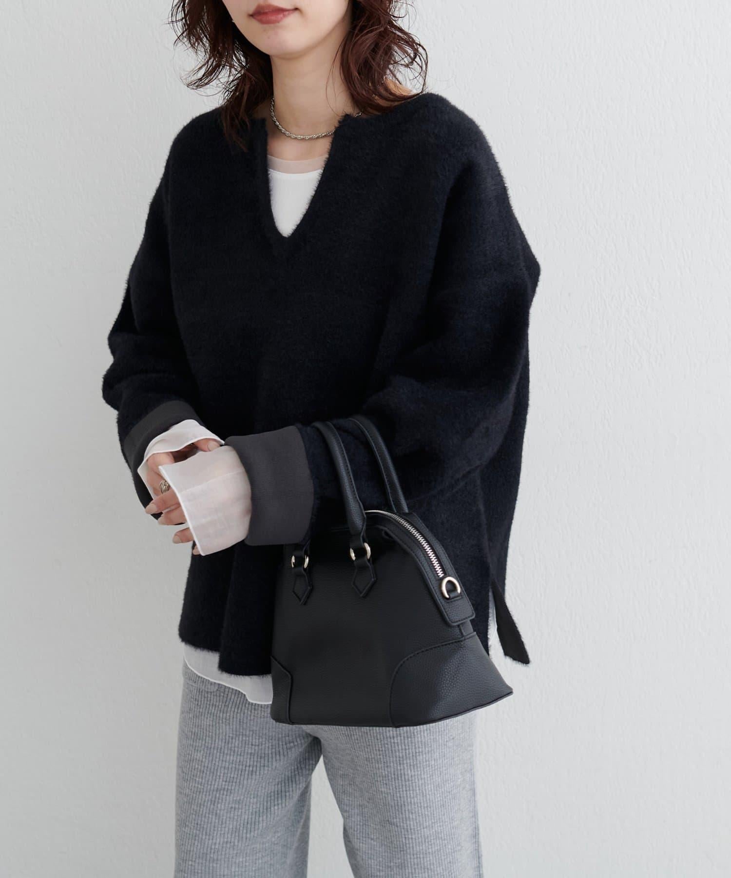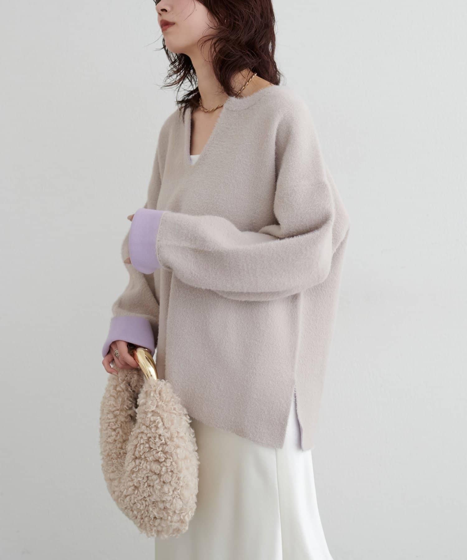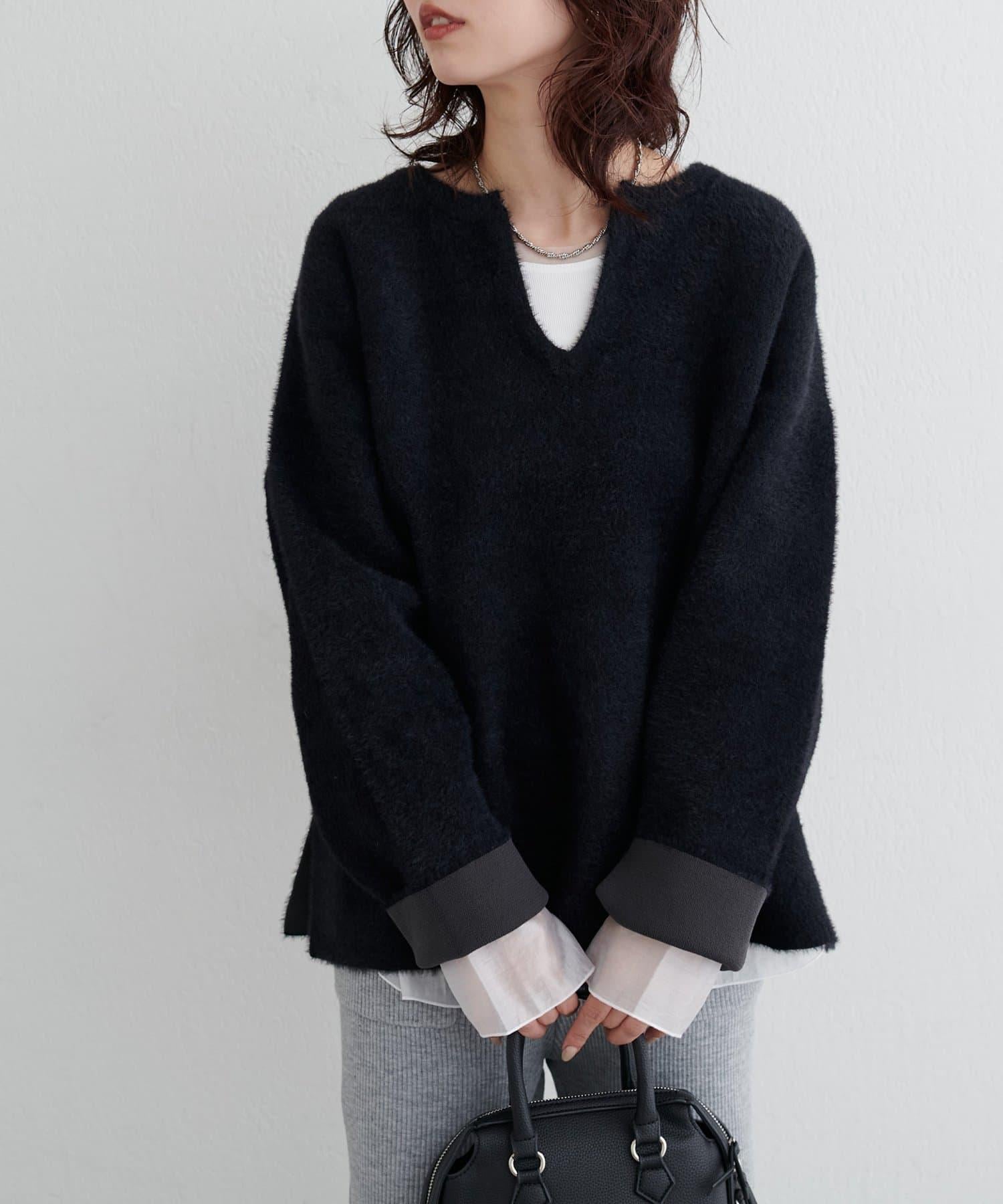 將蓬鬆羽毛的 W 面結構與輕薄柔軟的針織面料相結合的套頭衫。