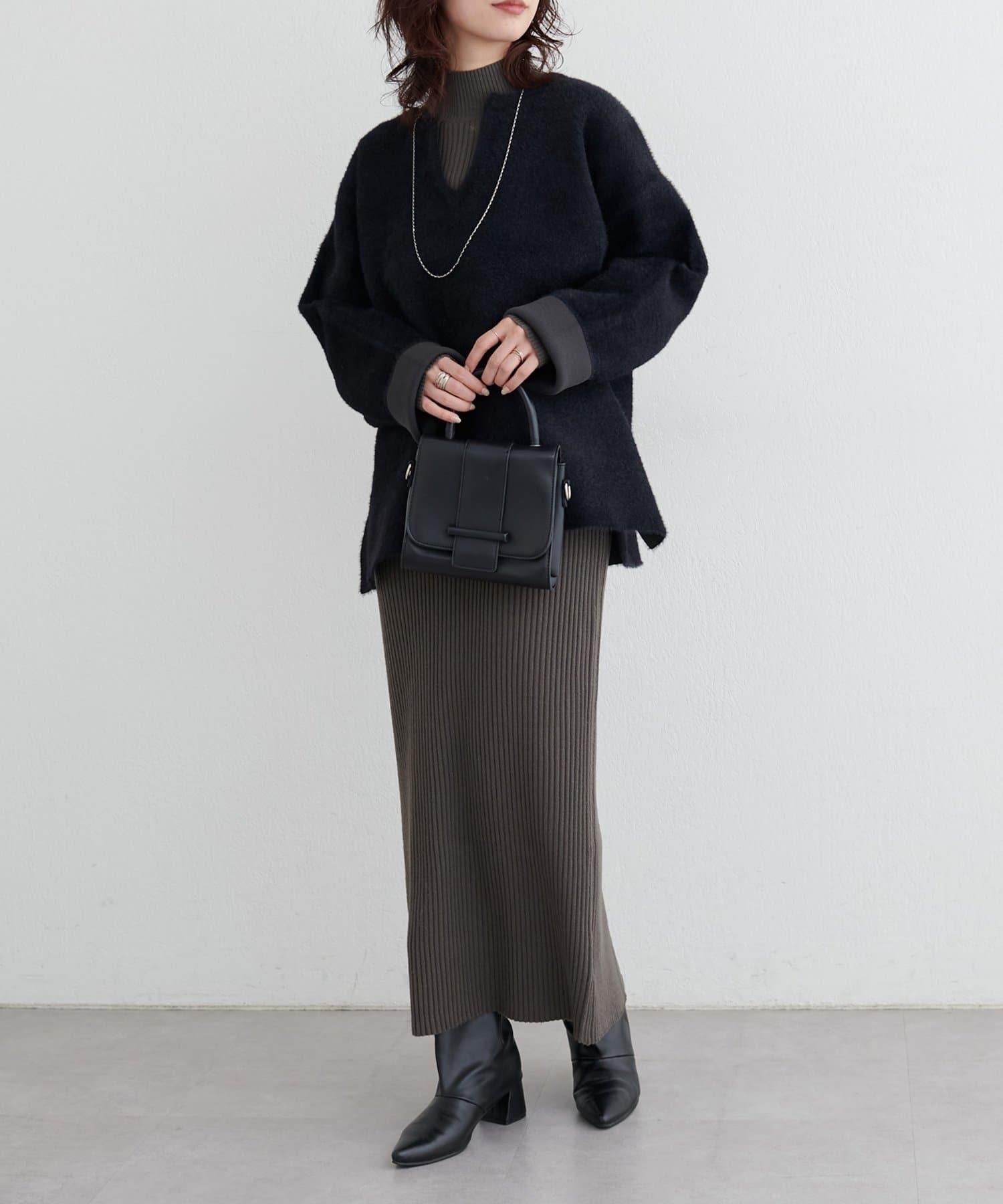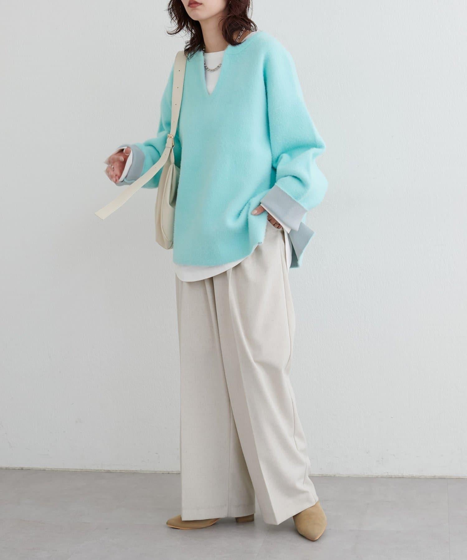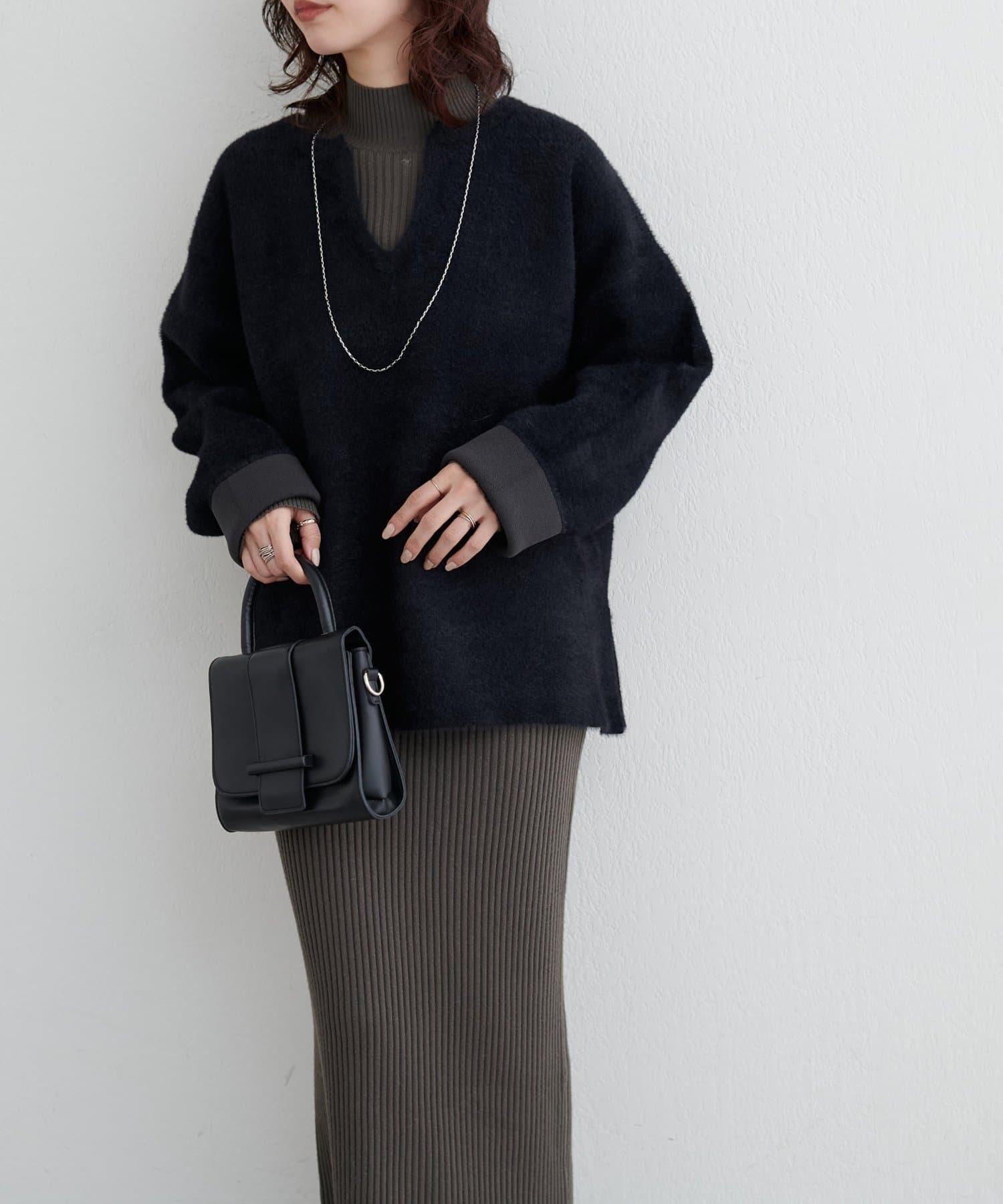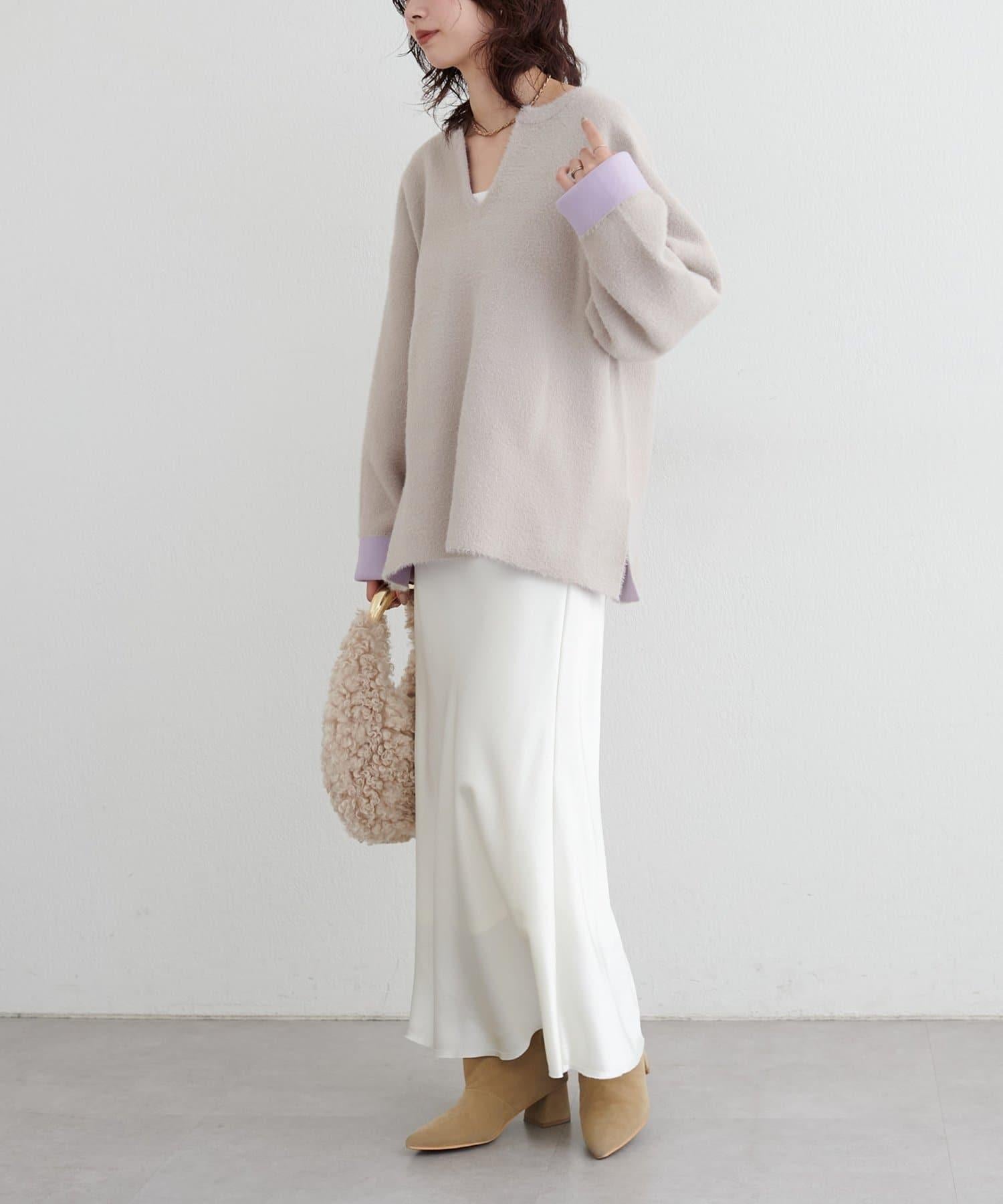 將蓬鬆羽毛的 W 面結構與輕薄柔軟的針織面料相結合的套頭衫。