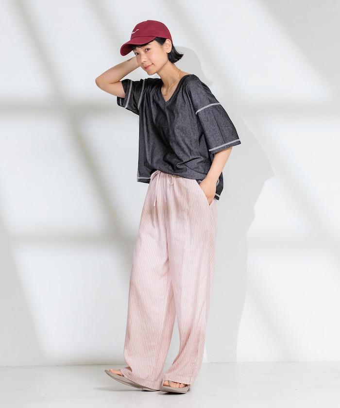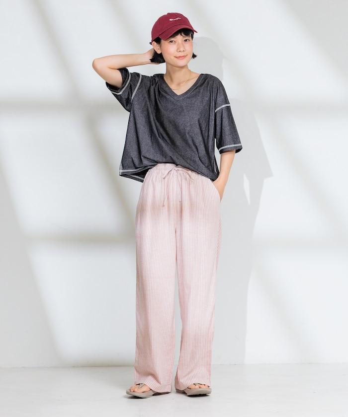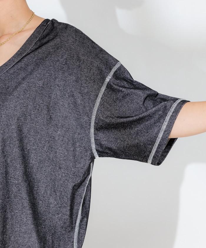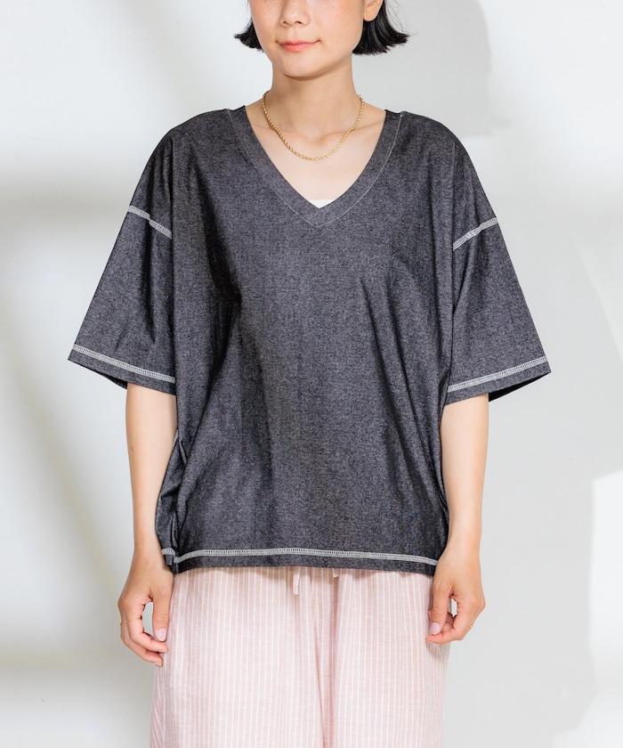 <接觸冷感>混紡 2WAY V領T恤【限定推出】