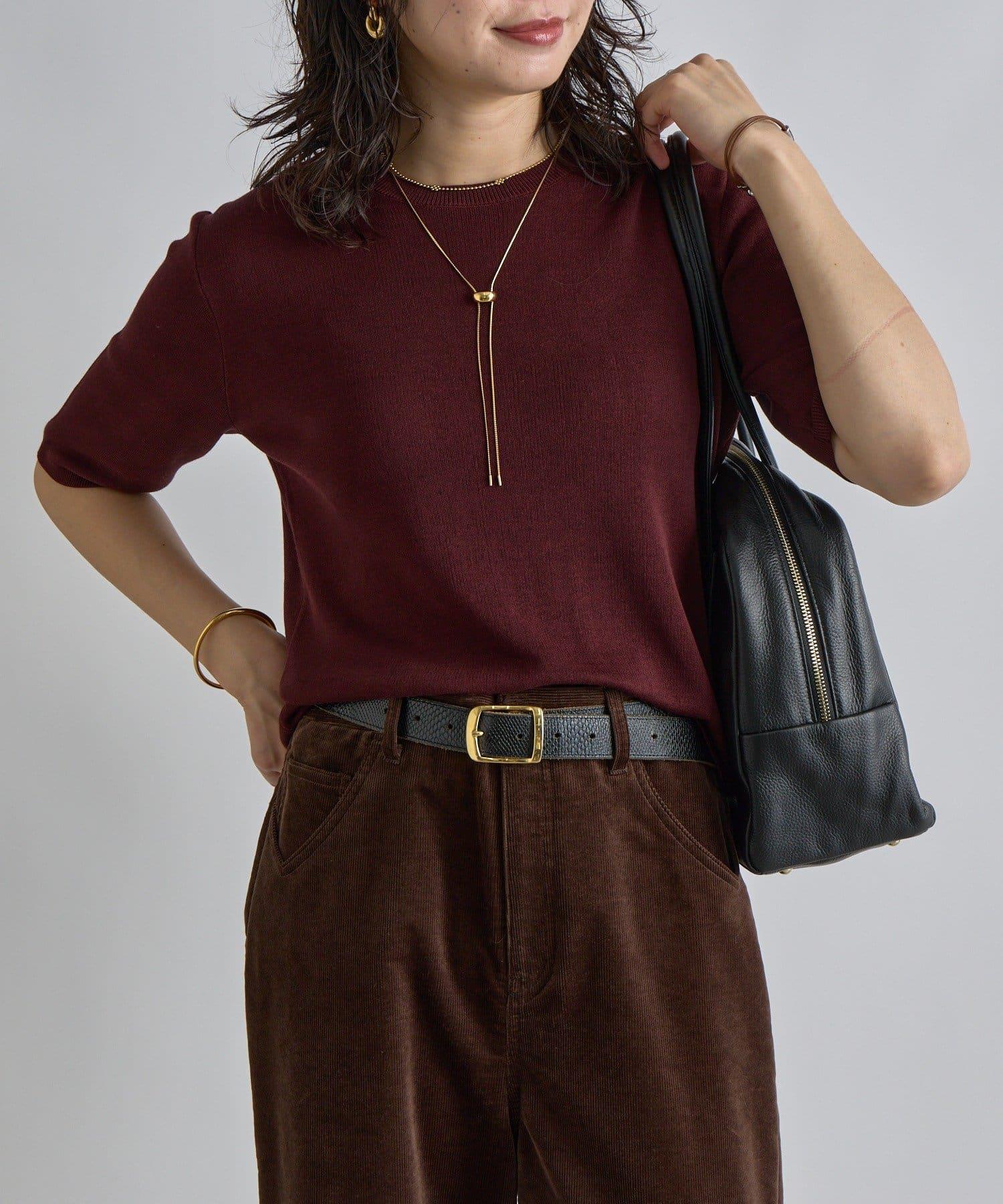 14G 光滑針織物的光滑質感和與身體柔和融合的簡潔輪廓也給人一種精緻的印象。