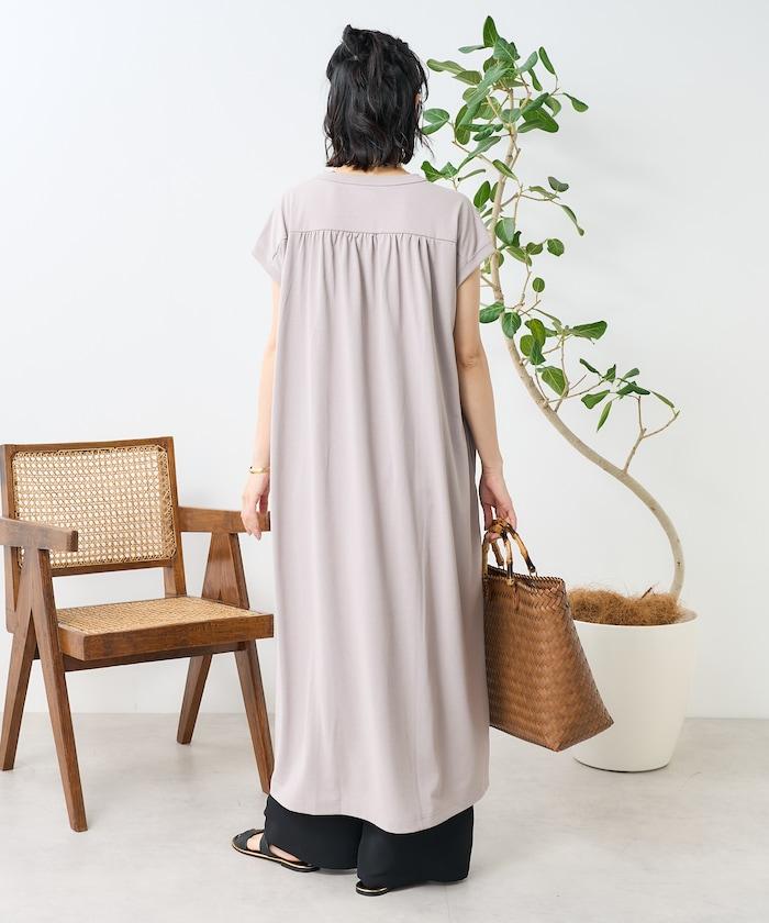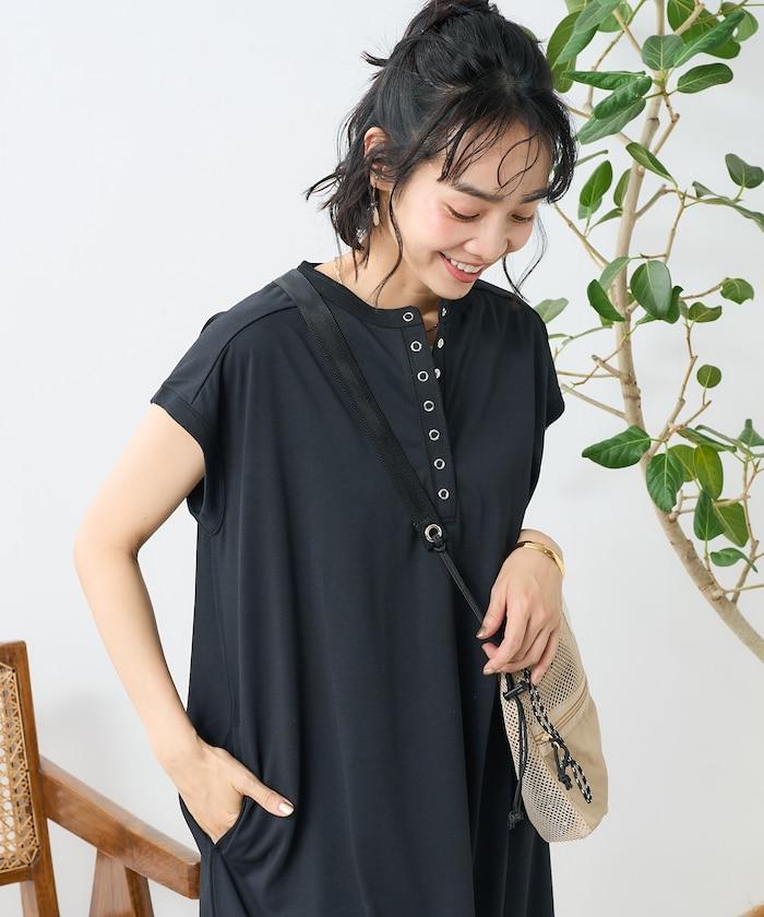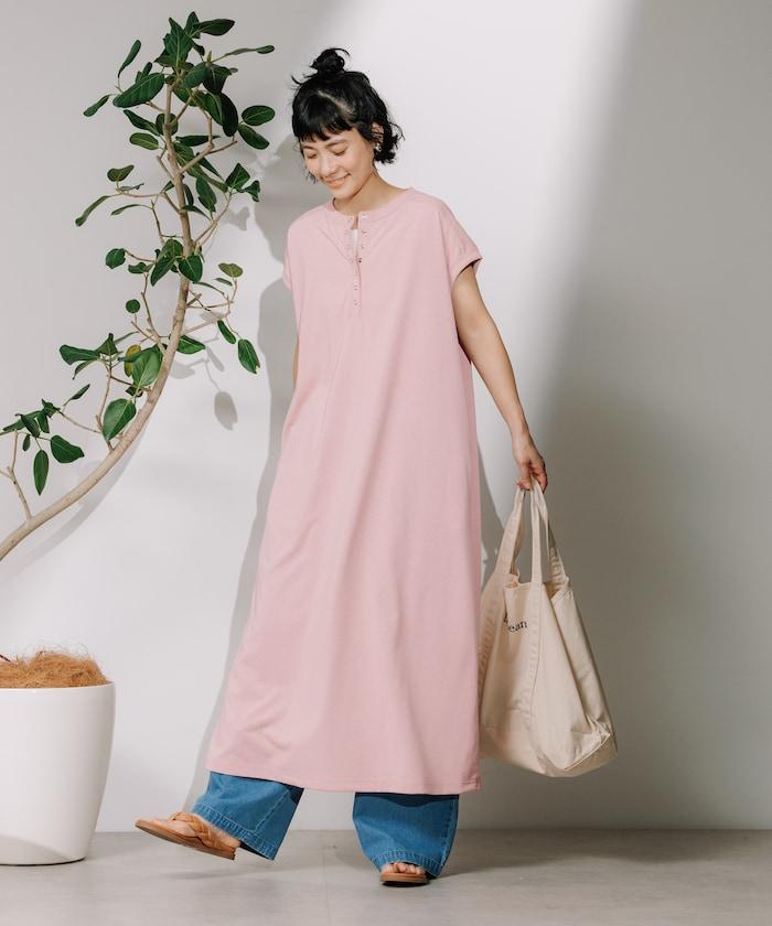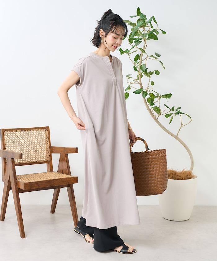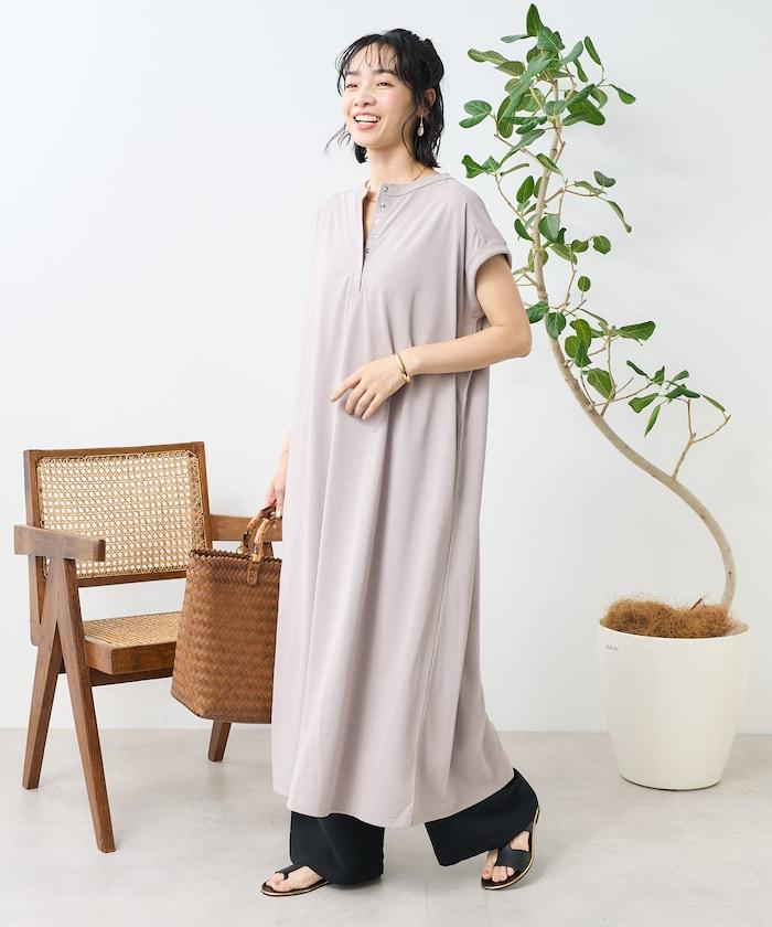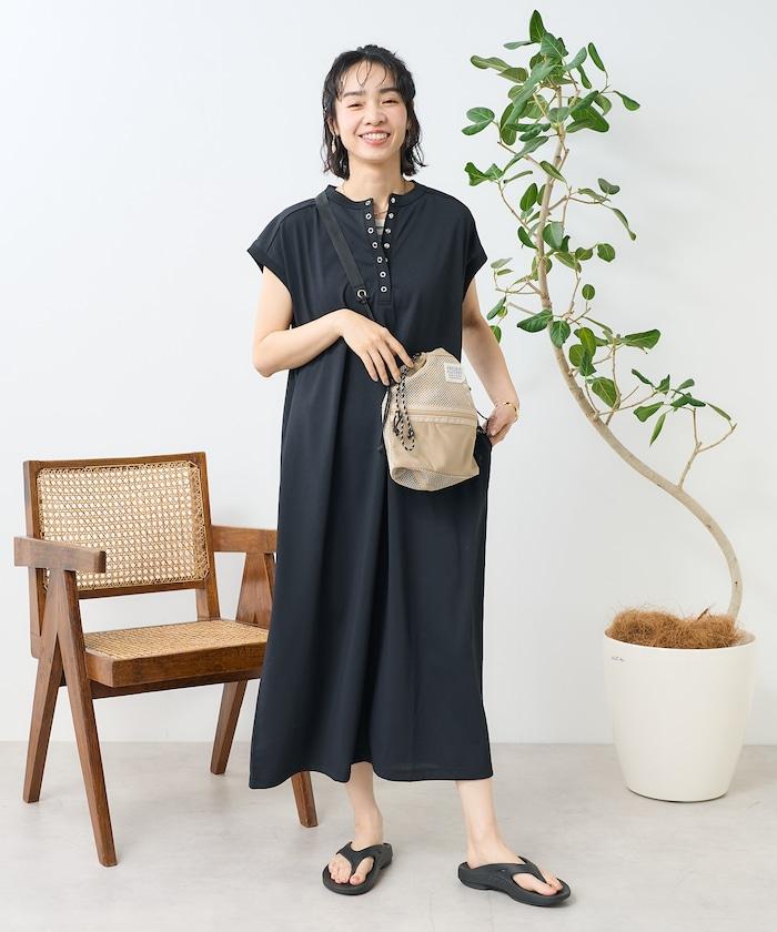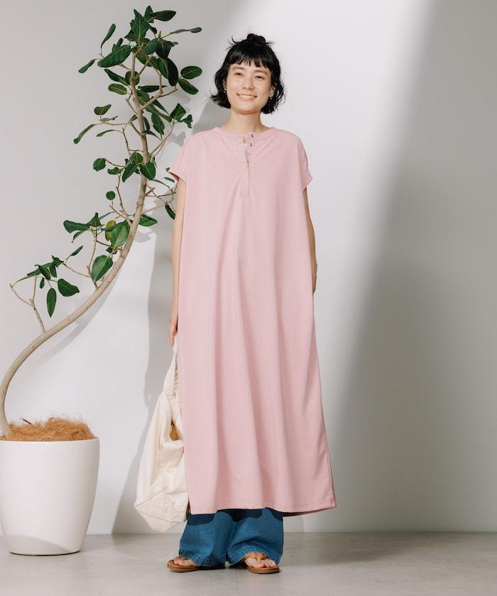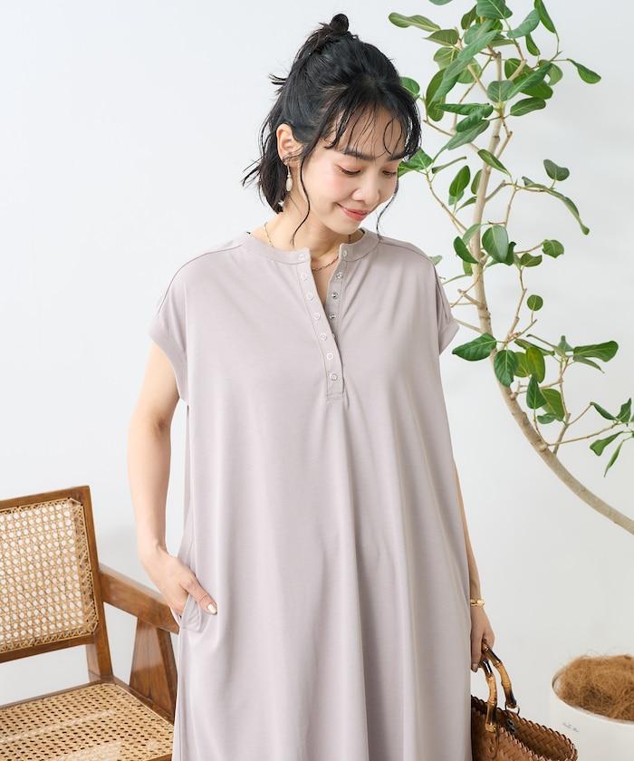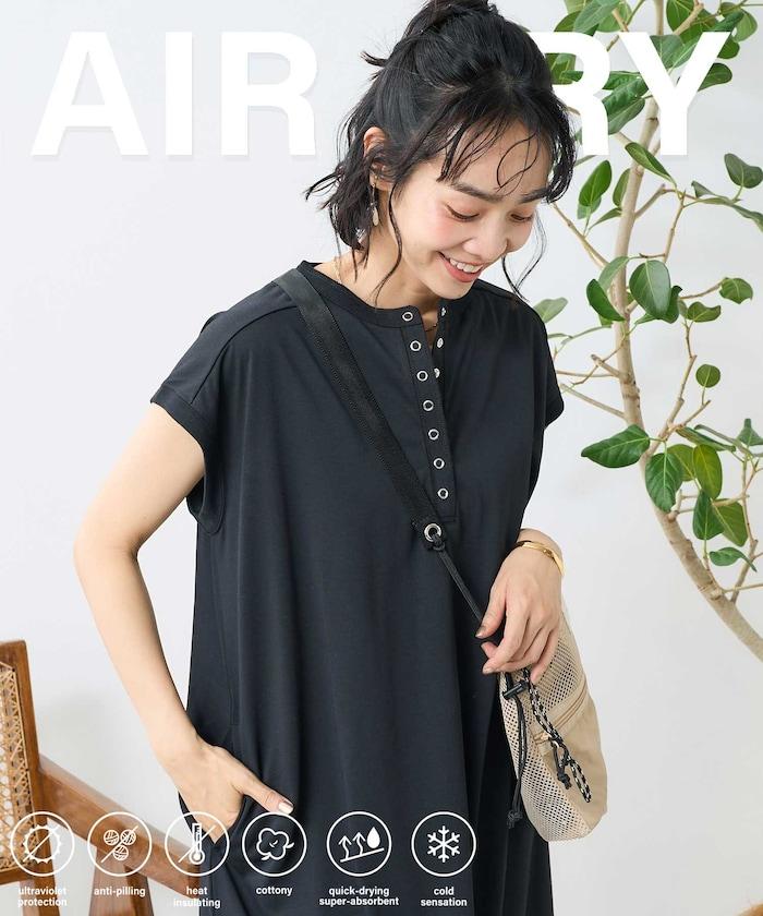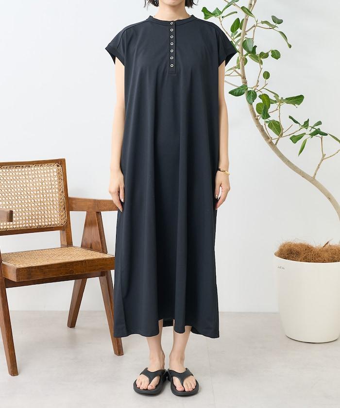 <接觸冷感/UV> 《AIR》DRY HIGHCOOL 亨利領連衣裙