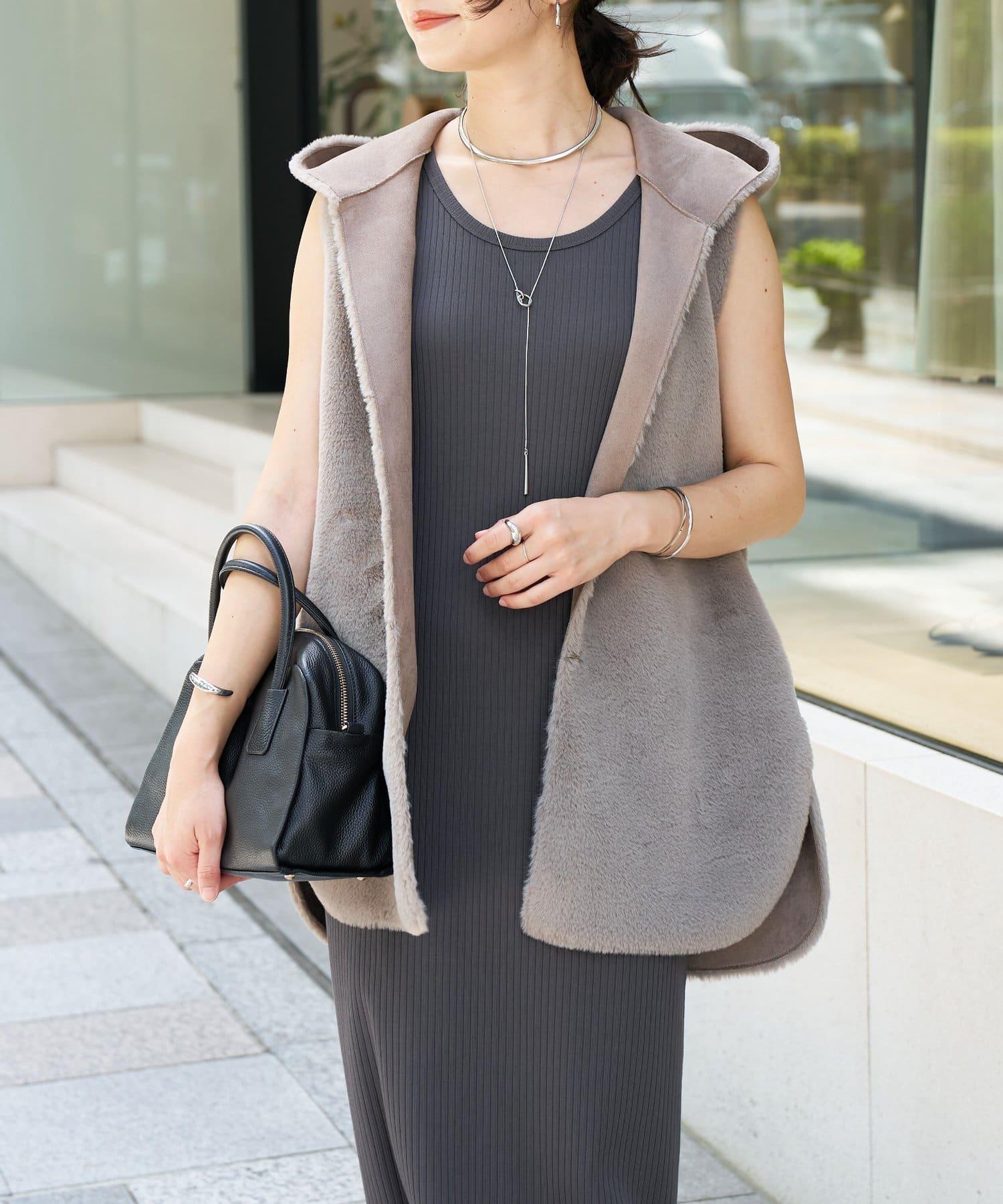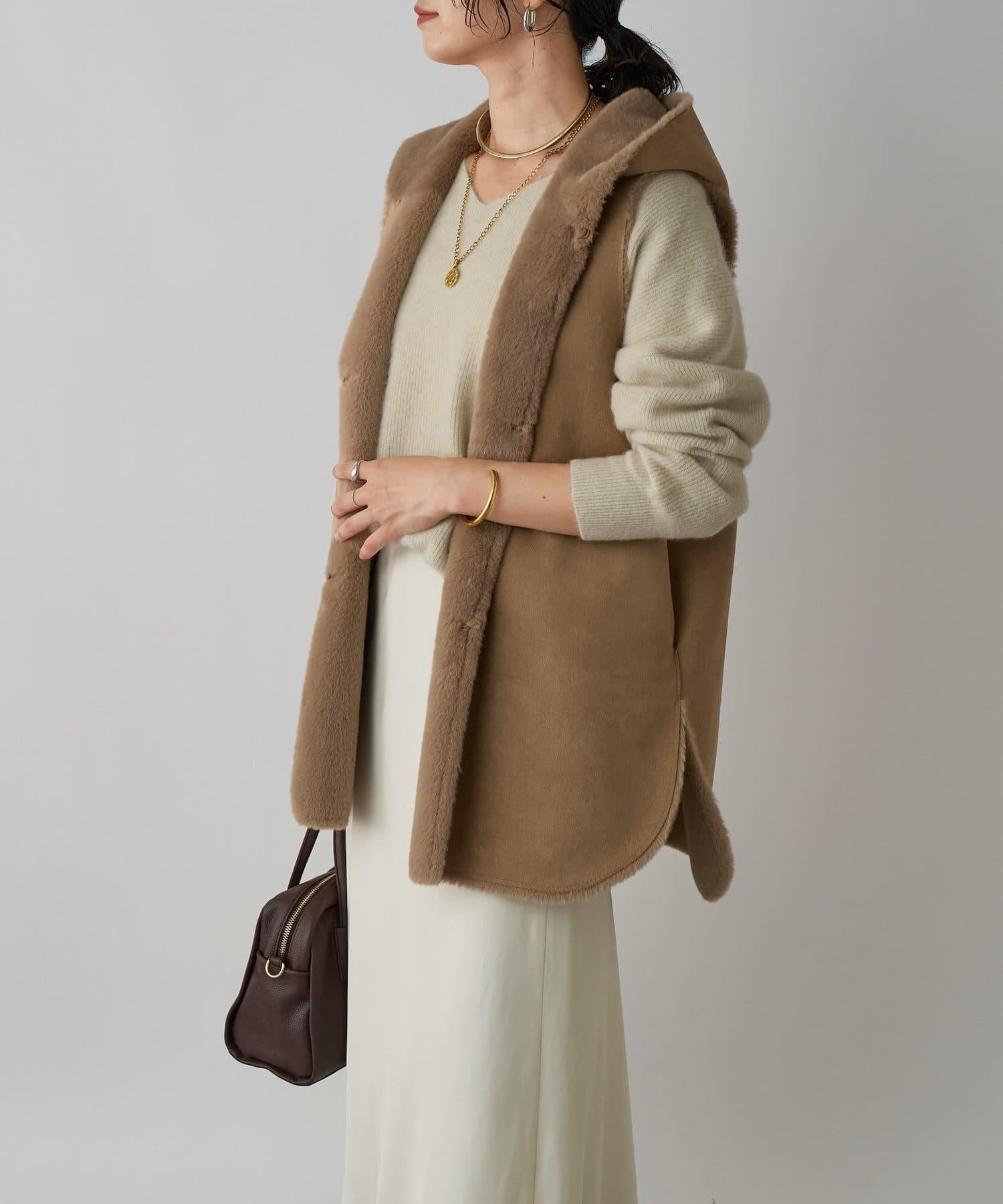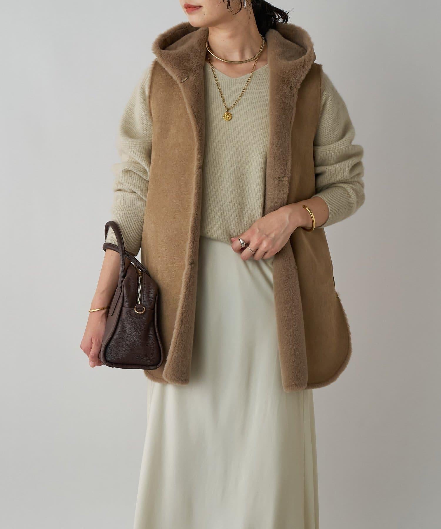 雙面設計,一面為麂皮絨,一面為皮草,可改變穿著氛圍。
