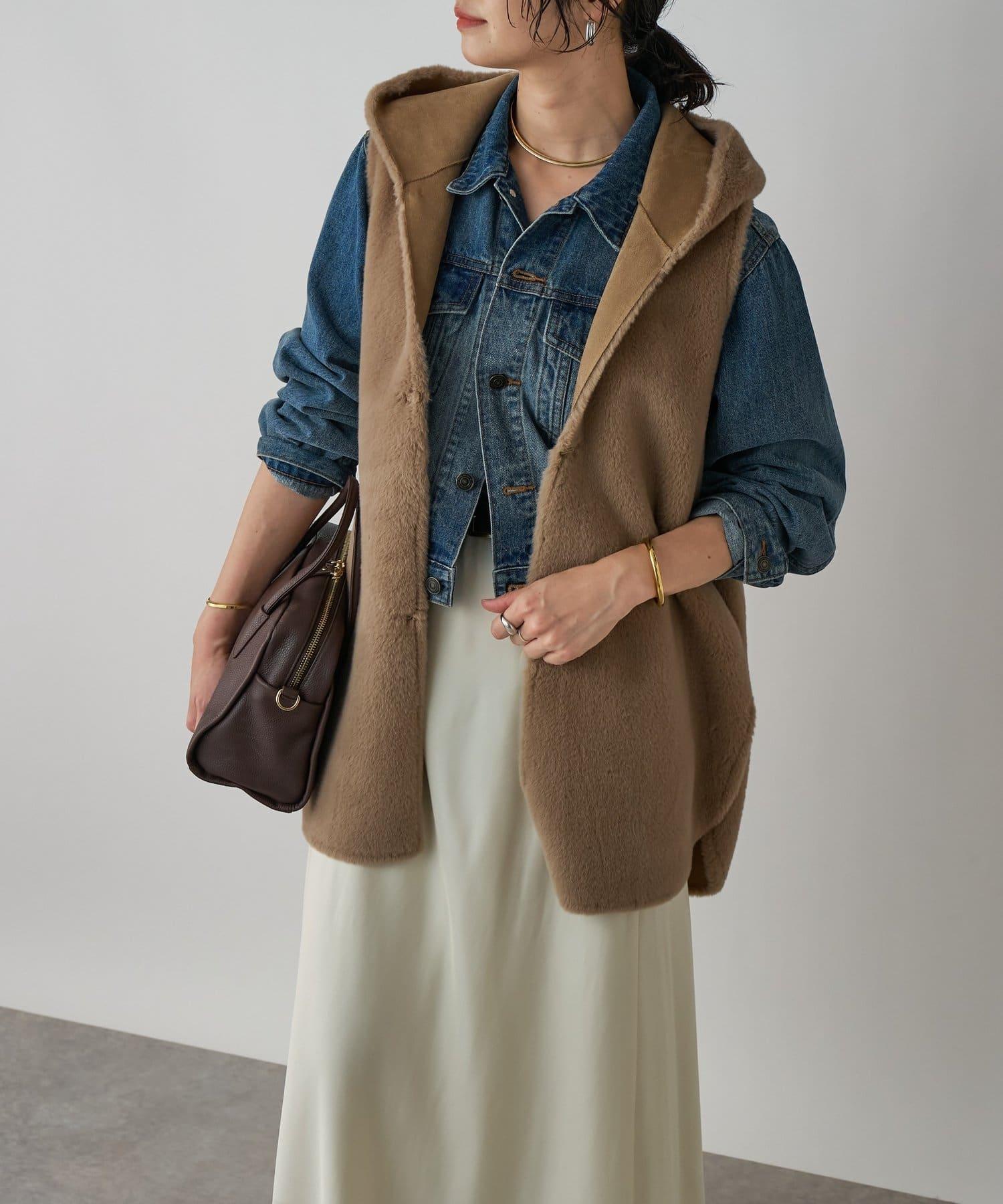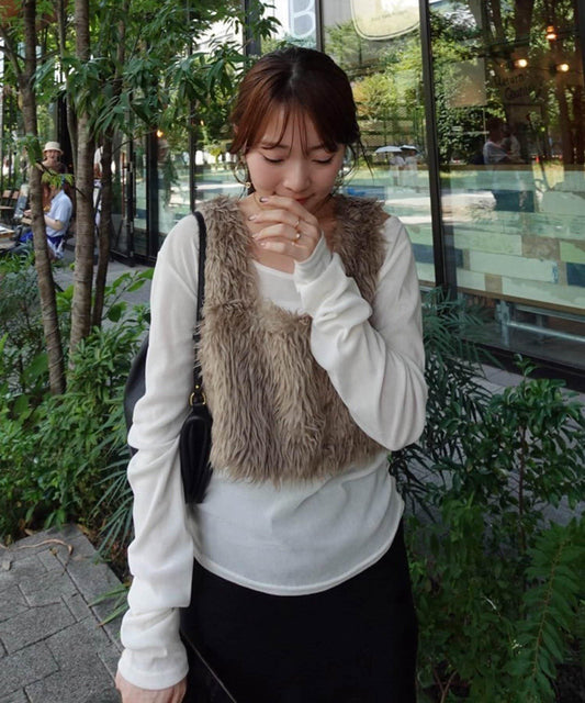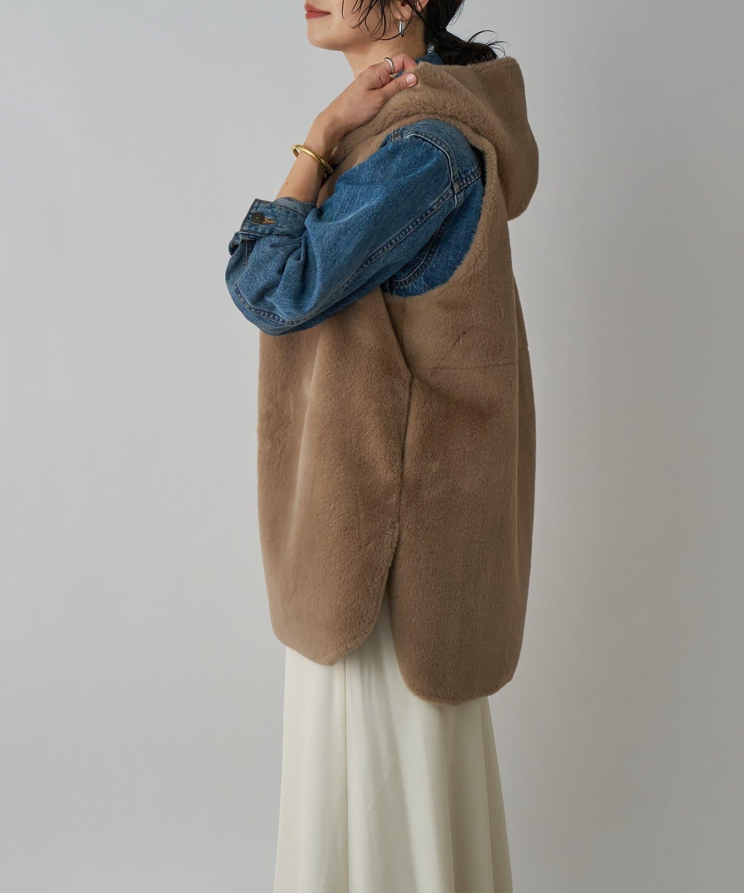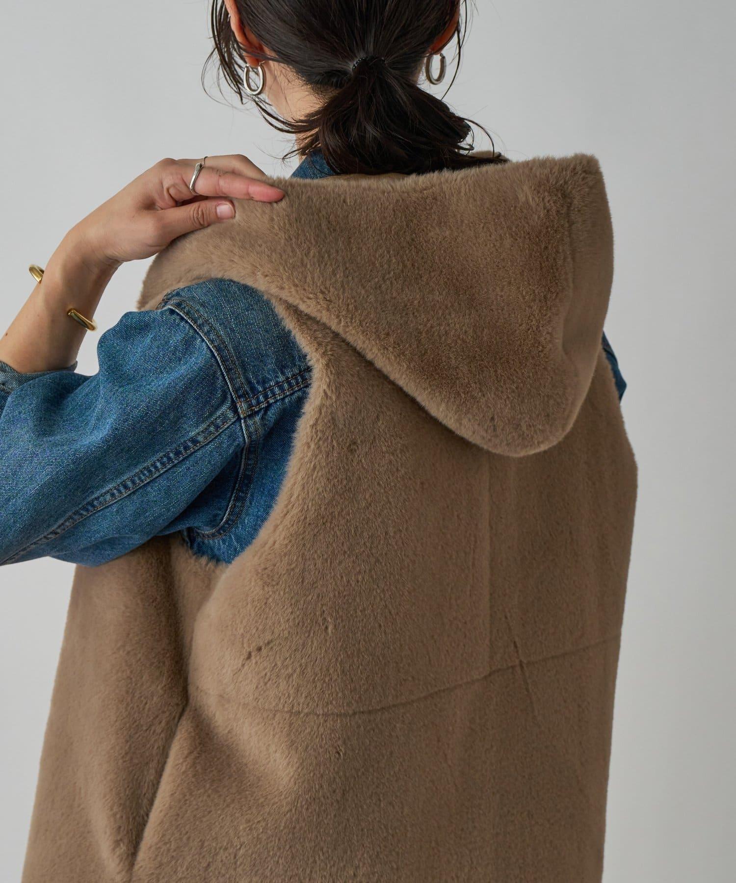 【提升季節氛圍】仿皮草連帽馬甲/預計9月下旬發貨