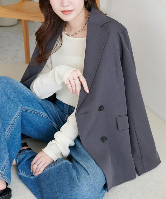 提升穿搭格調◎羊毛感單排扣西裝夾克