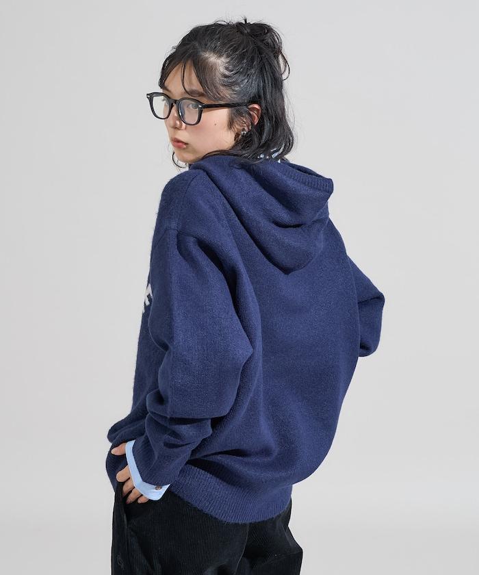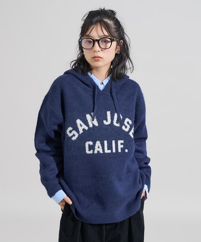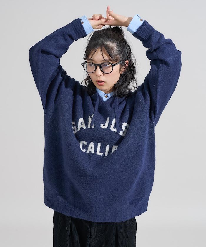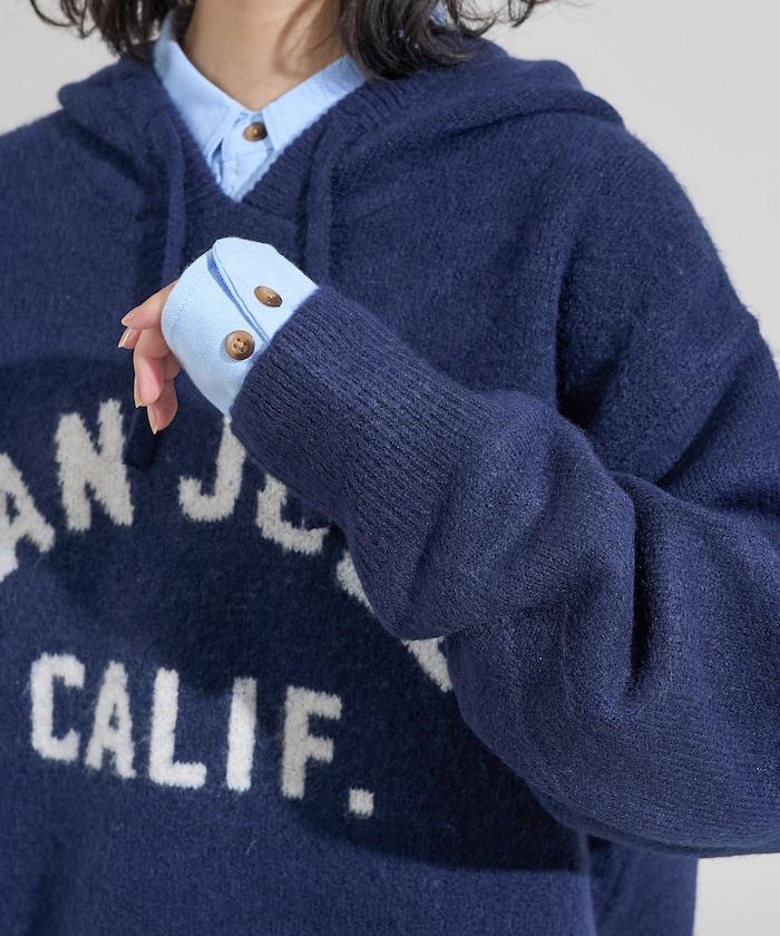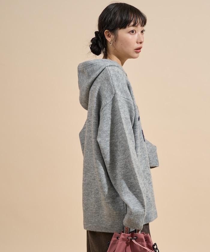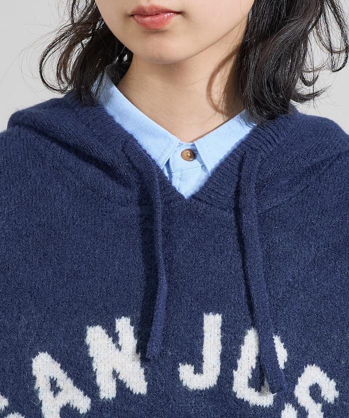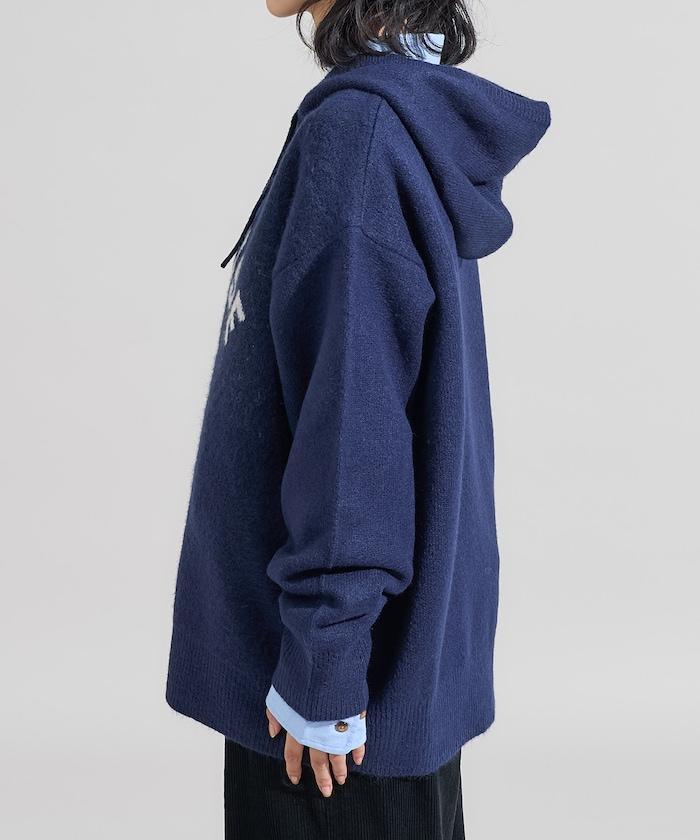 提花大字母針織連帽衫