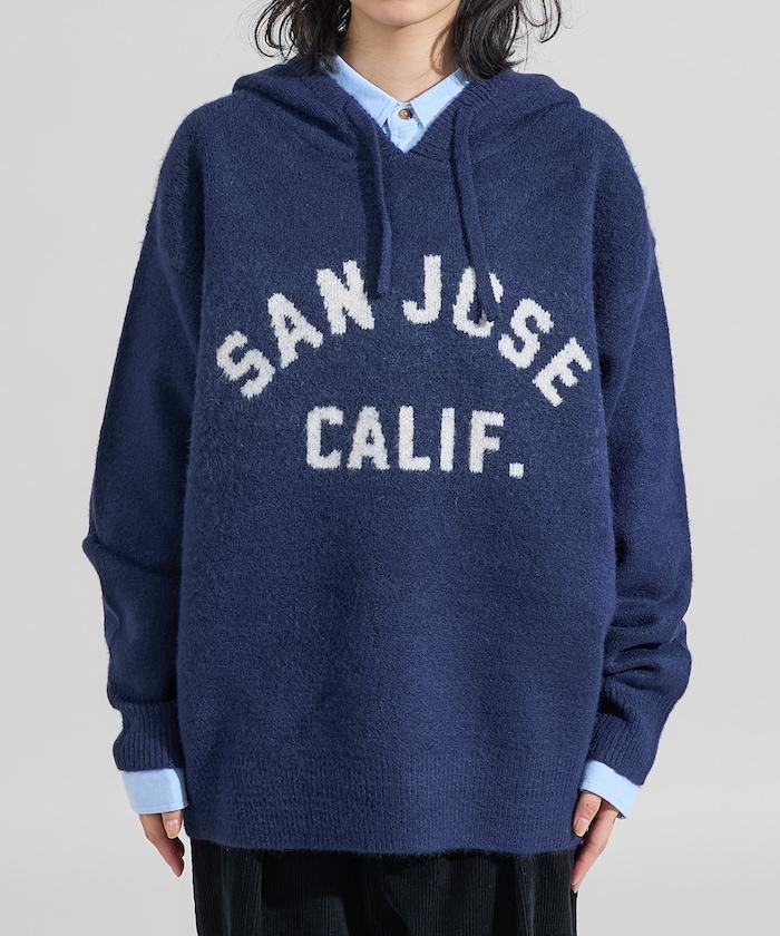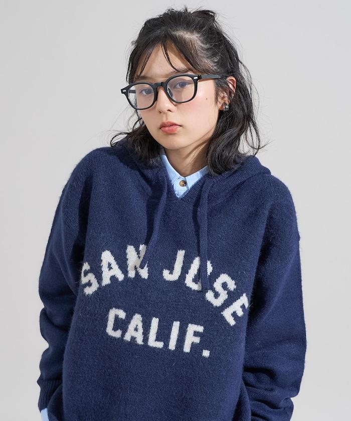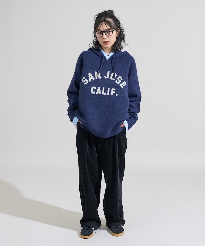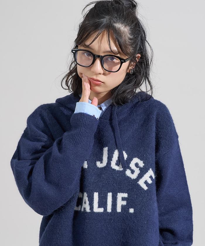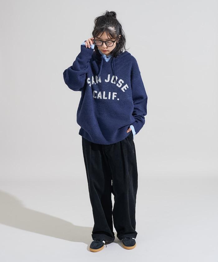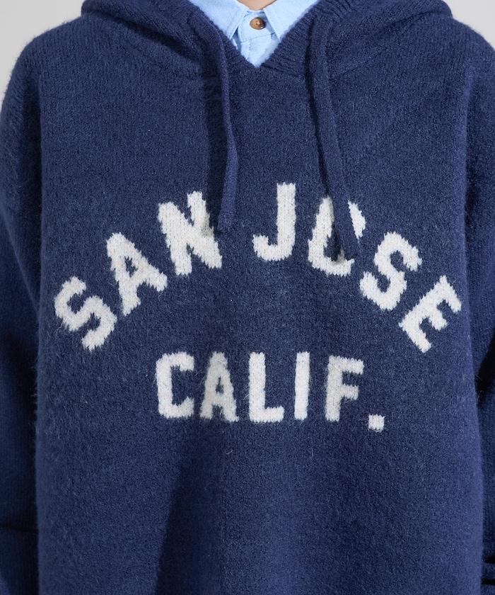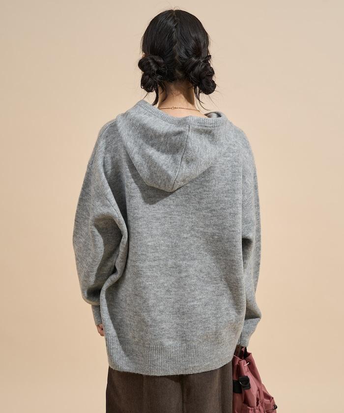 提花大字母針織連帽衫