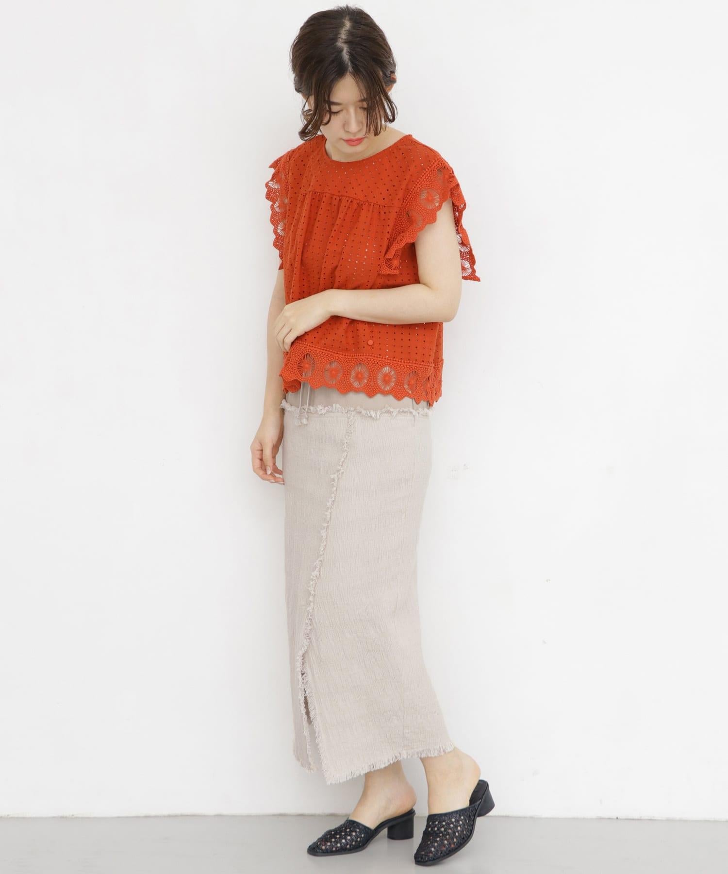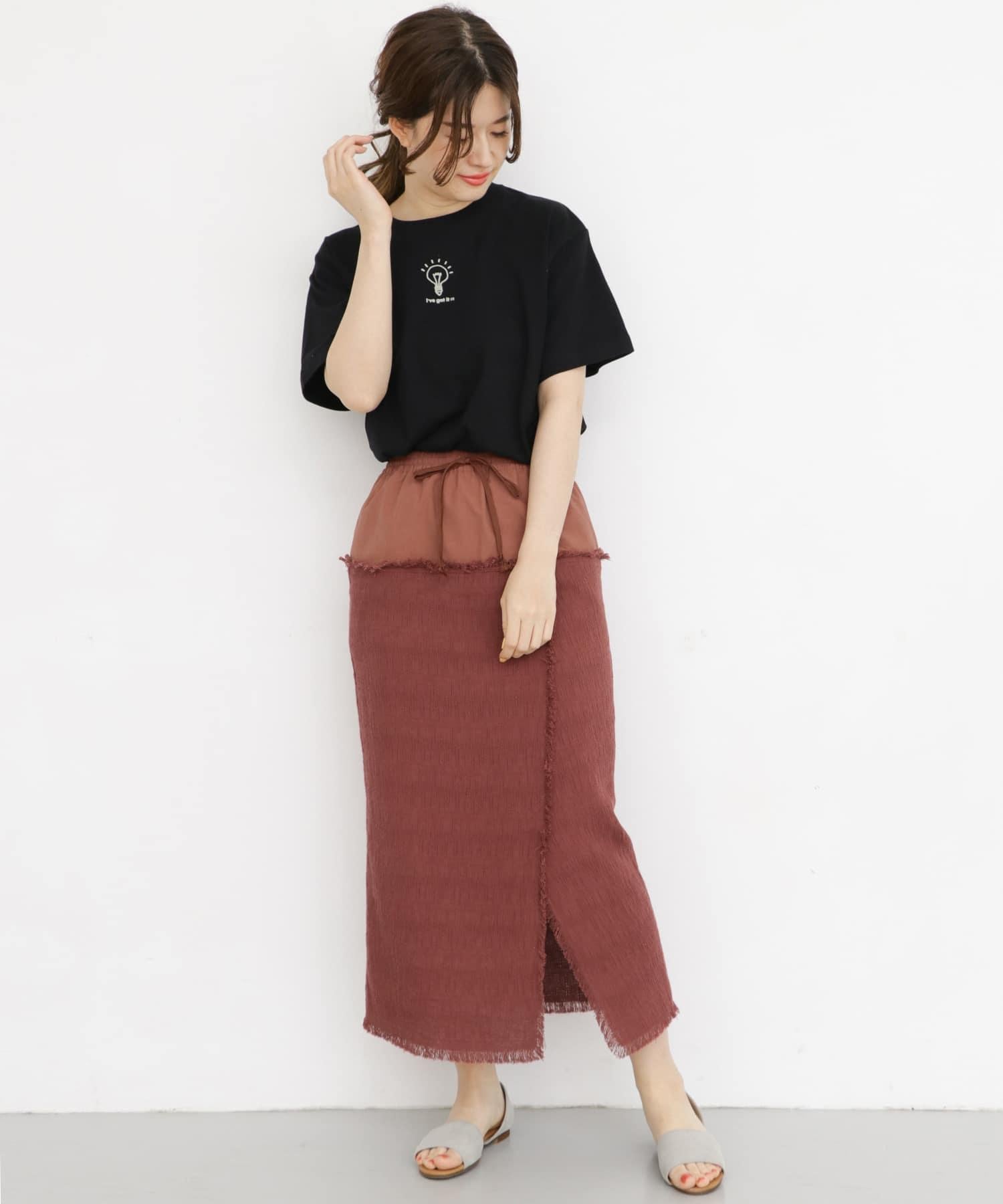 提花面料的可愛裙裝,具有表面感。腰部全部採用鬆緊設計,穿著舒適。可嘗試搭配上衣,打造簡潔造型。
