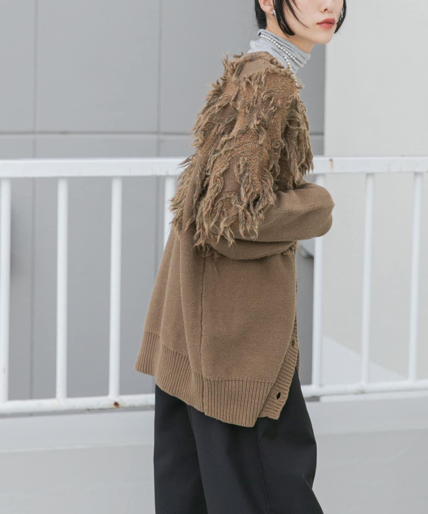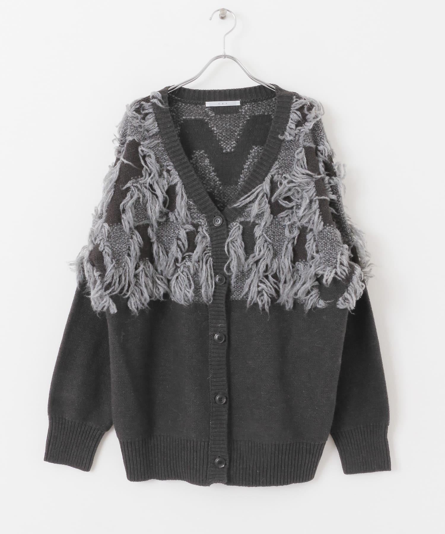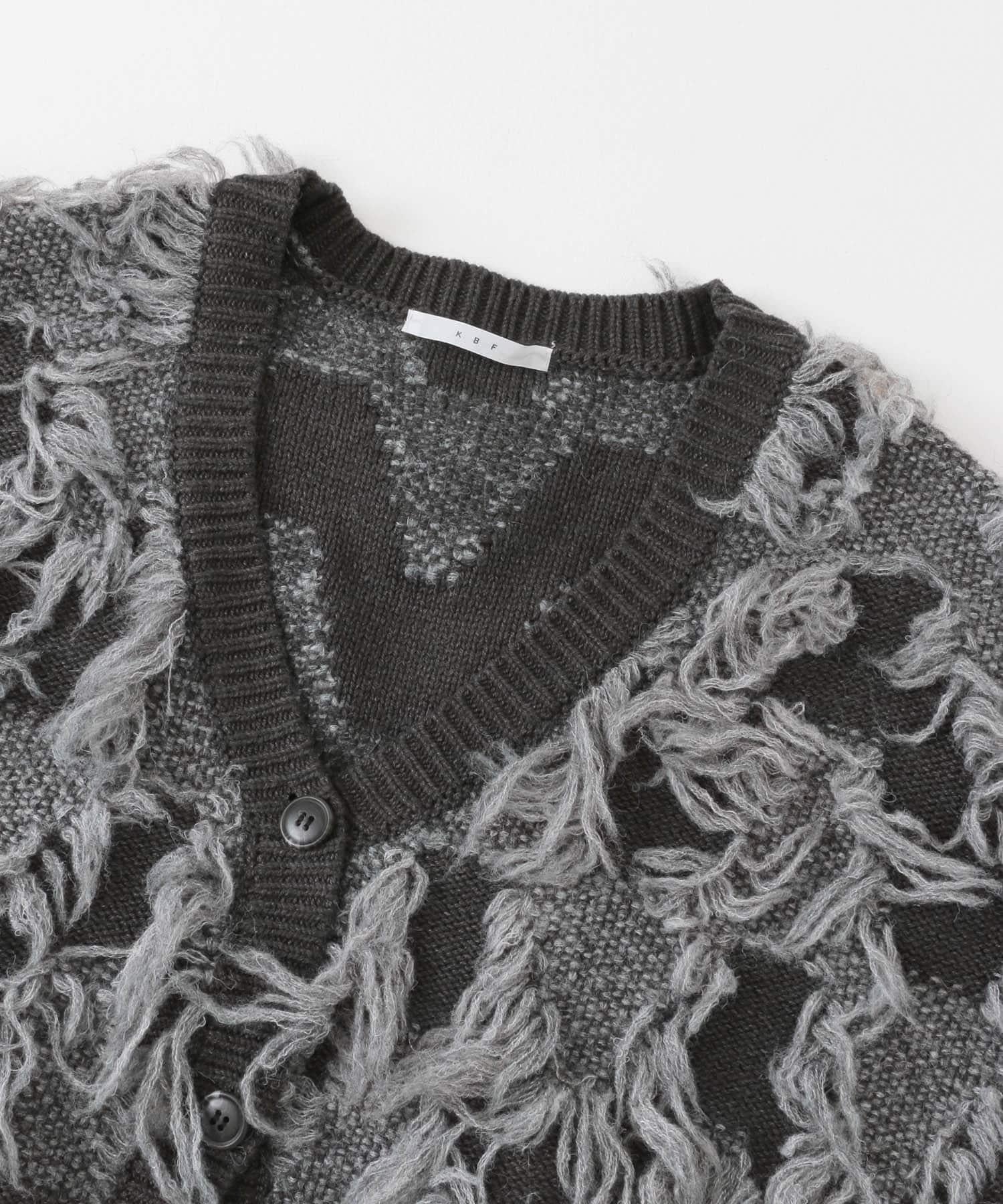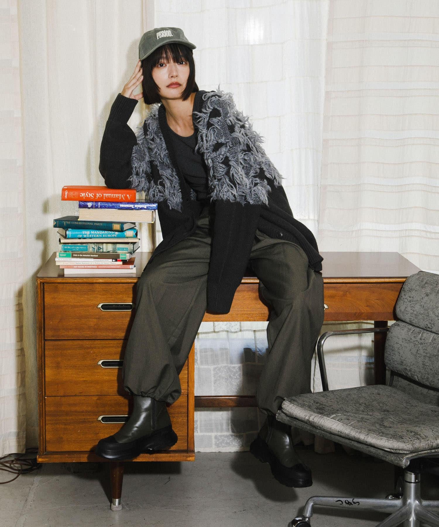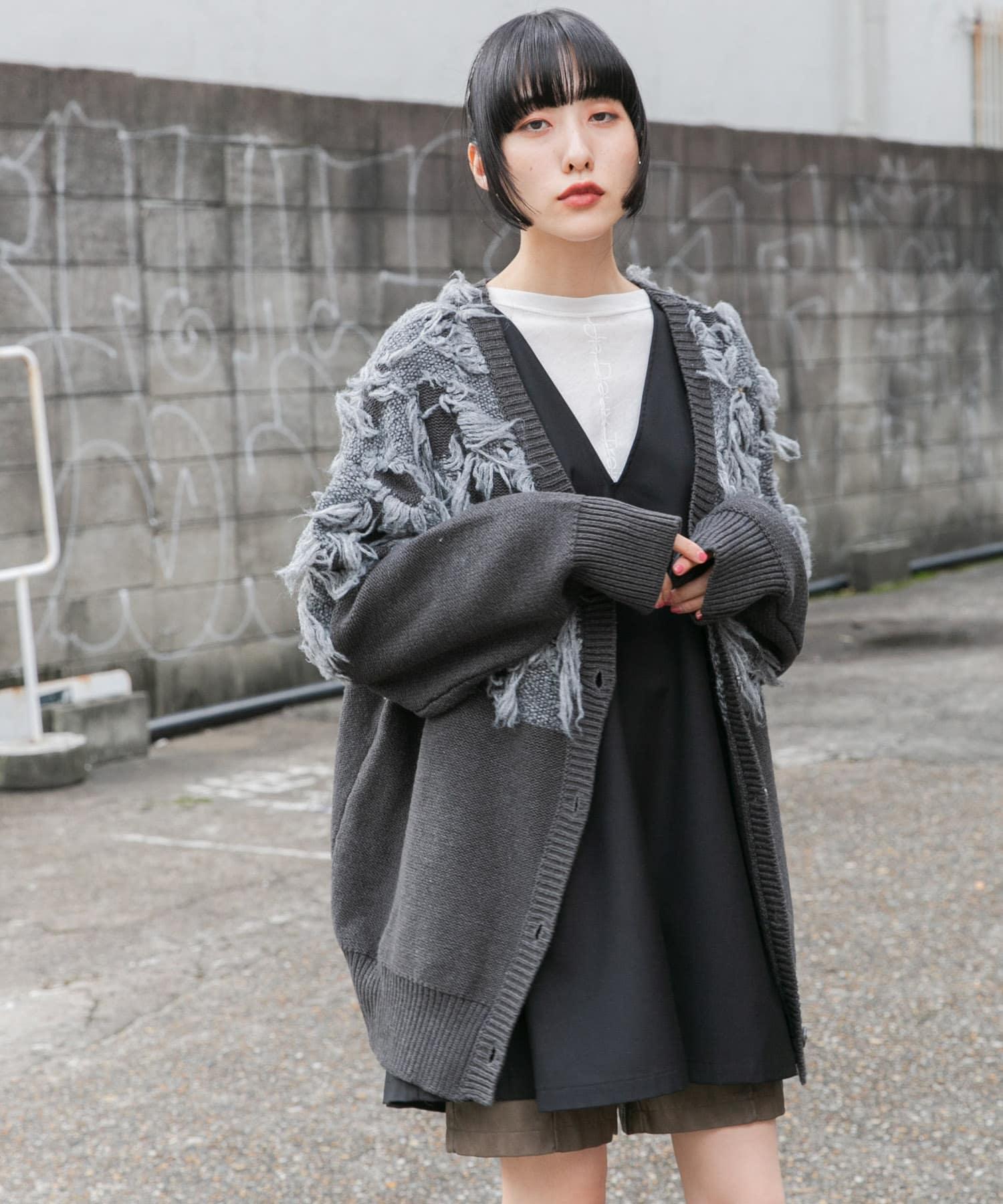 這款開襟羊毛衫的上部帶有獨特、蓬鬆的提花流蘇。它的長度和寬鬆的輪廓遮住了腰部,可作為外衣穿著。根據內搭的不同,它還可以長期穿著。豐富的色彩變化搭配不同的氛圍也值得一提。