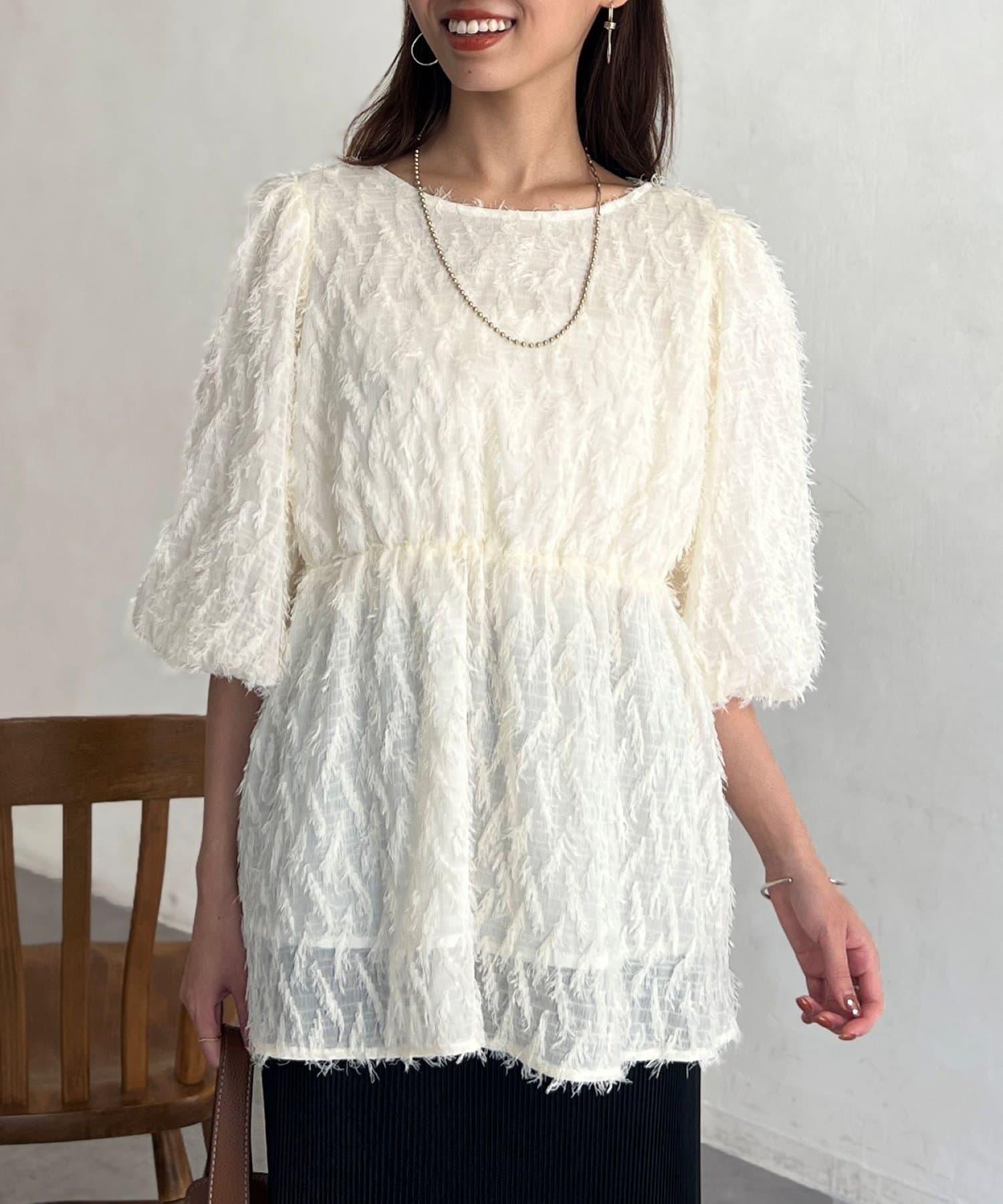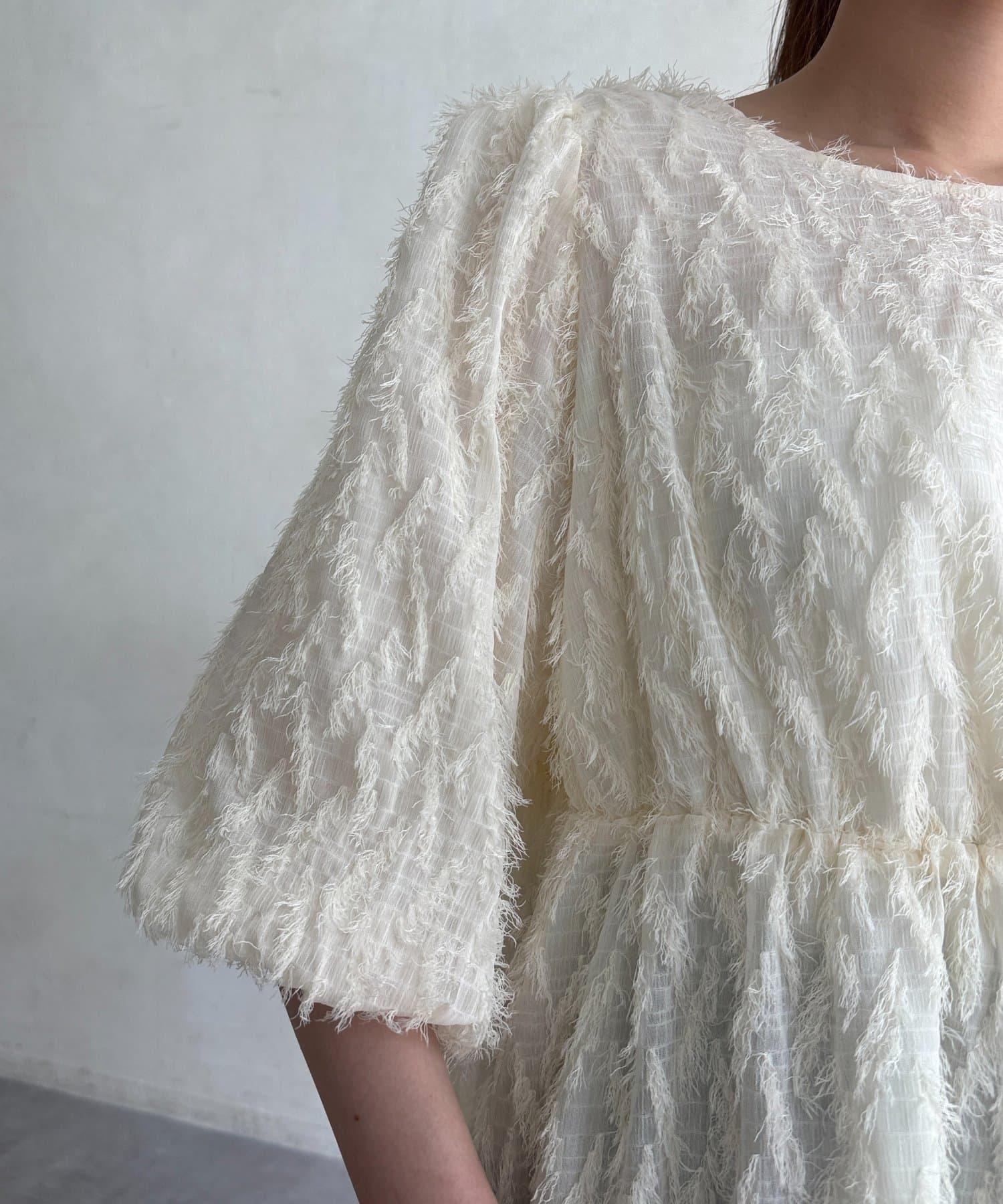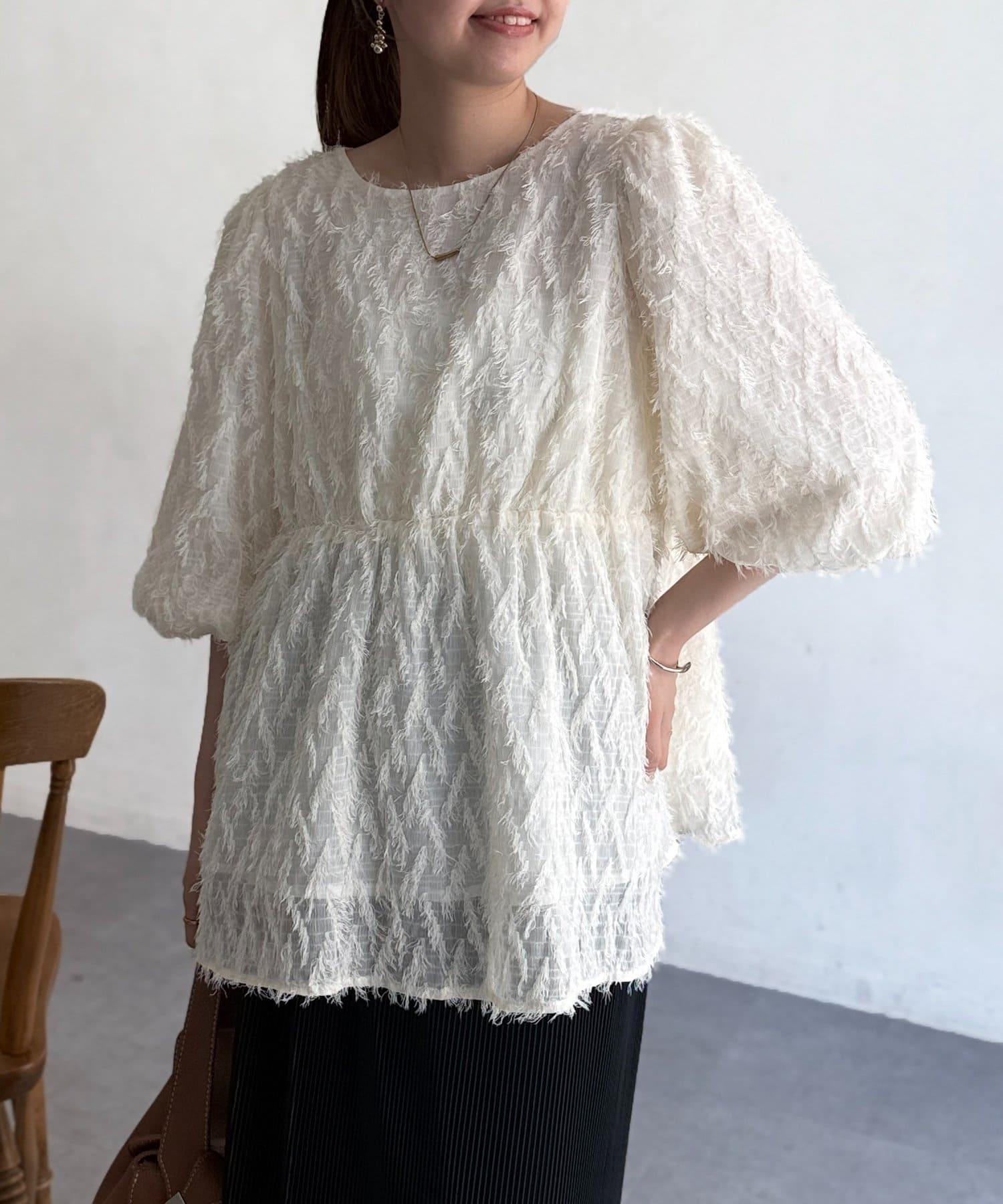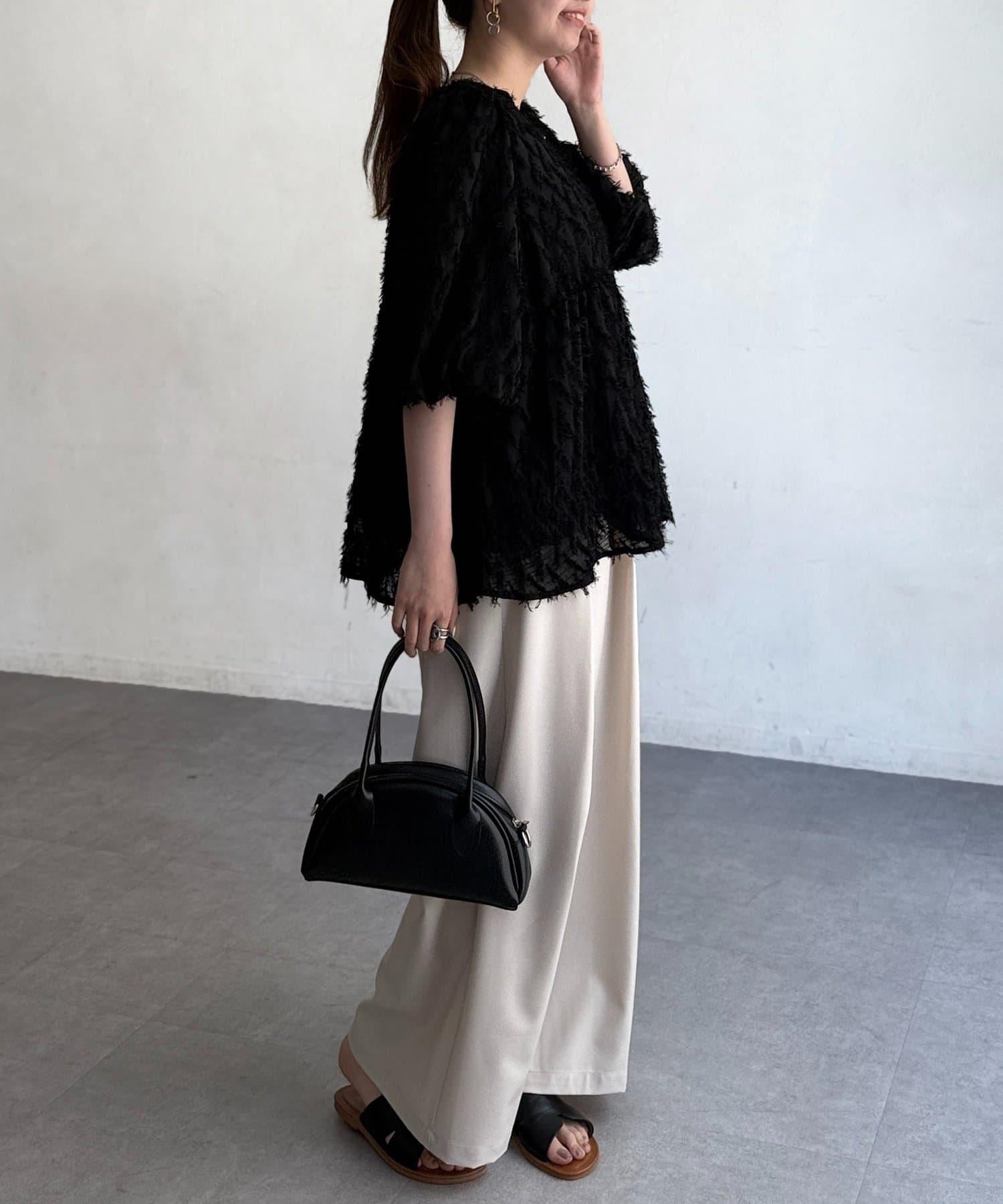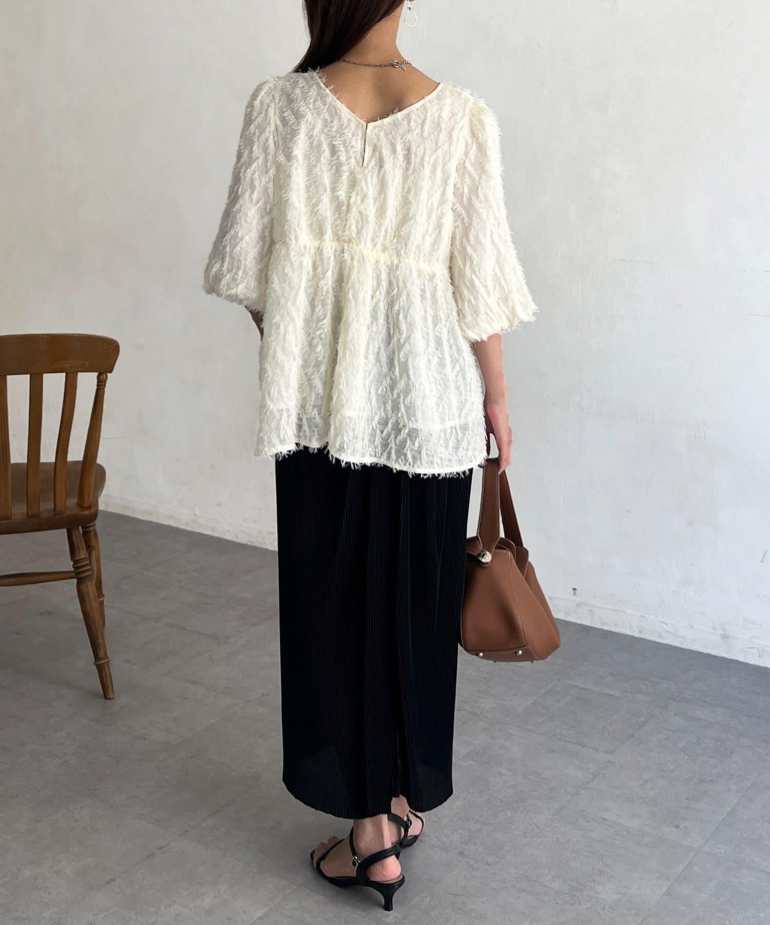 立體感適中的蓬鬆袖子和從胸口以下接縫處向下延伸的喇叭形線條,給人以女性化的印象!