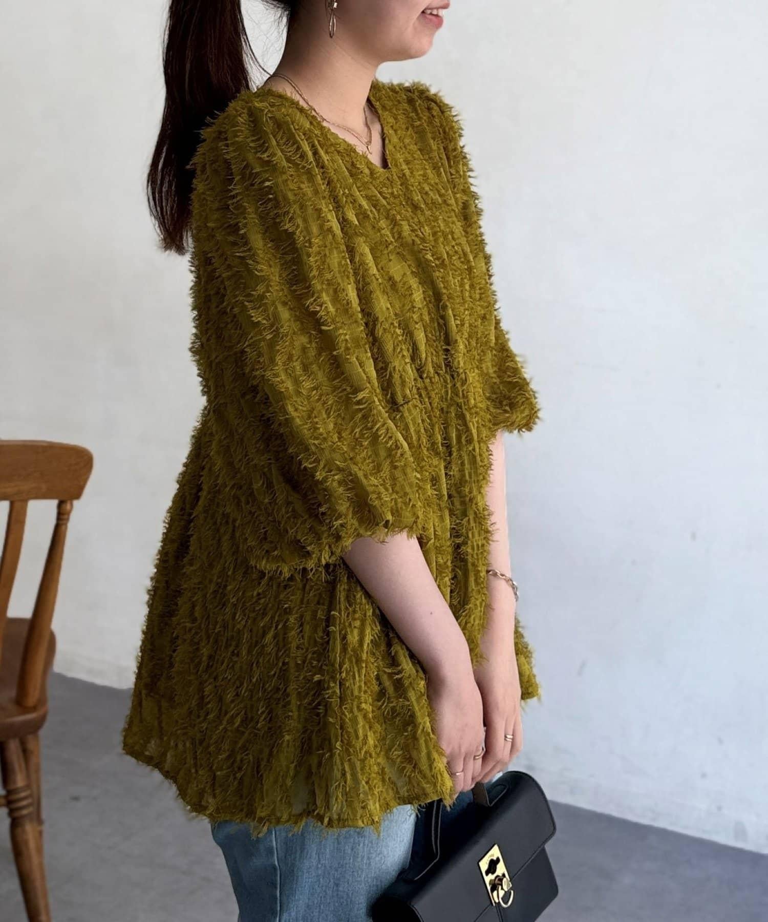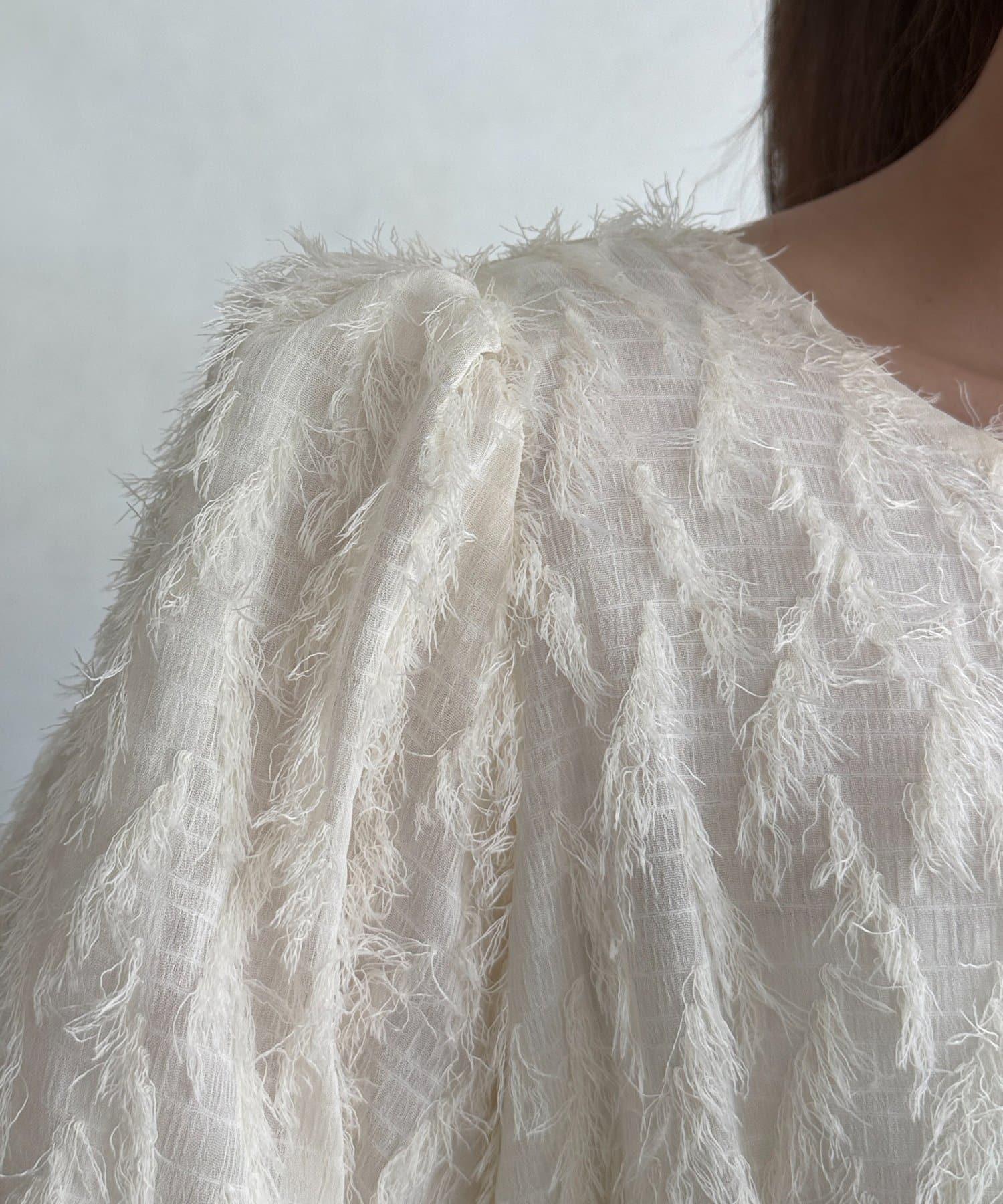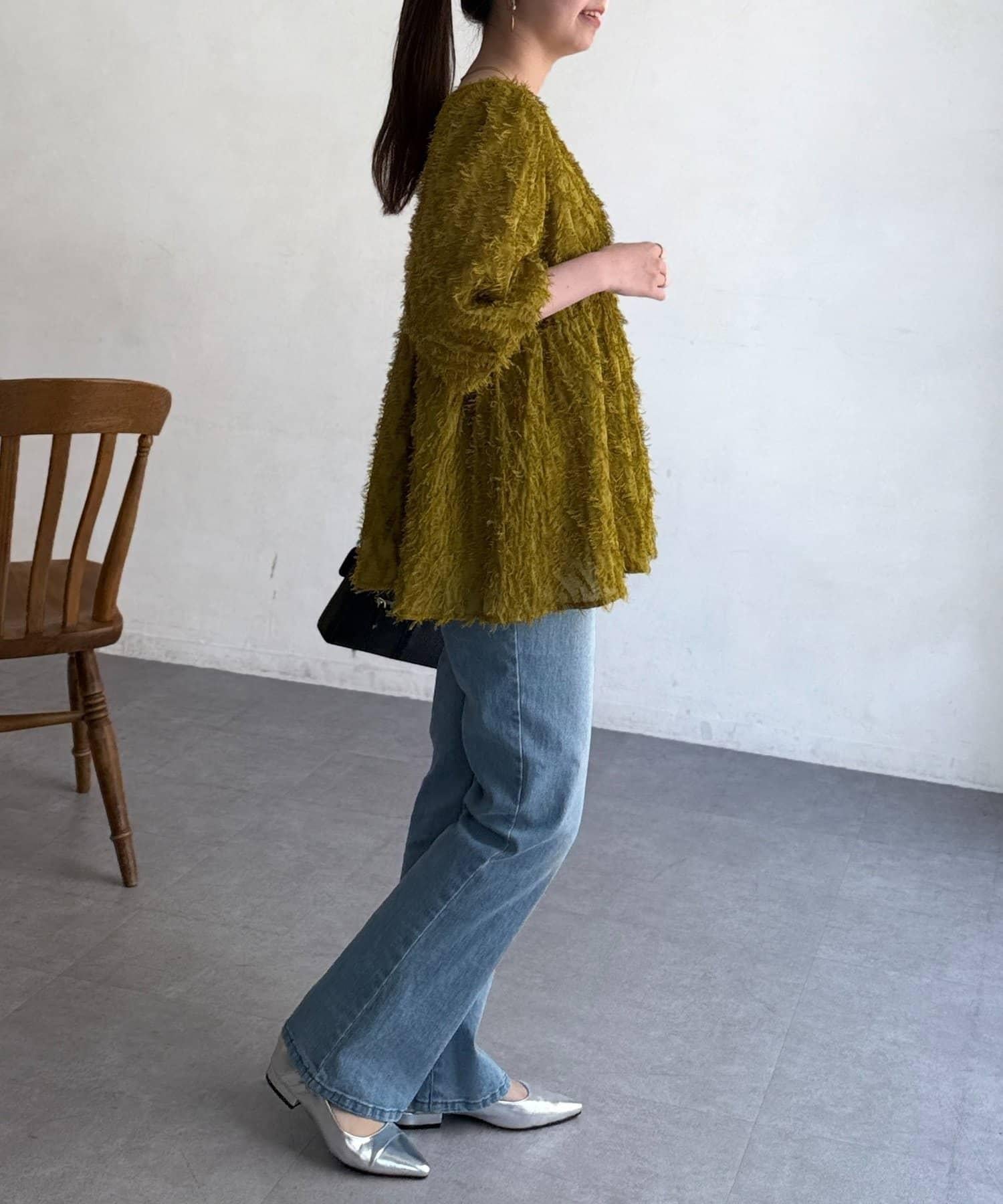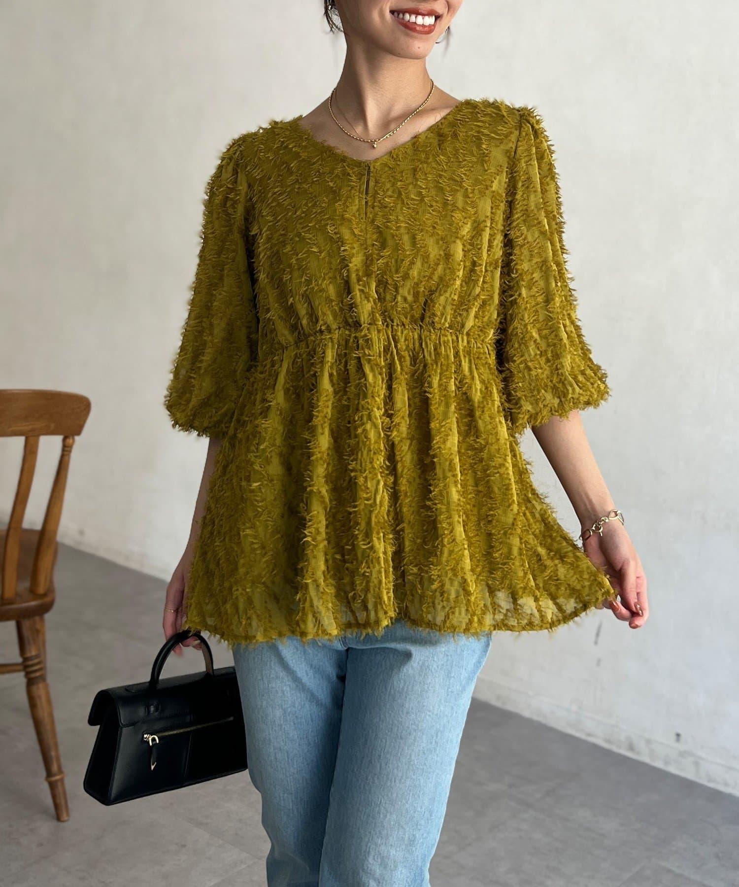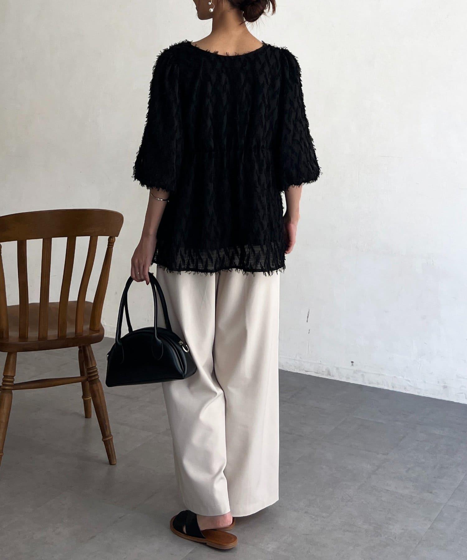 立體感適中的蓬鬆袖子和從胸口以下接縫處向下延伸的喇叭形線條,給人以女性化的印象!