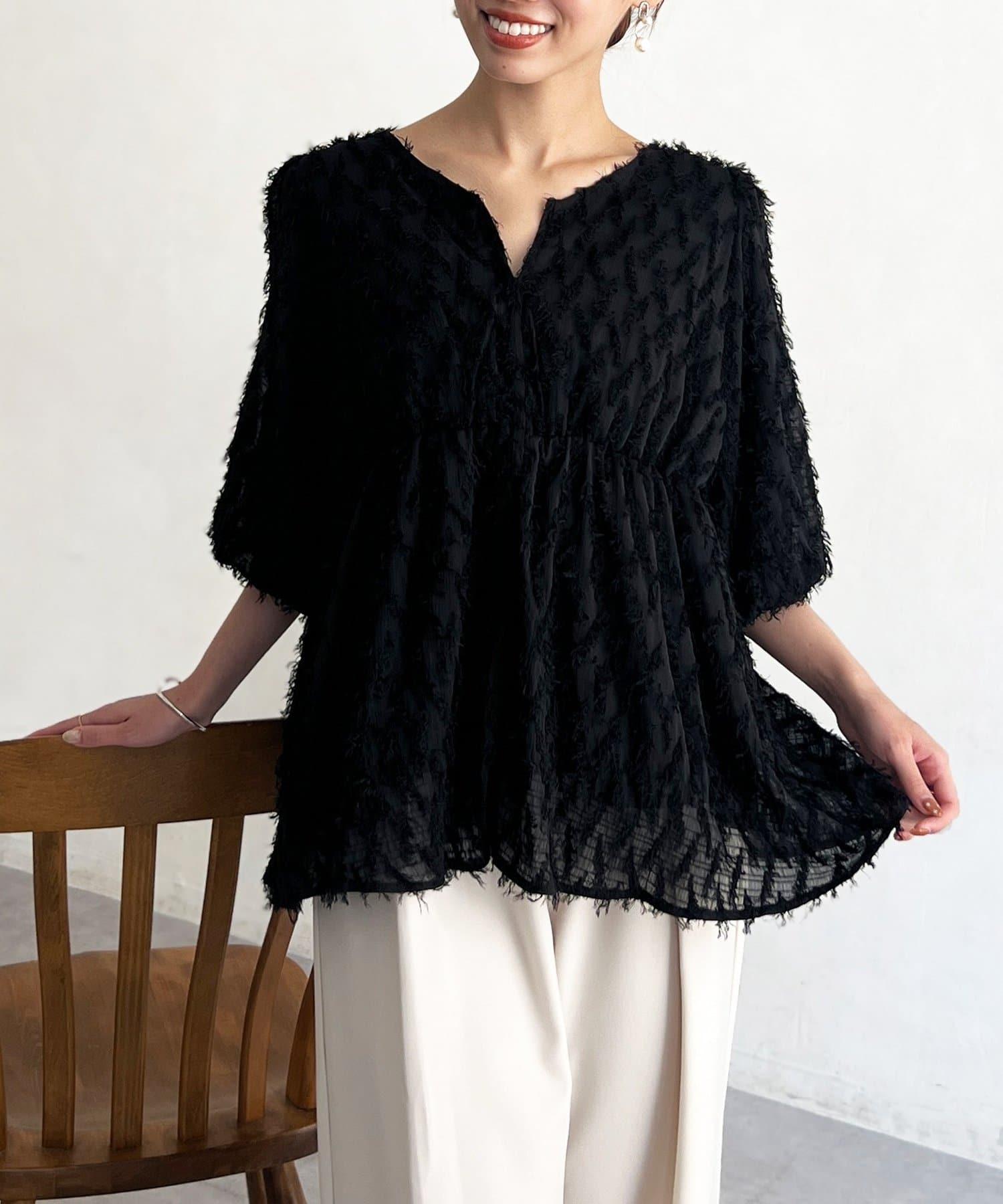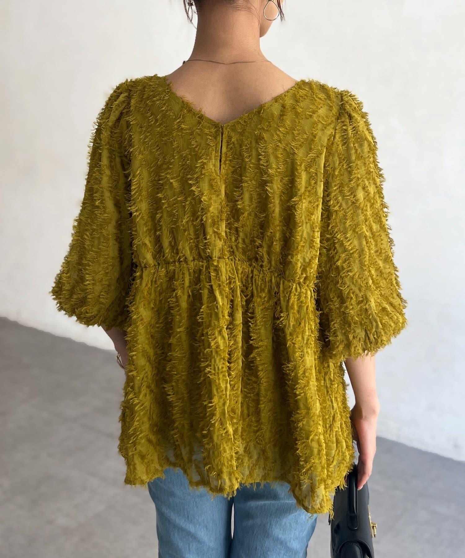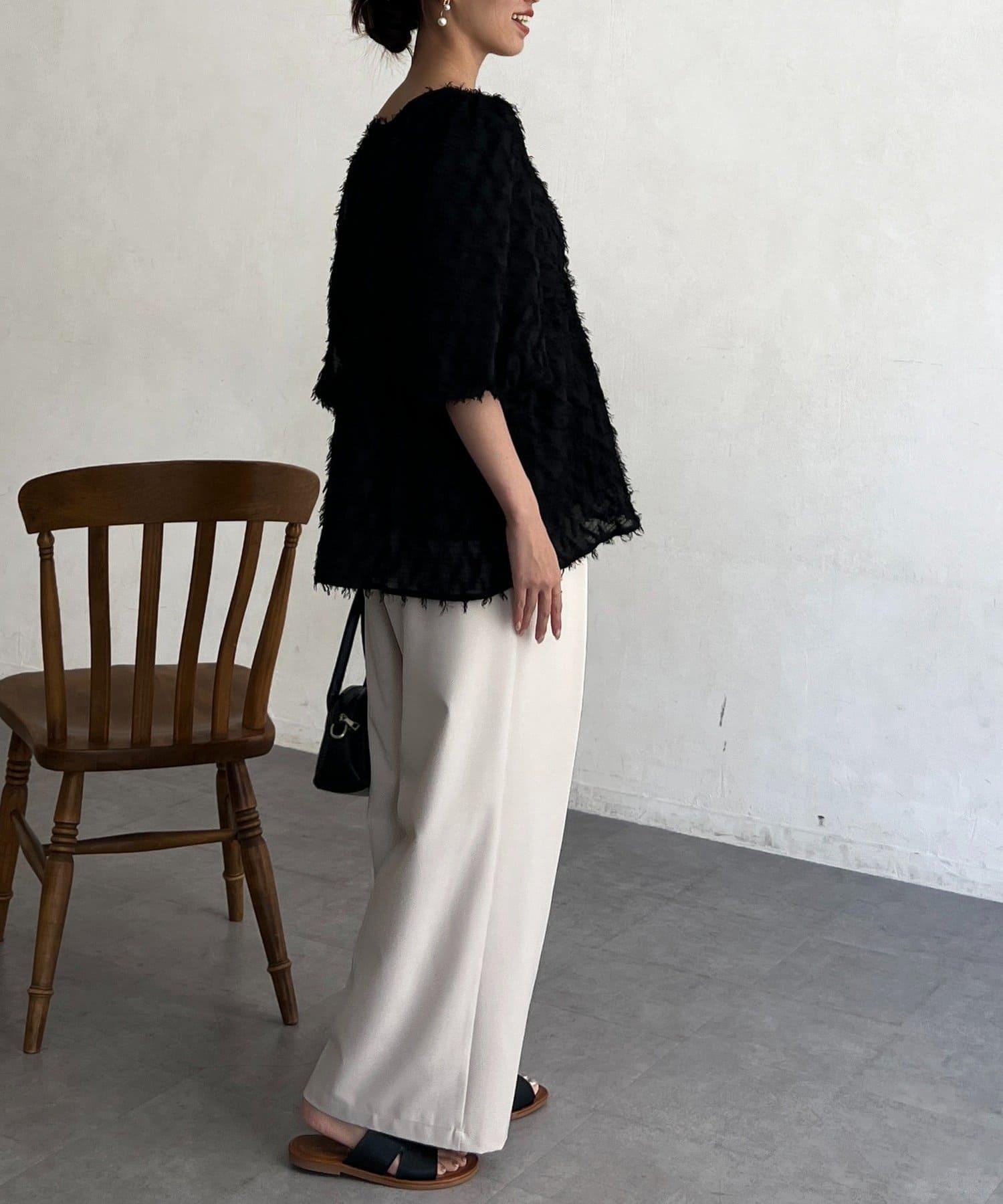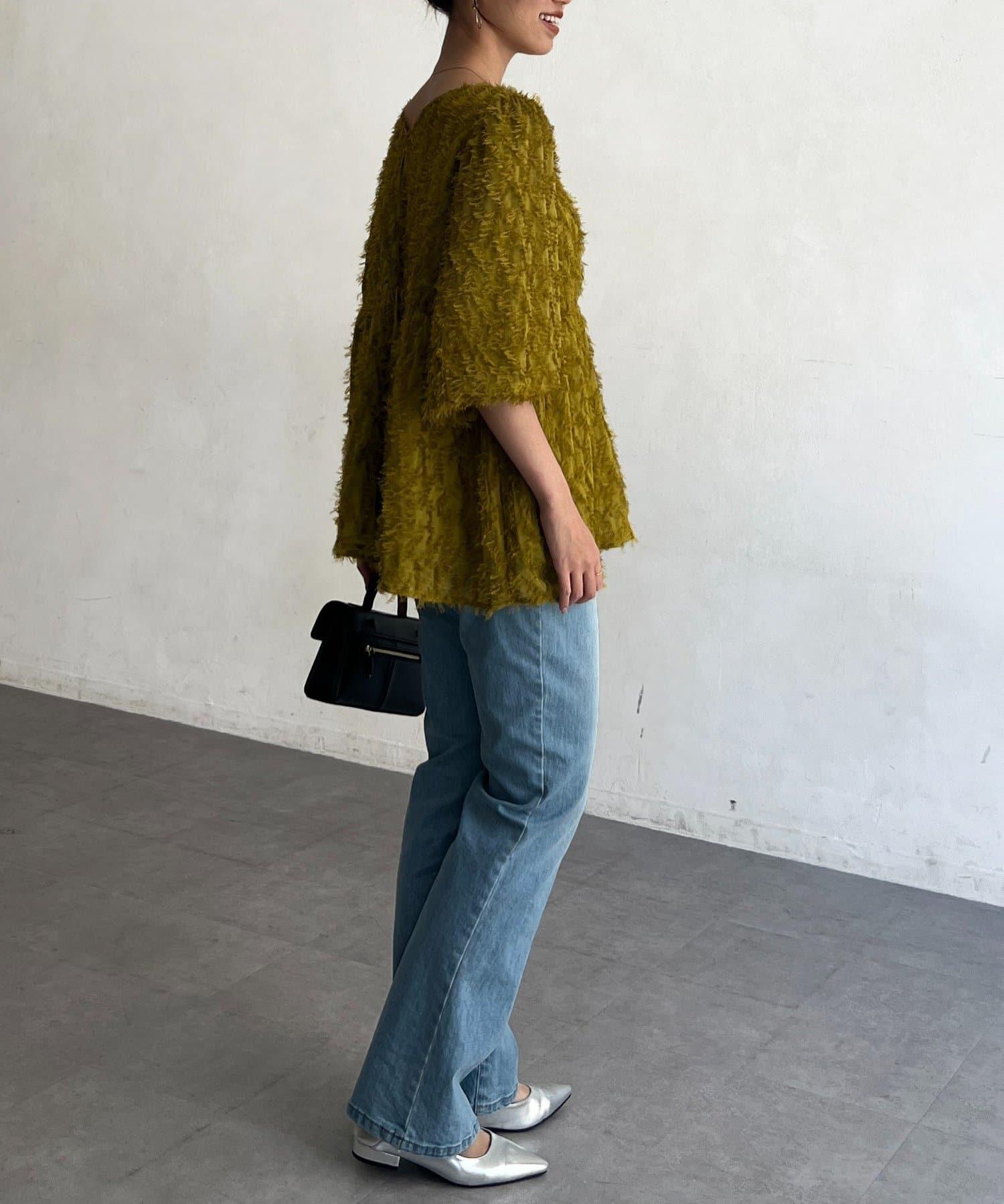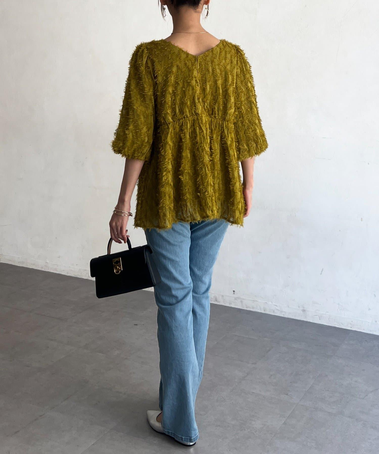 立體感適中的蓬鬆袖子和從胸口以下接縫處向下延伸的喇叭形線條,給人以女性化的印象!