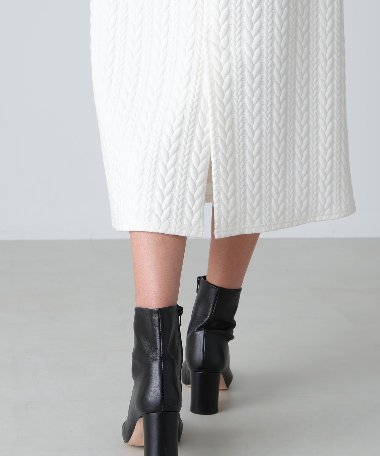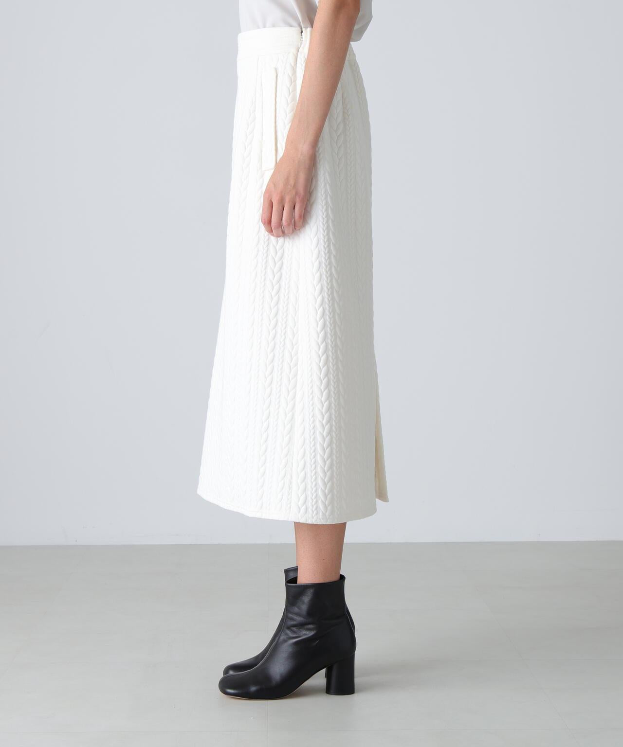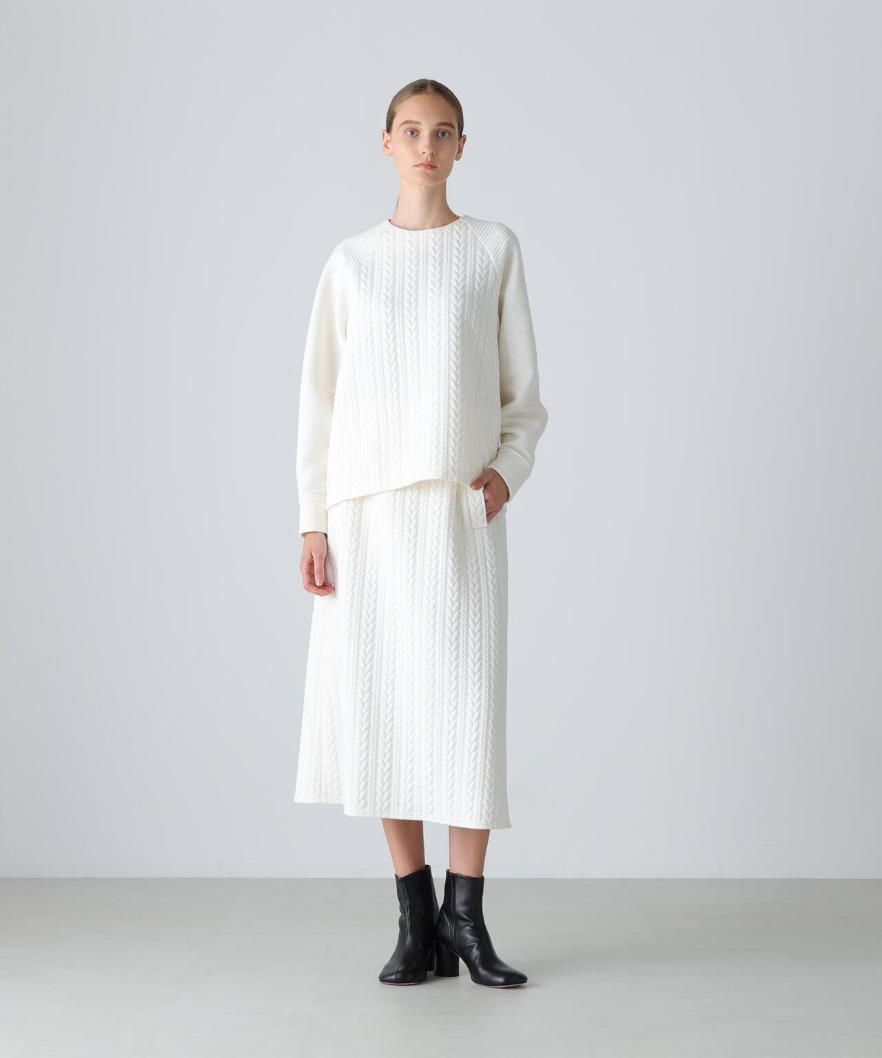 不平整的提花面料,穿著更貼身針織短裙由提花面料裁剪縫製而成。半緊身的流線型剪裁。建議搭配同款上衣(貨號:531-5260140)作為套裝穿著。