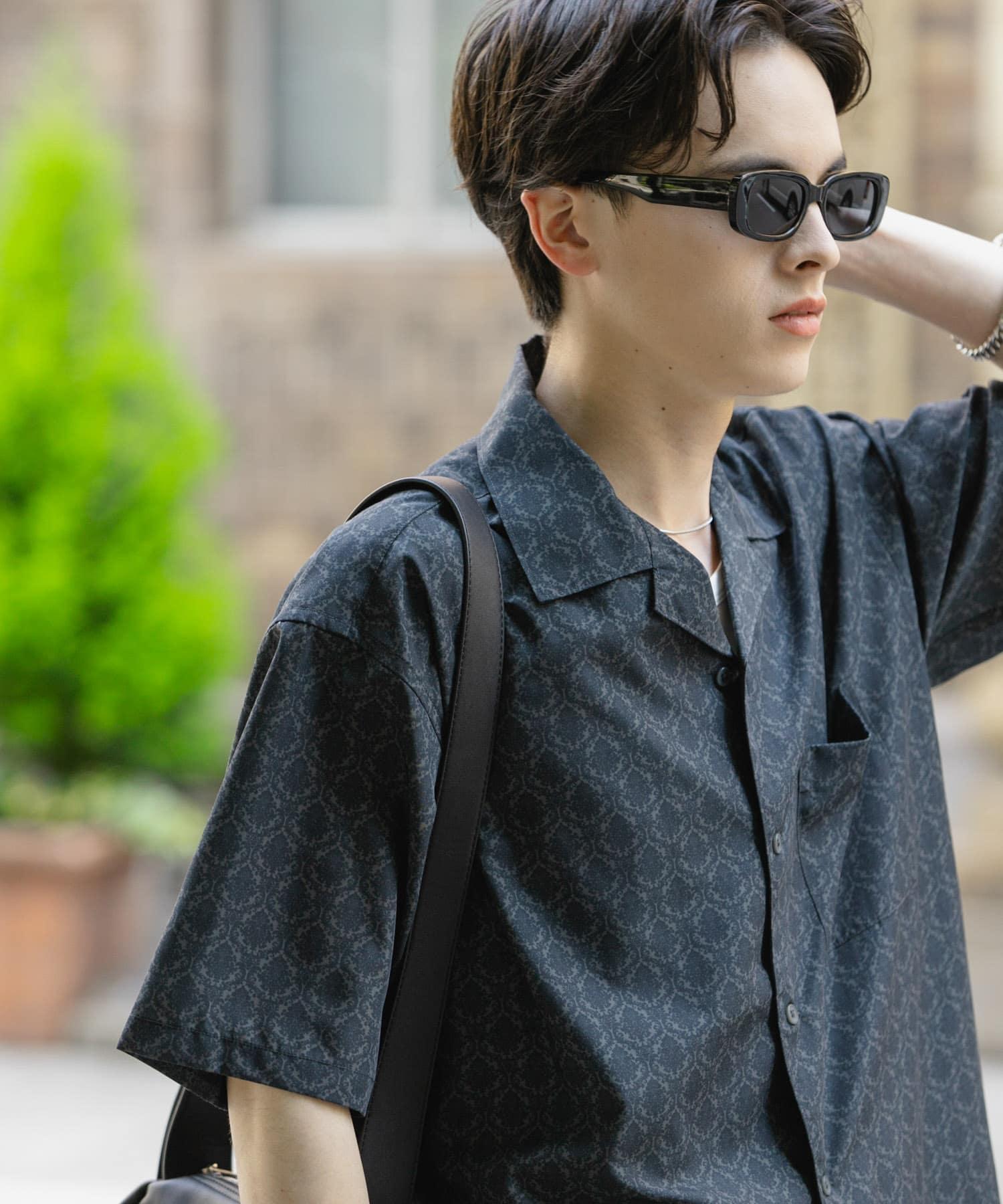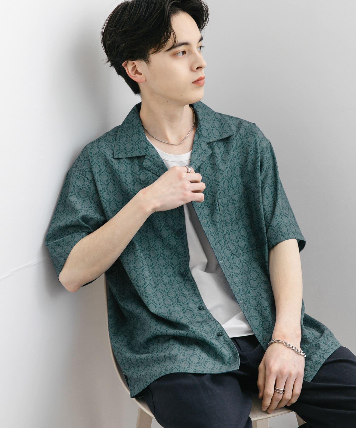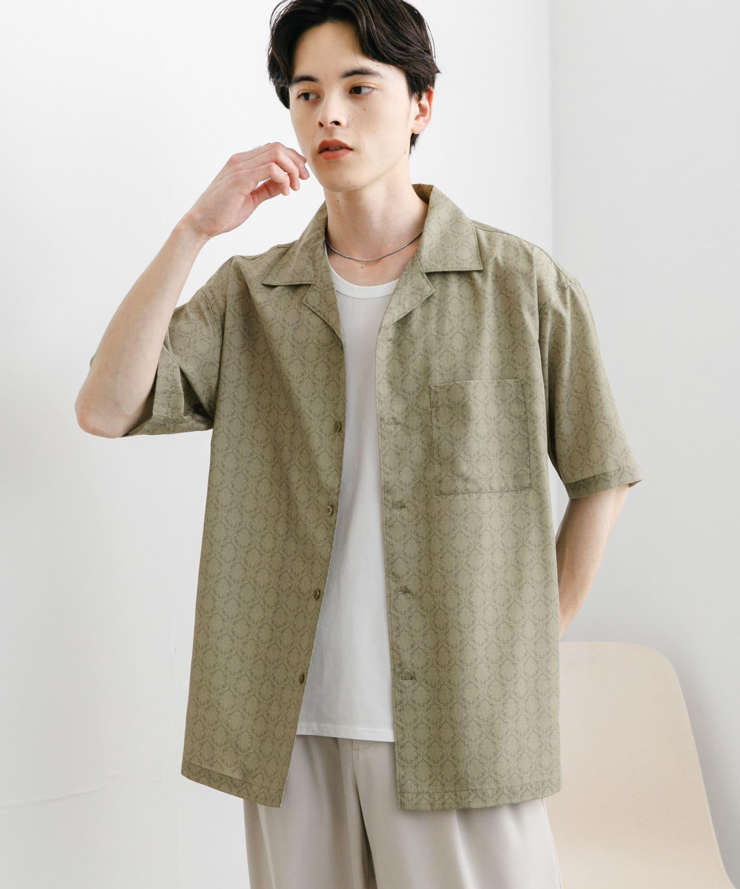 提花開領短袖襯衫