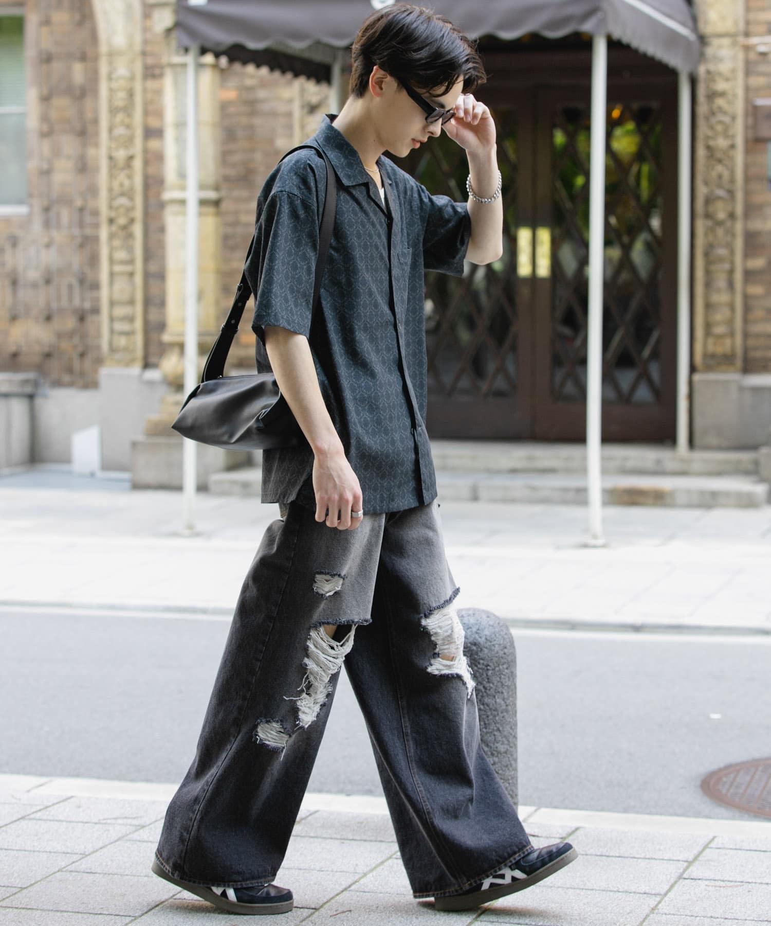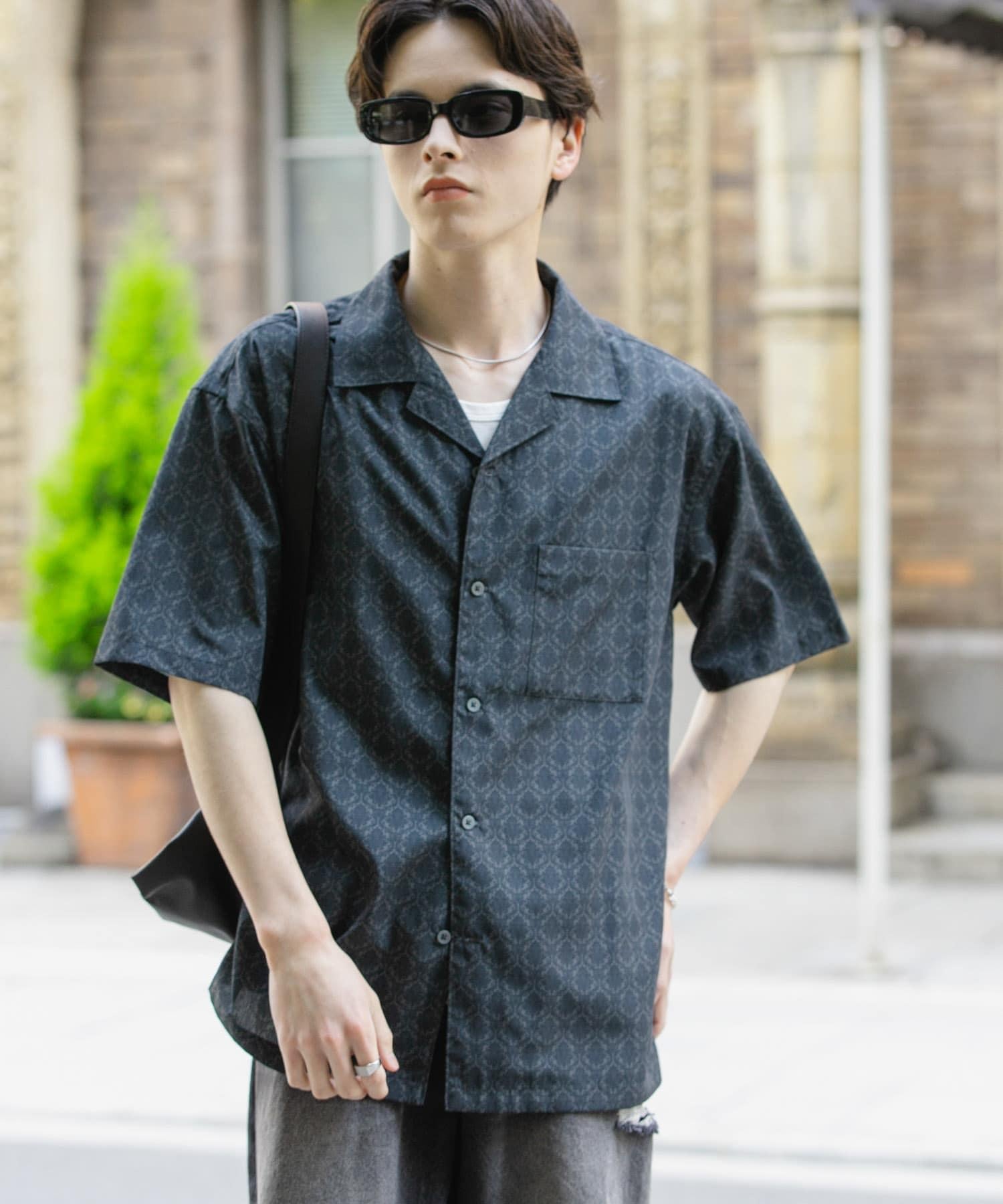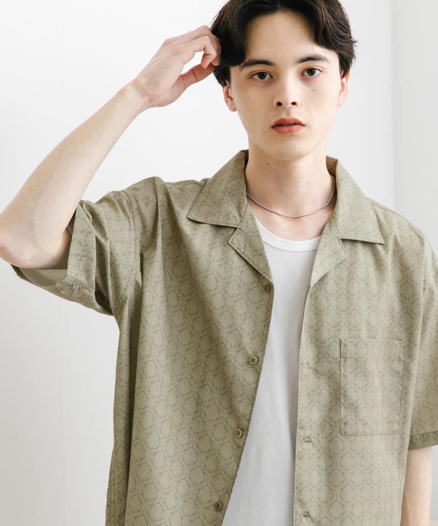提花開領短袖襯衫