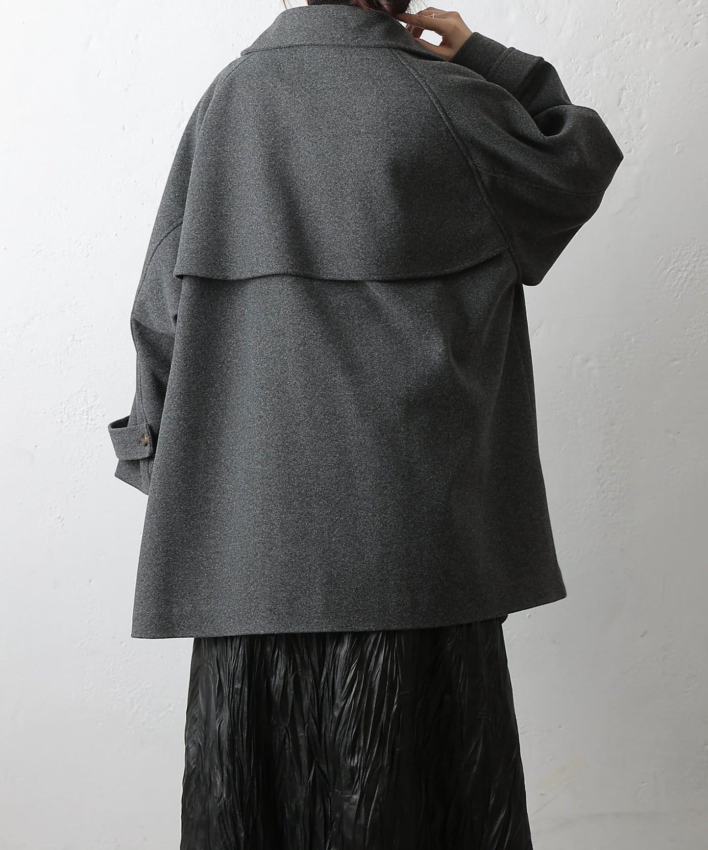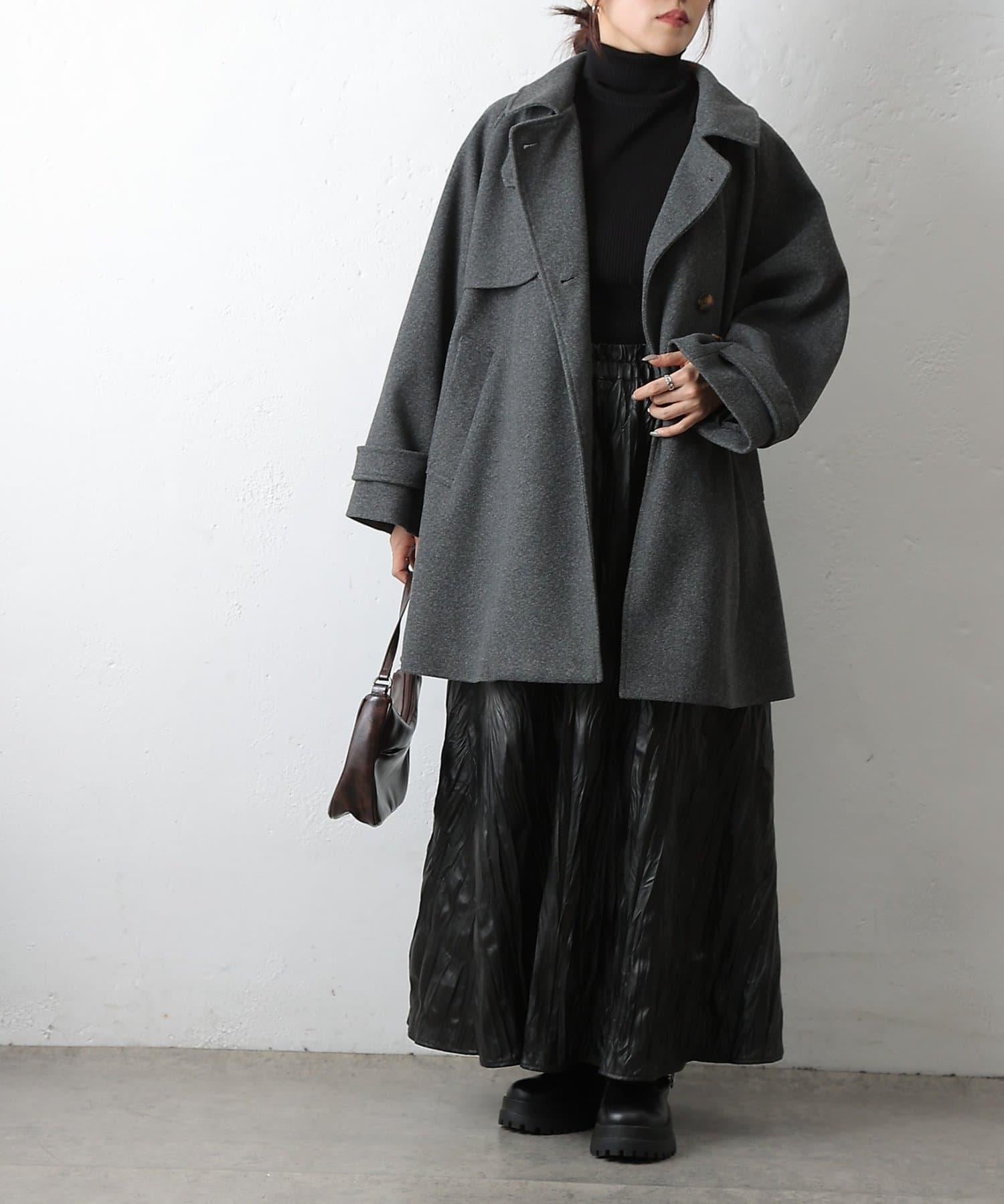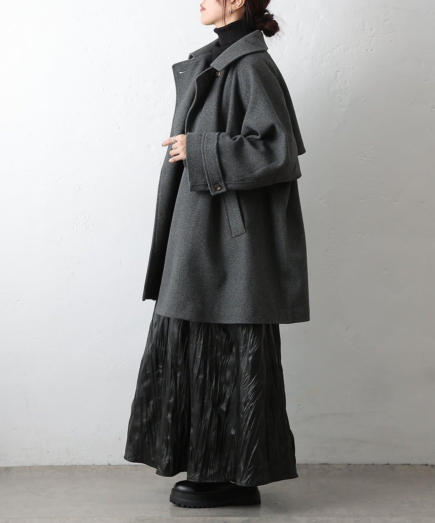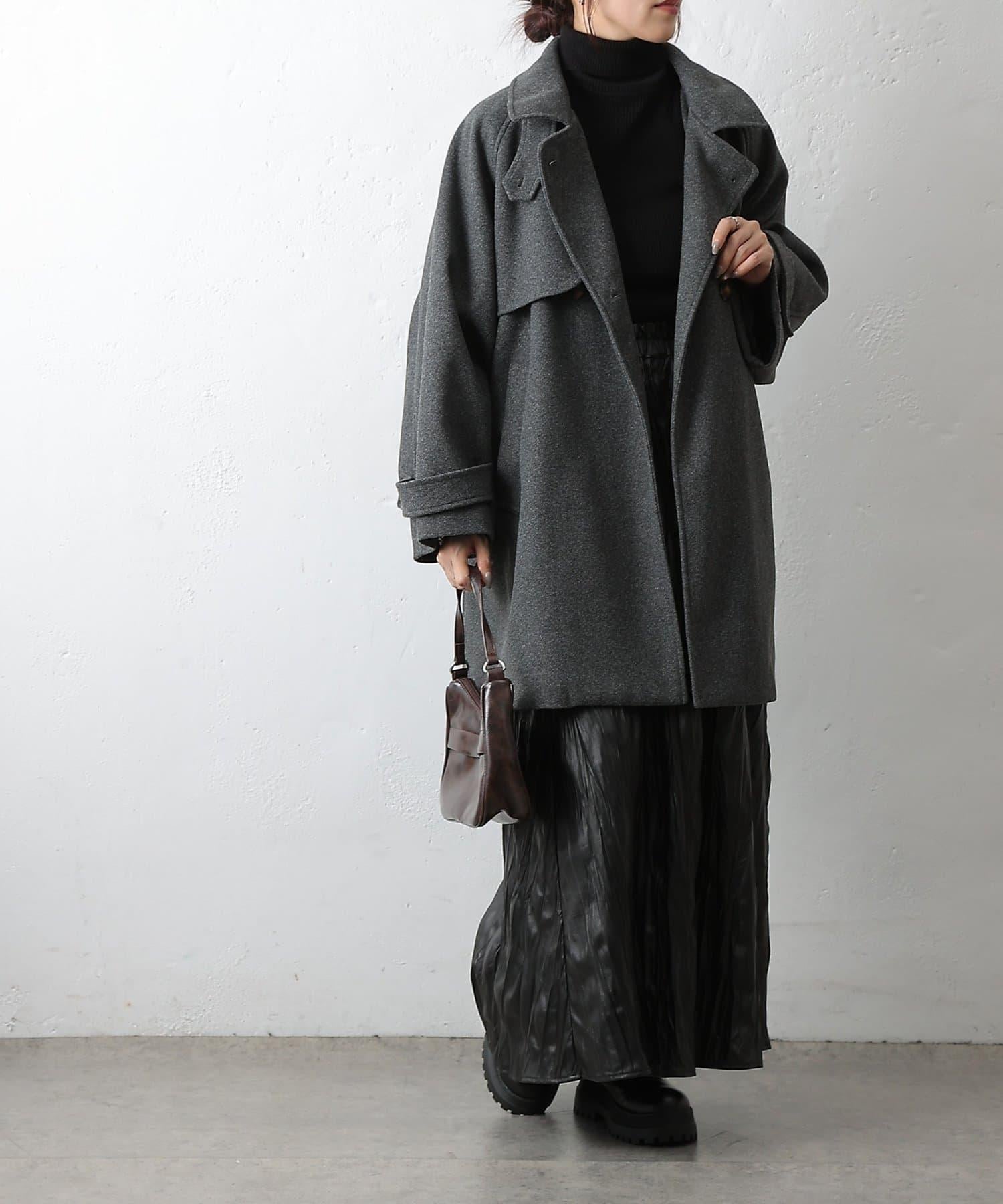 插肩袖平滑地連接了肩部線條,穿著舒適,不會影響手臂的活動,而長度則遮住了臀部,為冬季帶來溫暖。