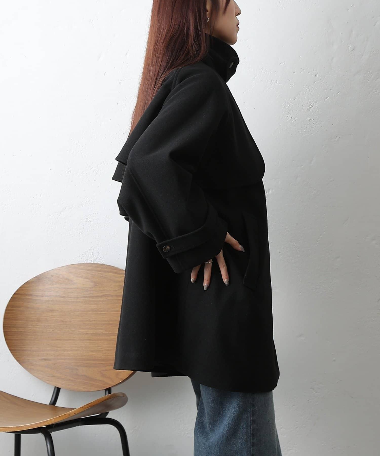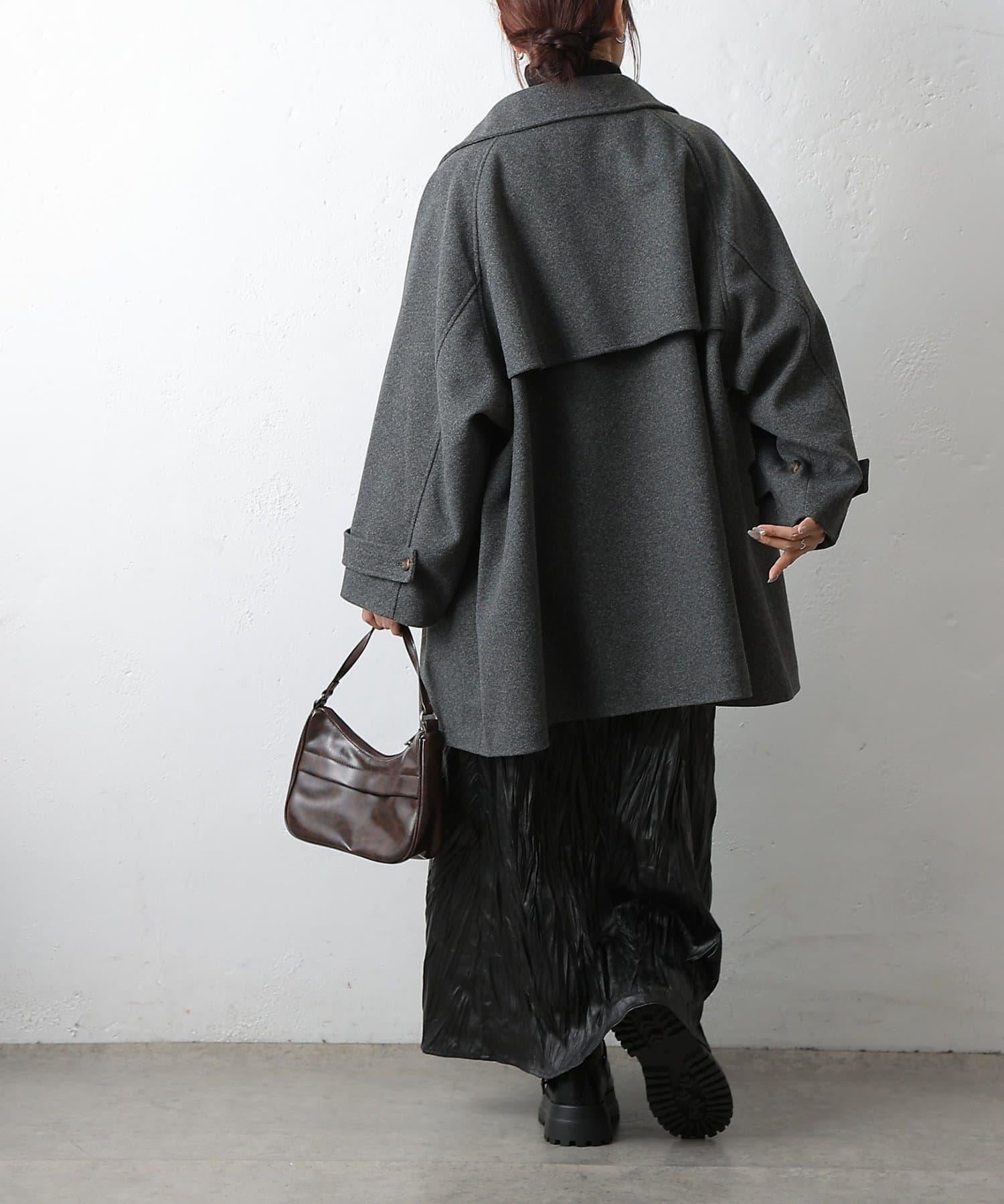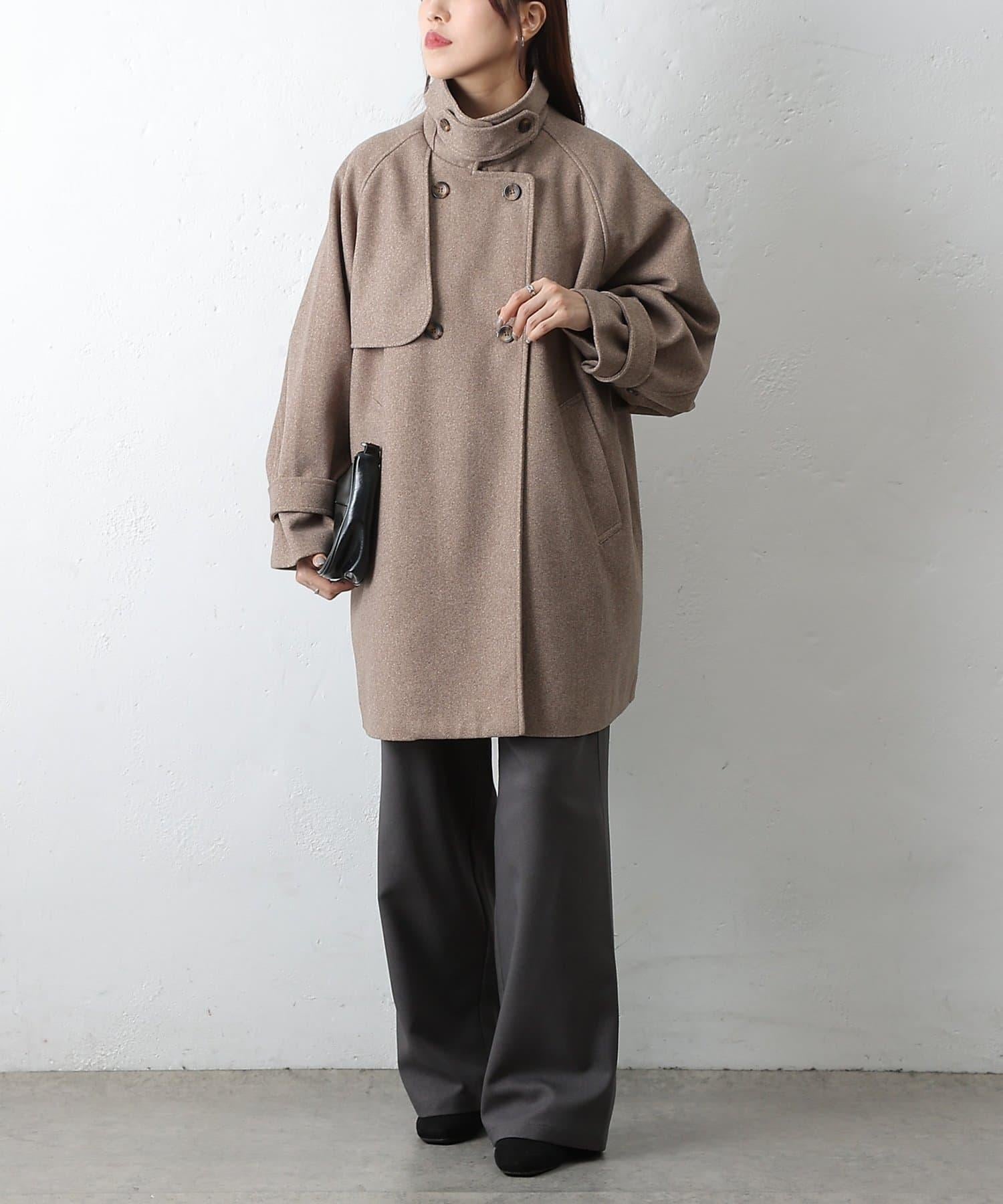 插肩袖平滑地連接了肩部線條,穿著舒適,不會影響手臂的活動,而長度則遮住了臀部,為冬季帶來溫暖。