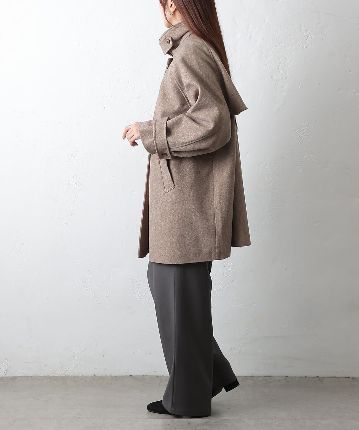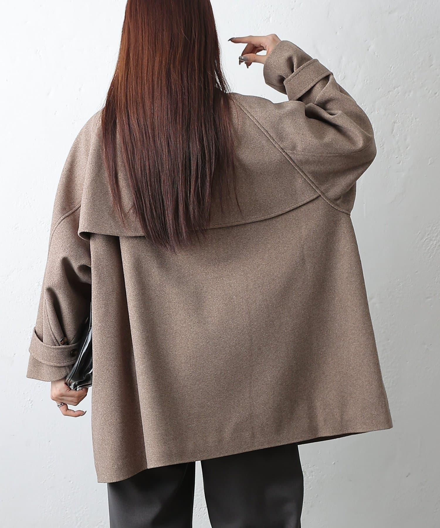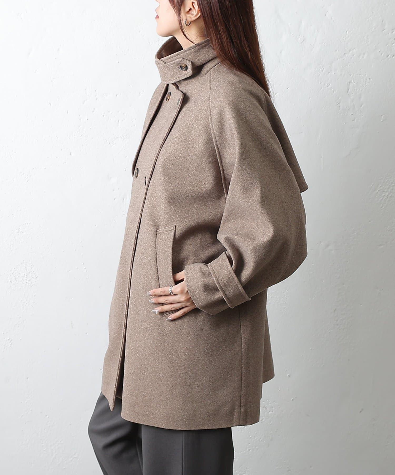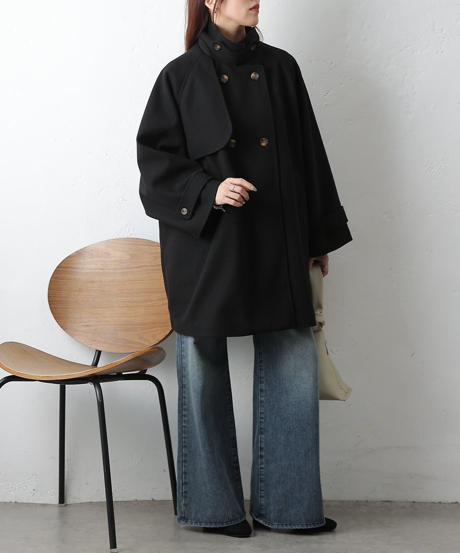 插肩袖平滑地連接了肩部線條,穿著舒適,不會影響手臂的活動,而長度則遮住了臀部,為冬季帶來溫暖。