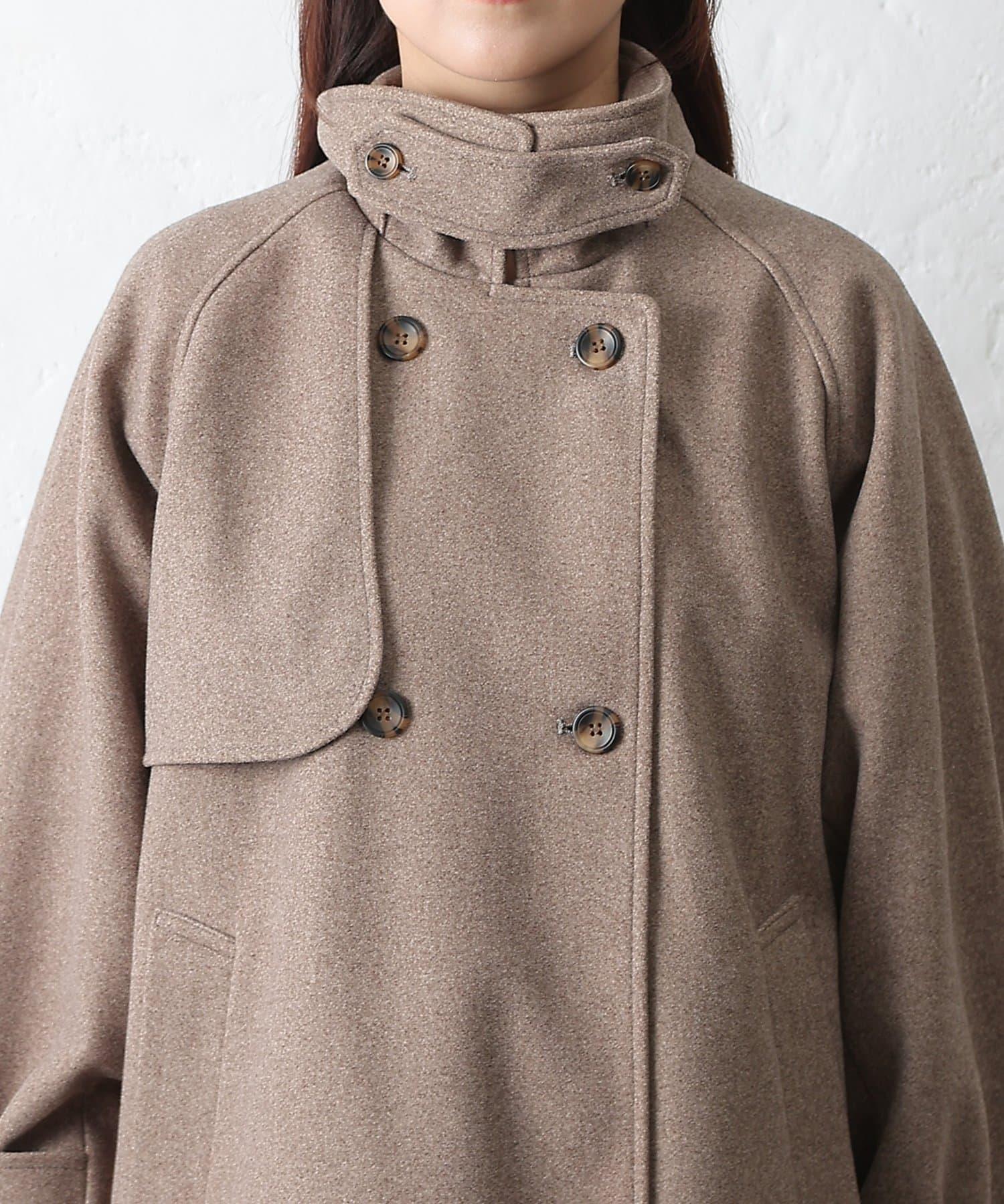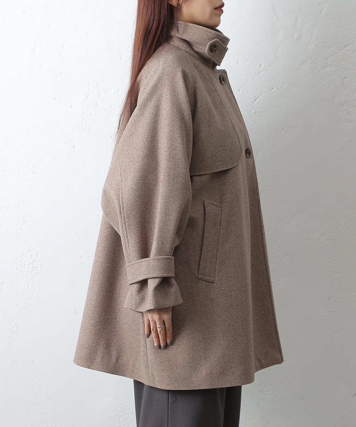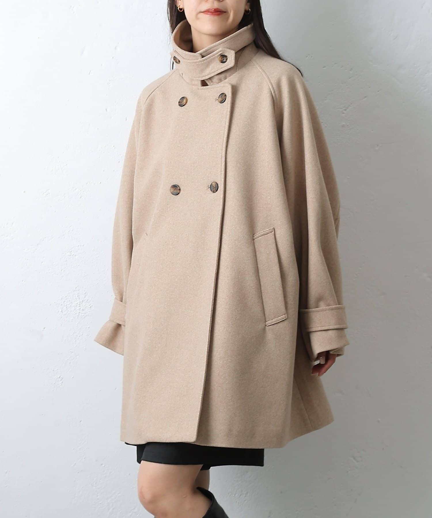 這款插肩袖喇叭形大衣將活動自如與女性化輪廓完美結合。