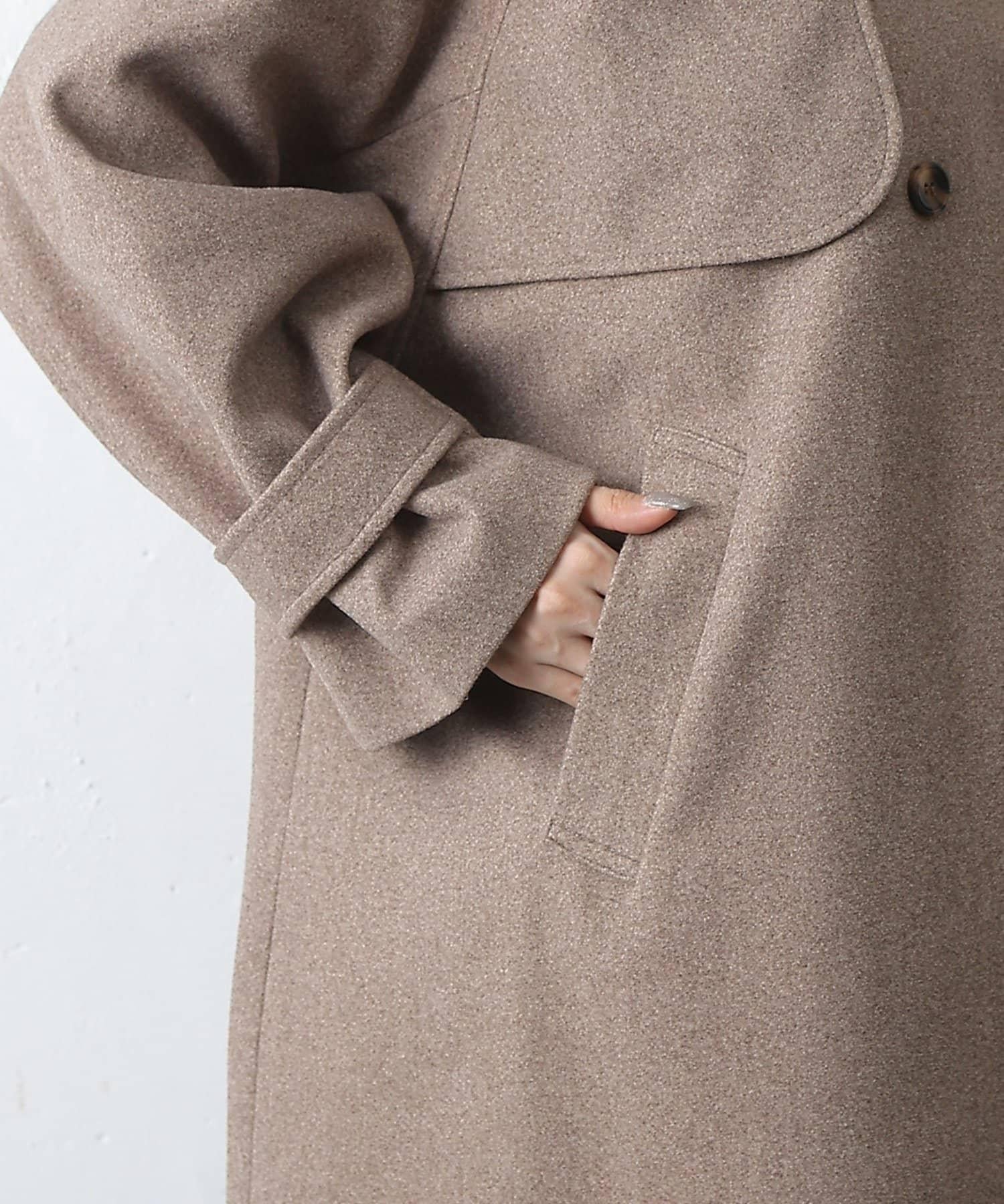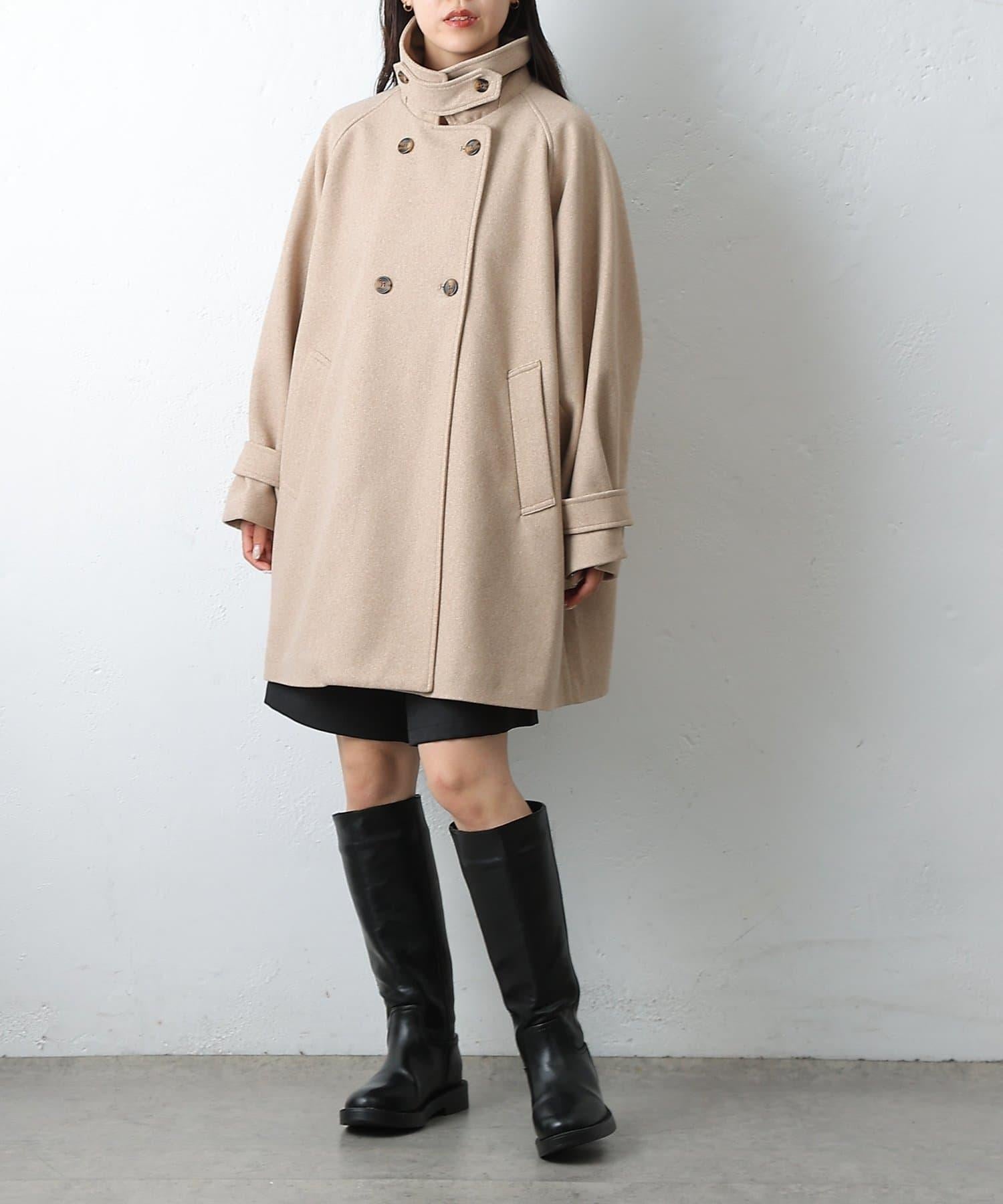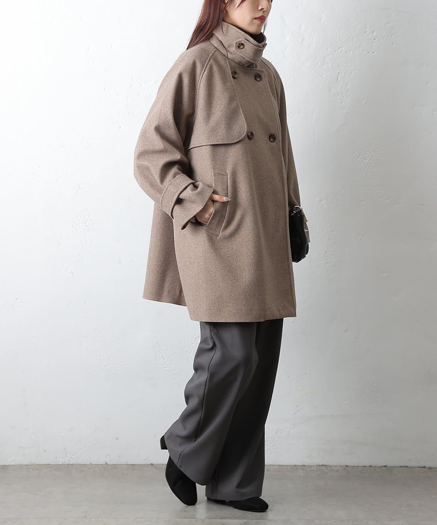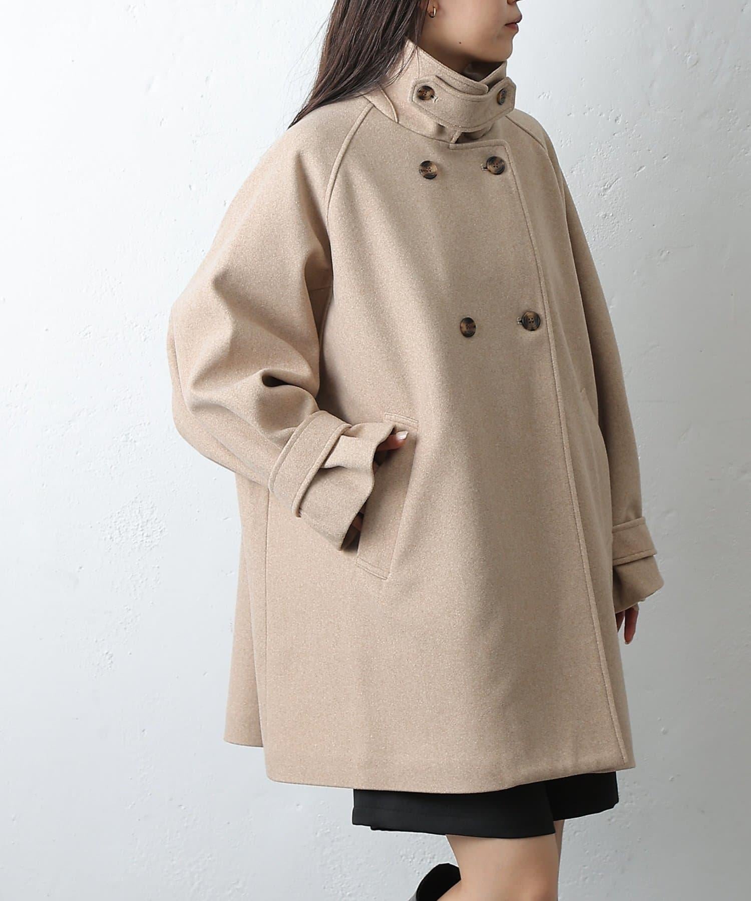 這款插肩袖喇叭形大衣將活動自如與女性化輪廓完美結合。