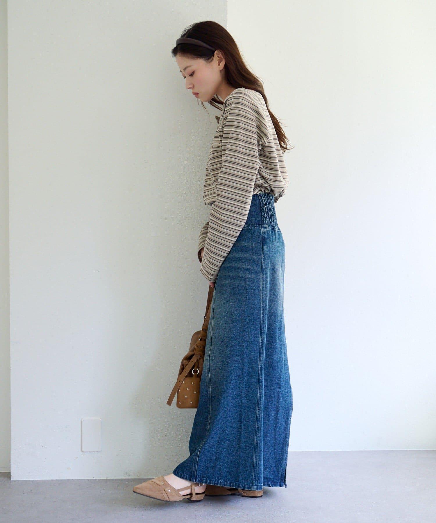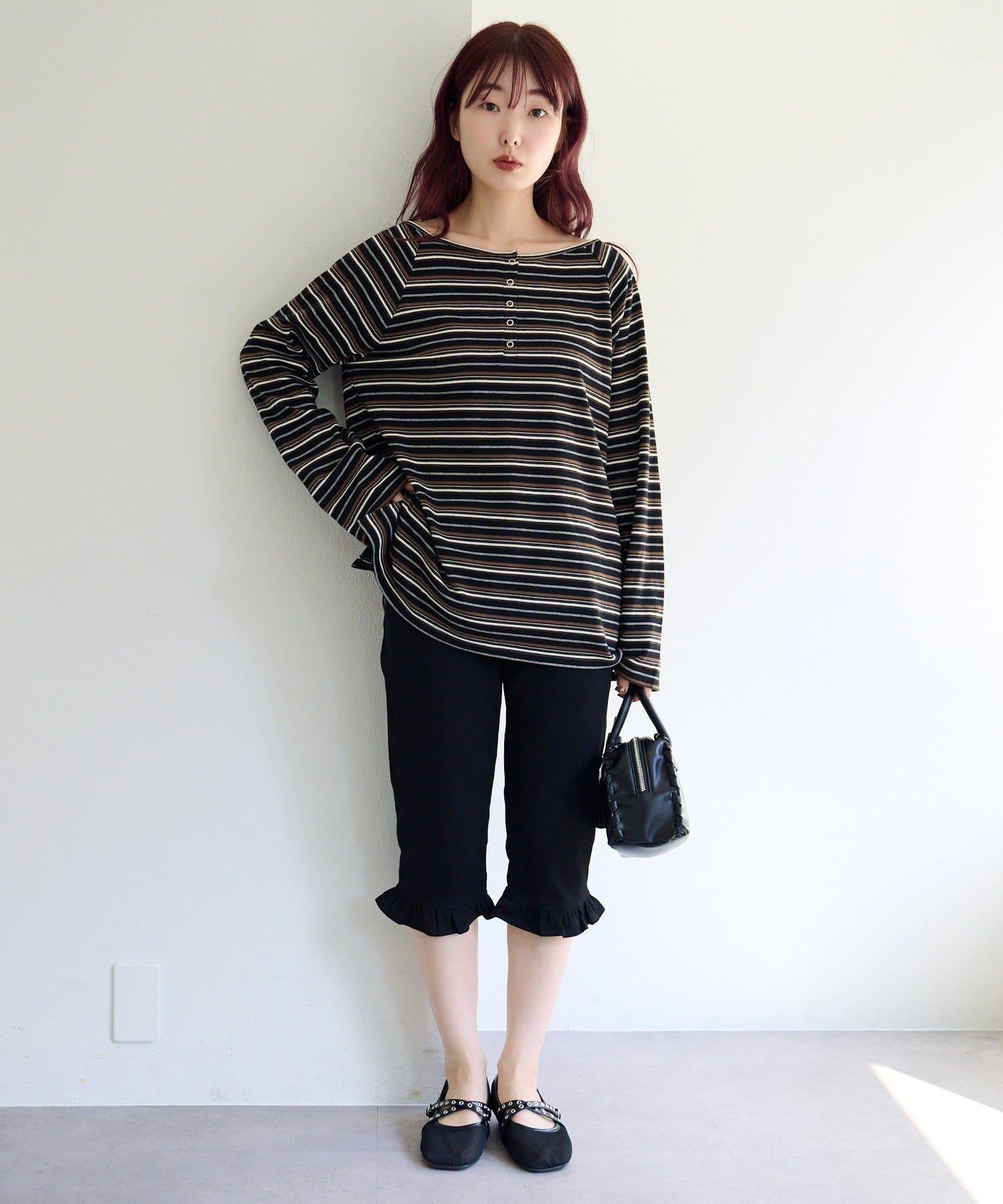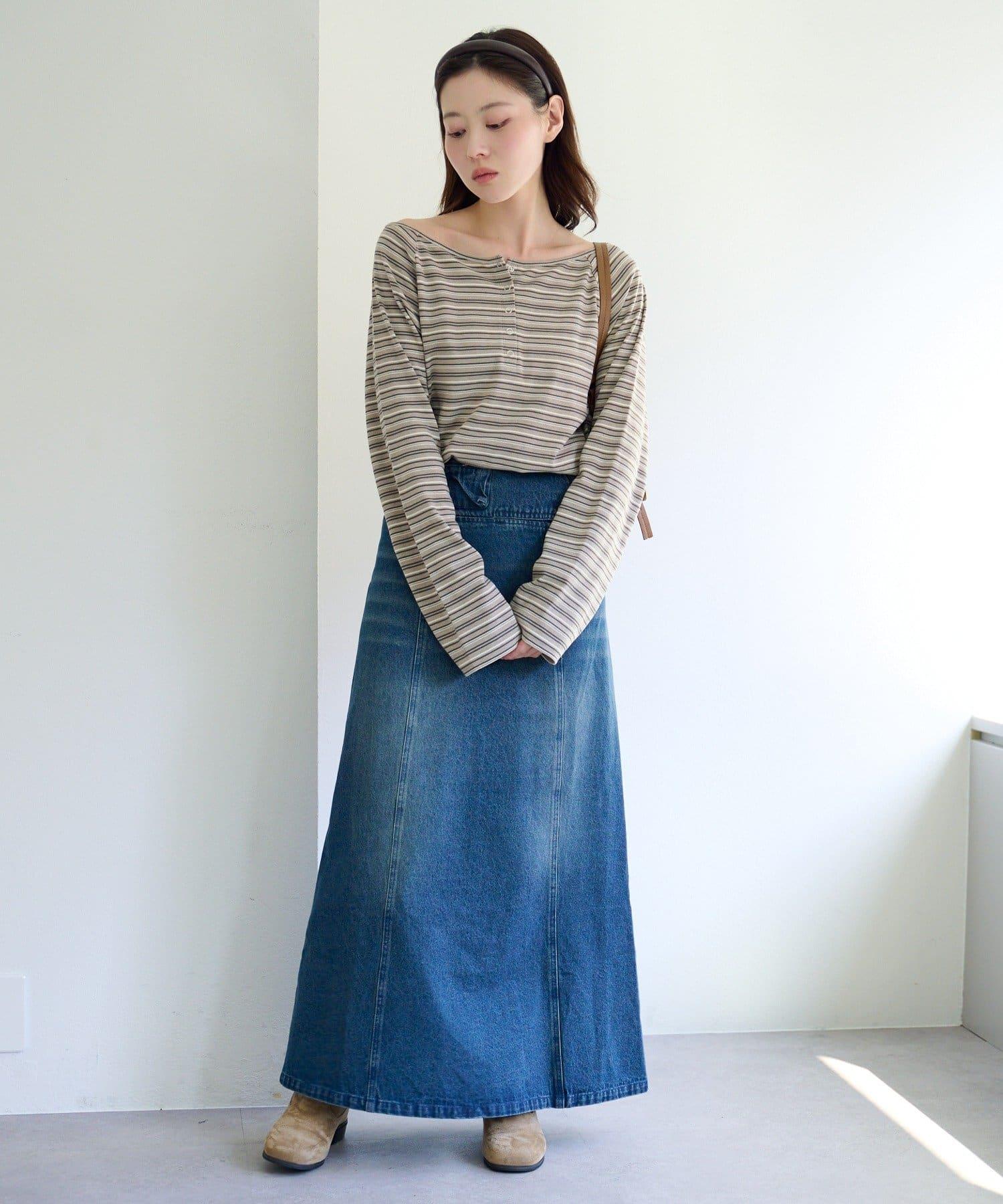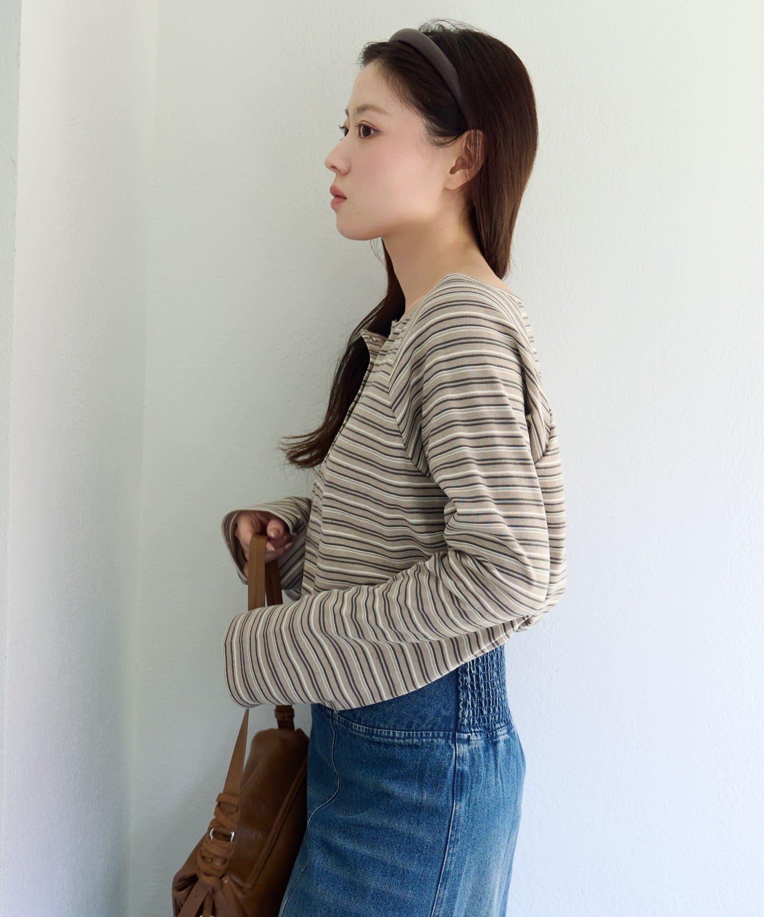 搭配花紋短裙,露肩寬鬆的造型給人女性化的印象。