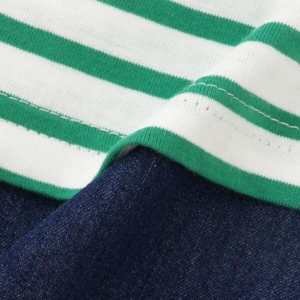 這套連衣裙的特點是採用酷色邊框和牛仔面料製成的吊帶裙,兩者搭配得恰到好處。
