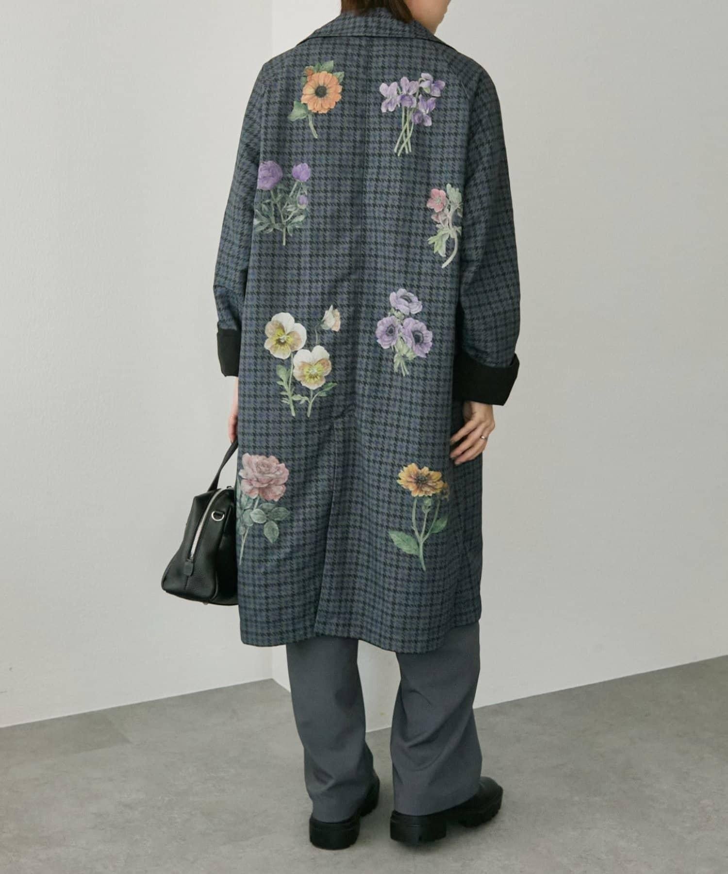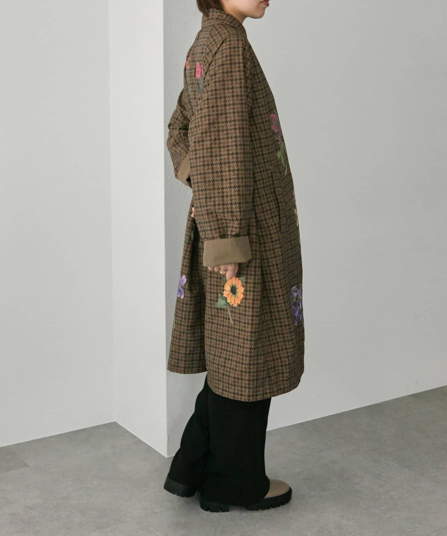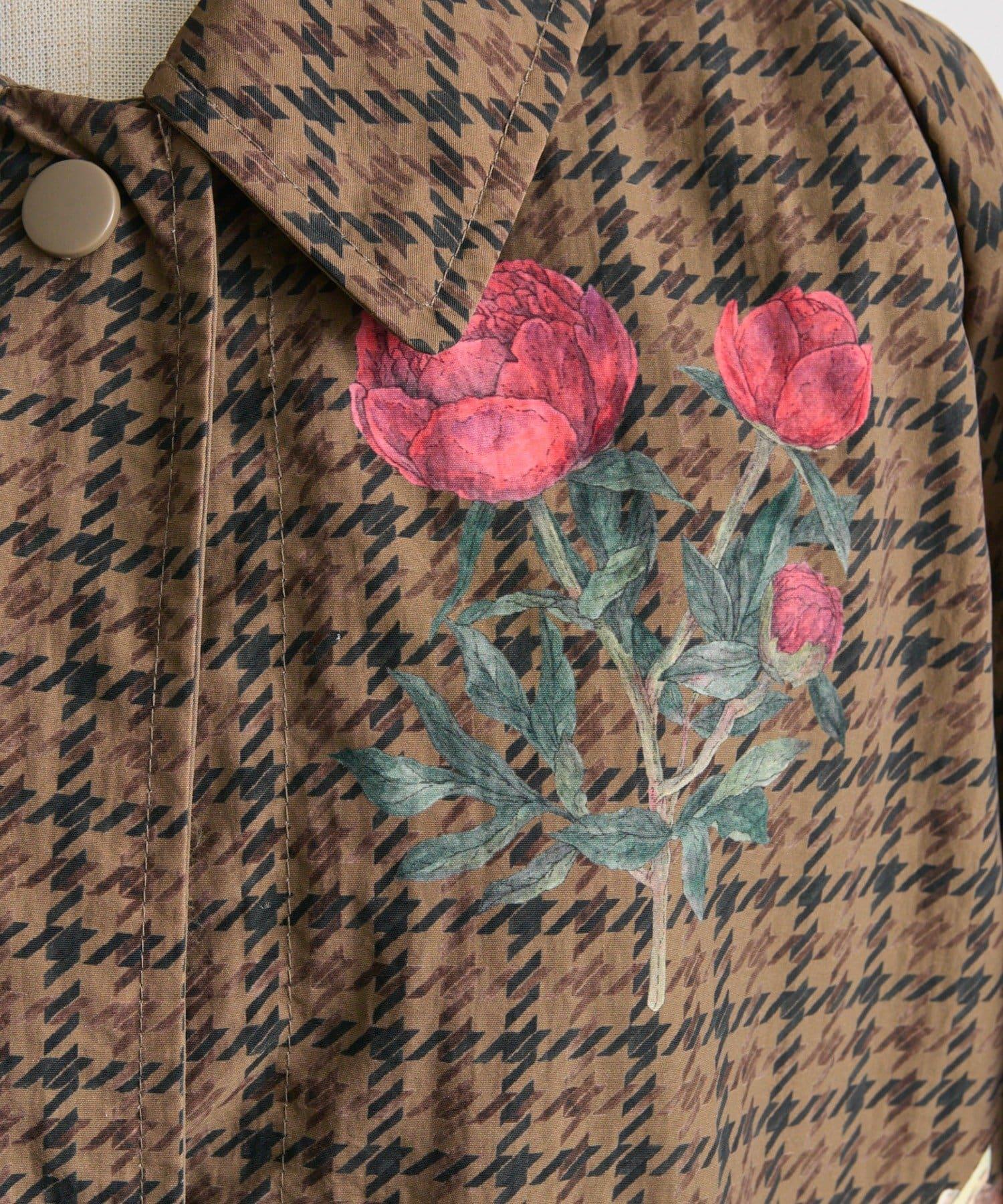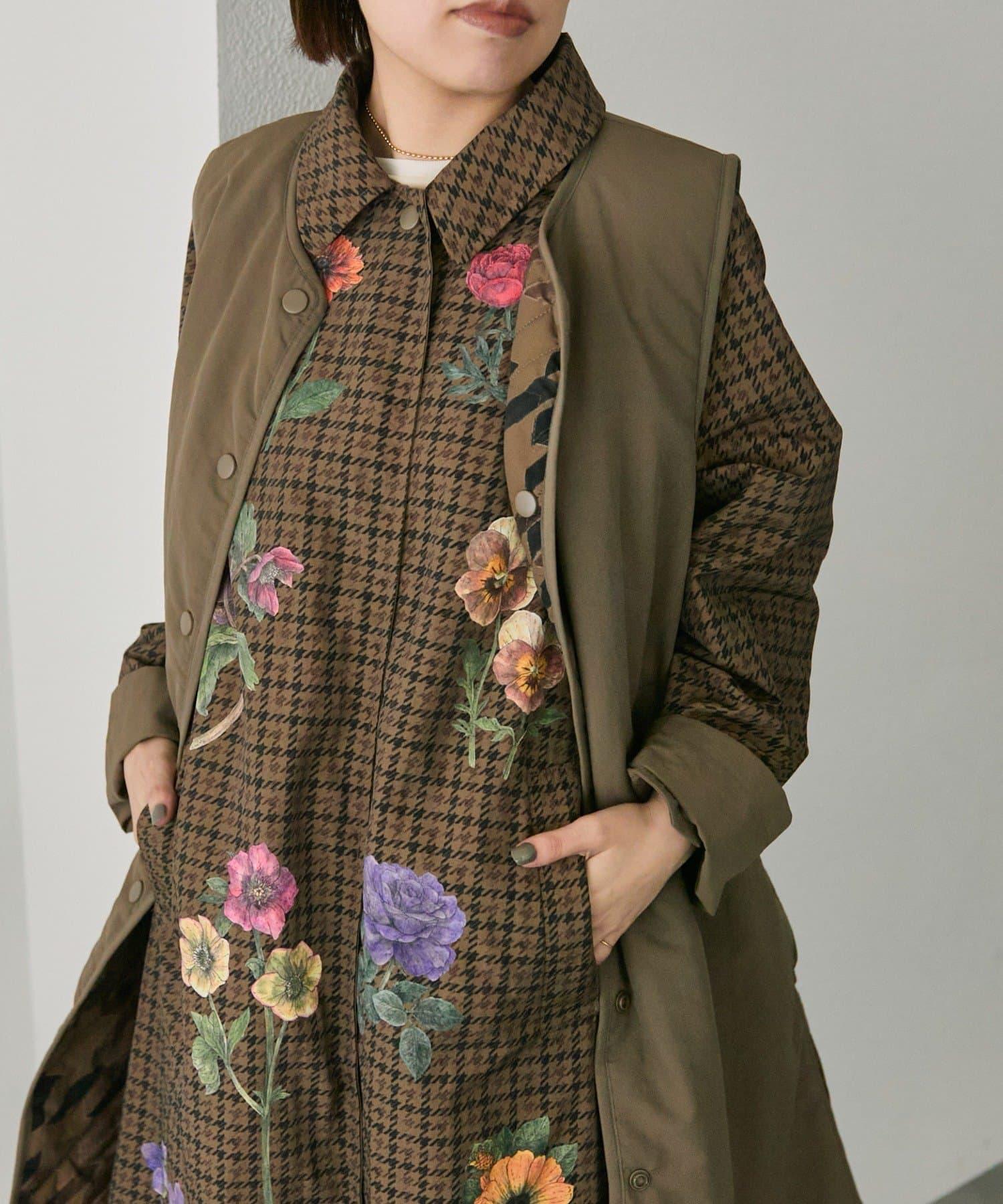 大衣是交錯格紋和花卉圖案的混搭,馬甲則印有交錯格紋圖案。