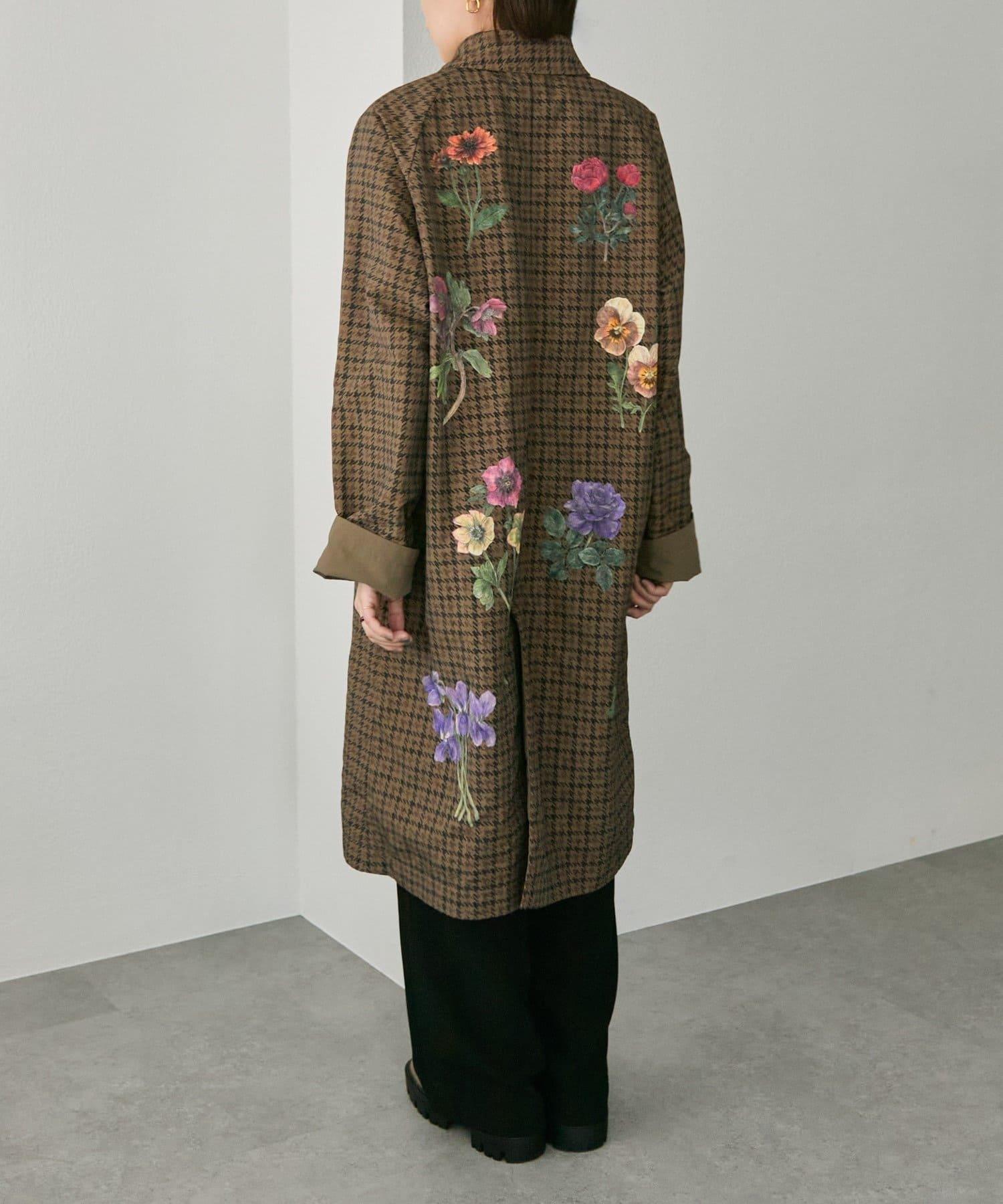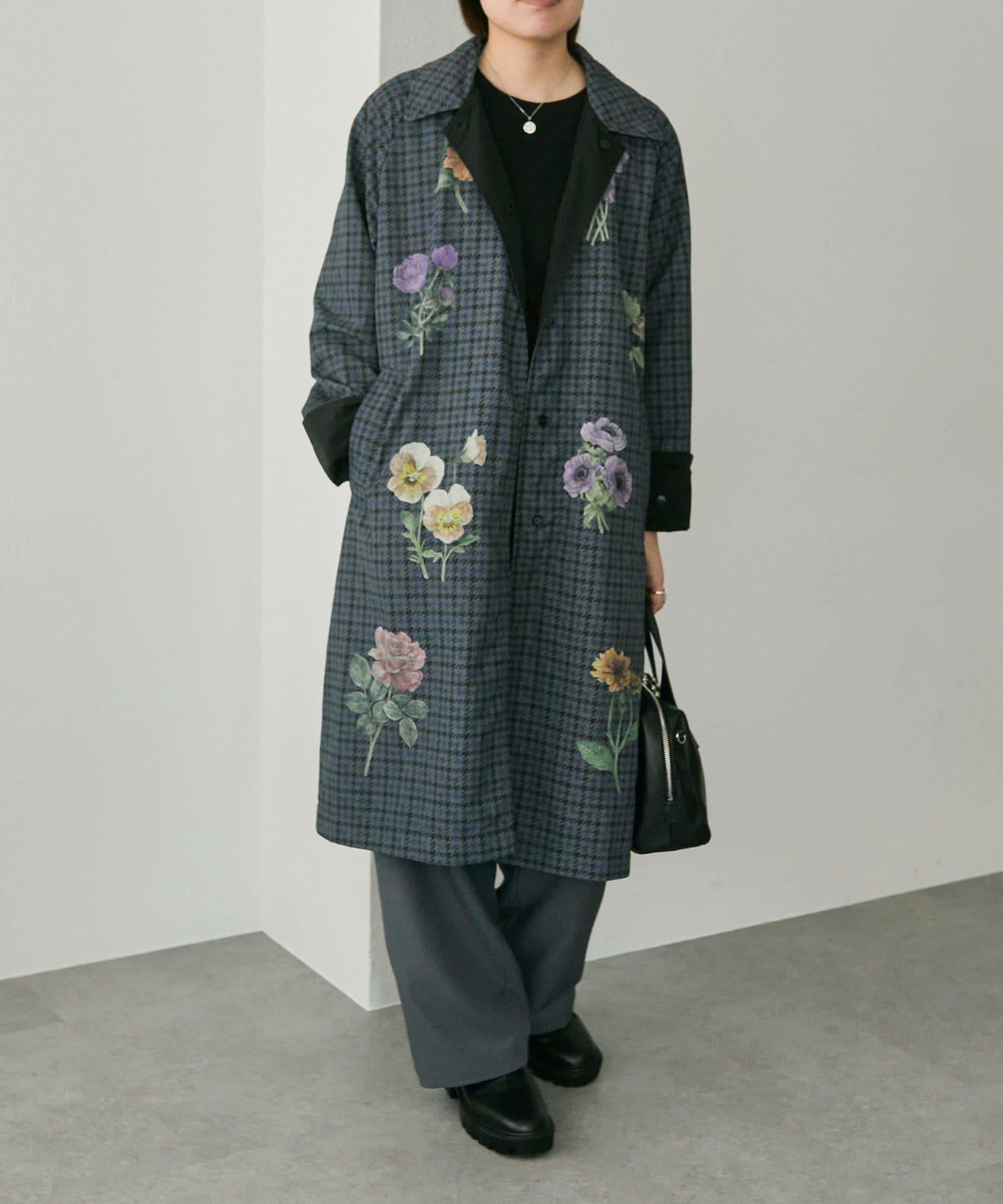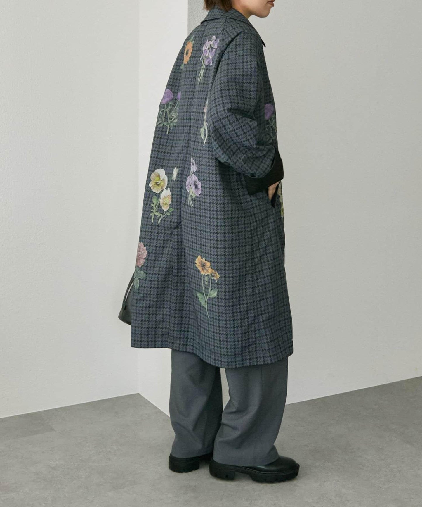 大衣是交錯格紋和花卉圖案的混搭,馬甲則印有交錯格紋圖案。