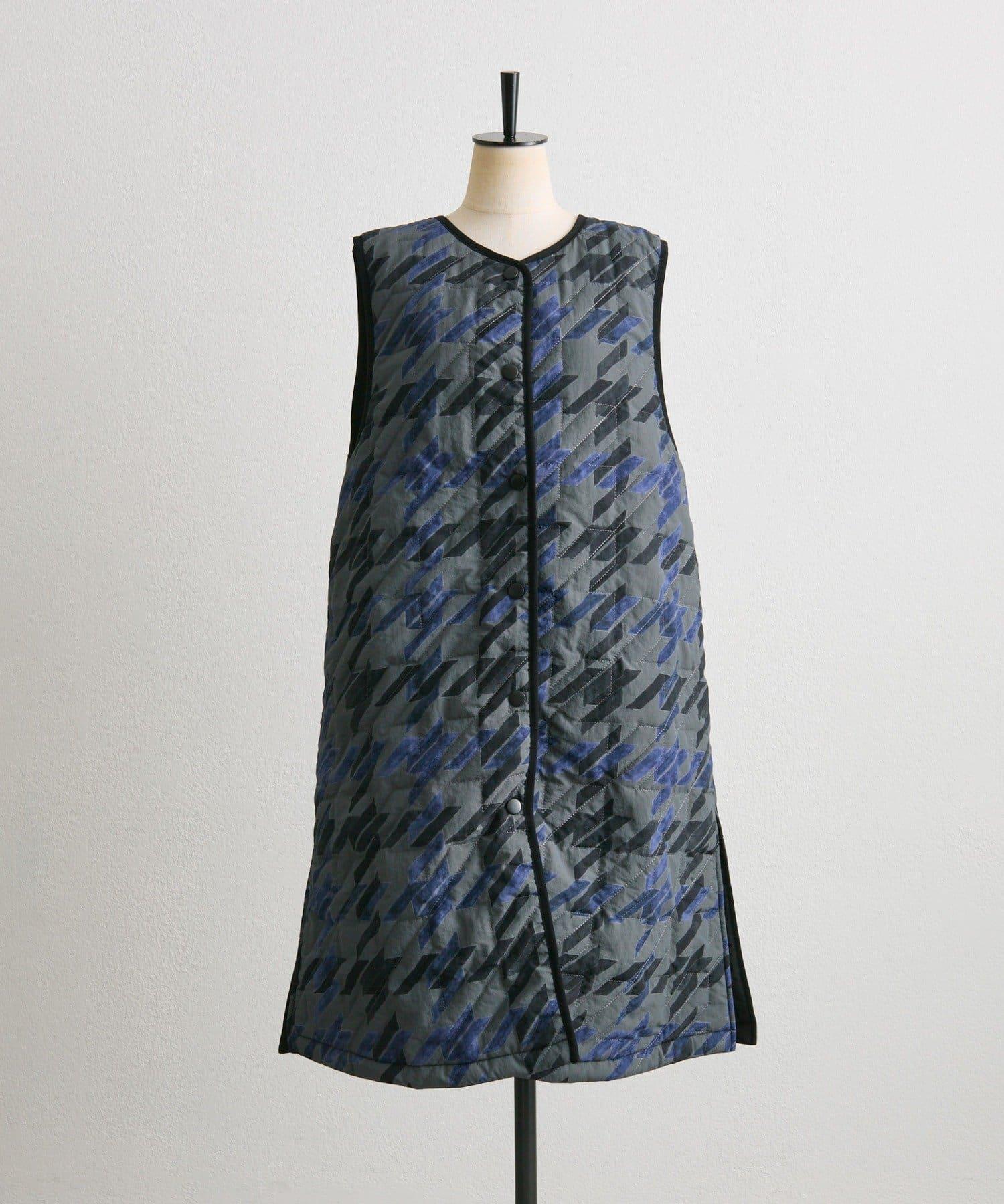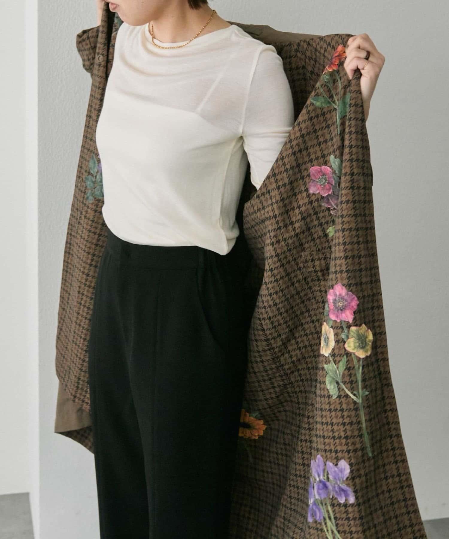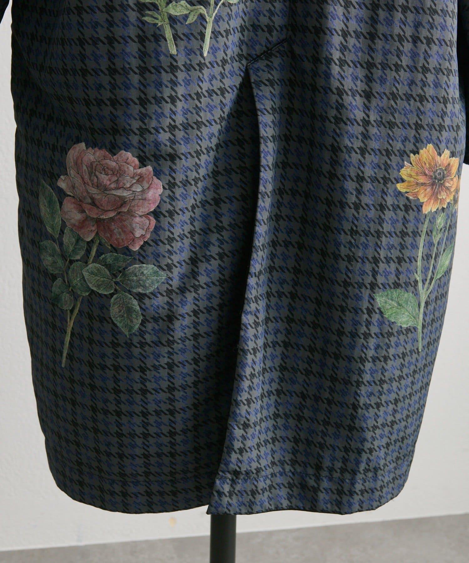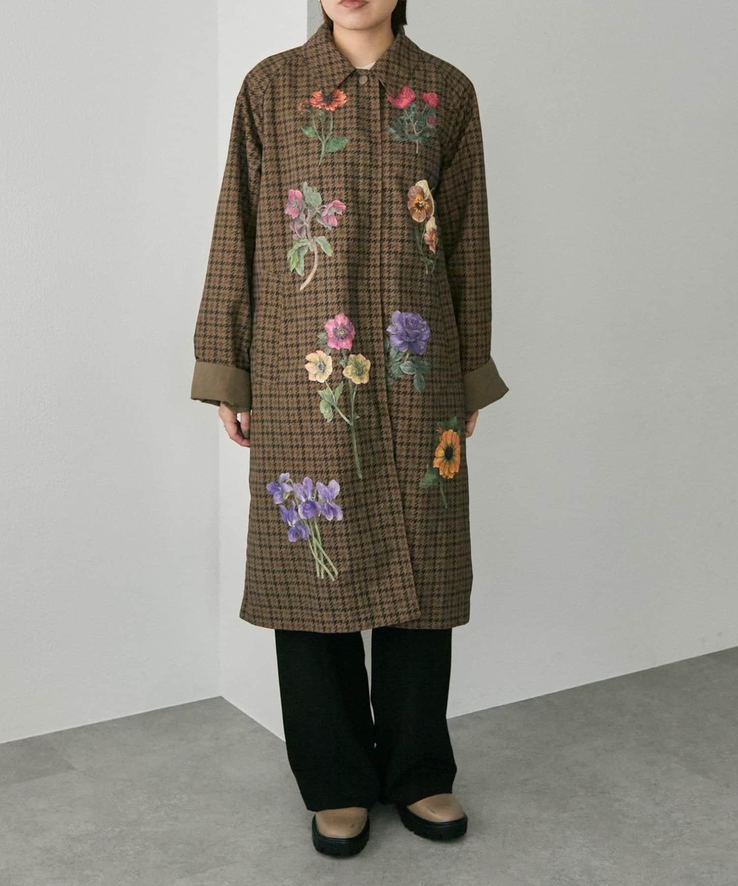 大衣是交錯格紋和花卉圖案的混搭,馬甲則印有交錯格紋圖案。