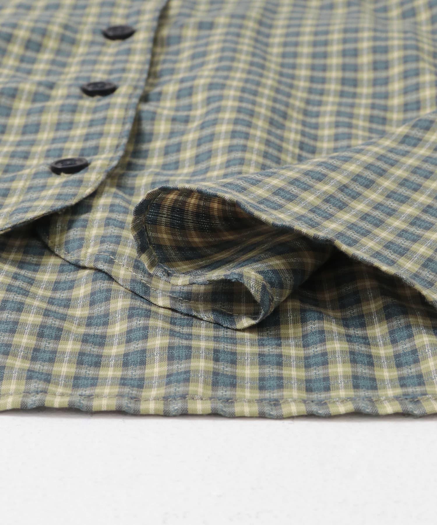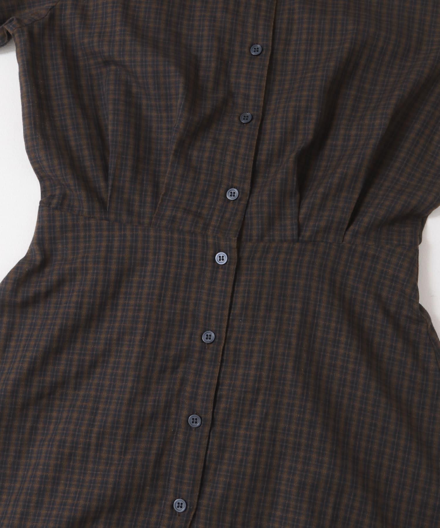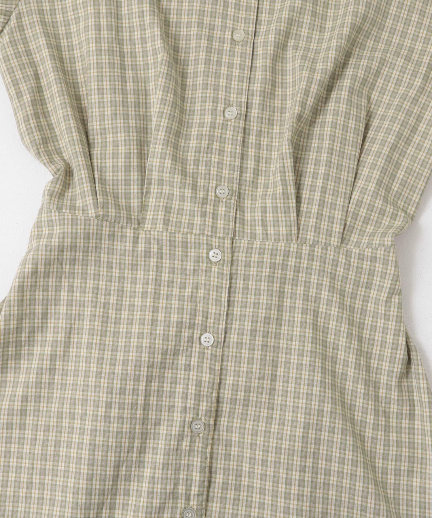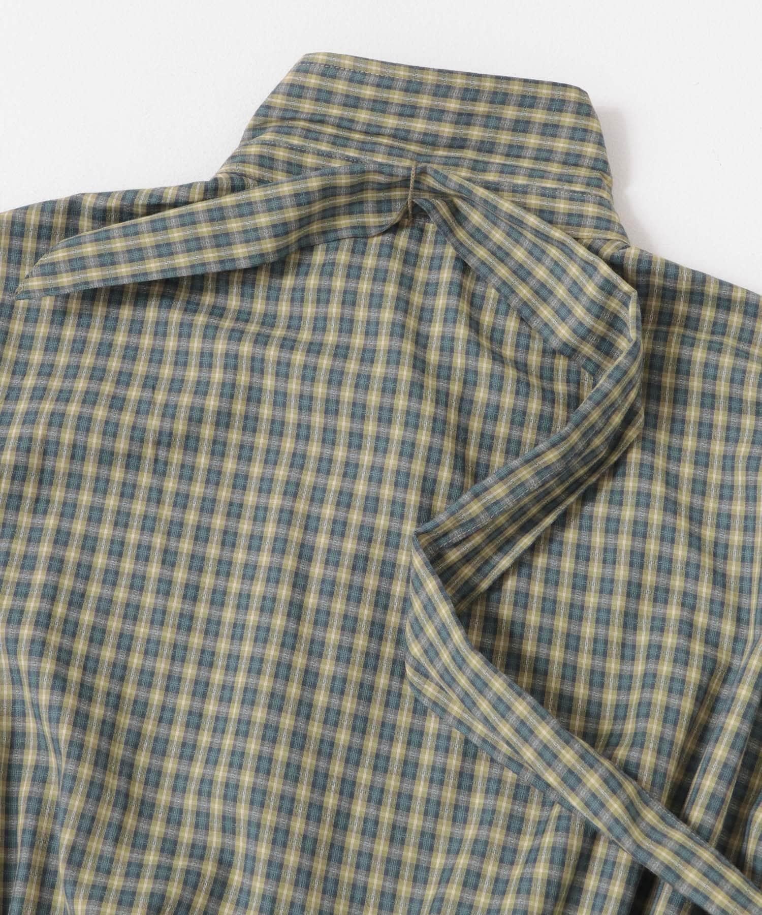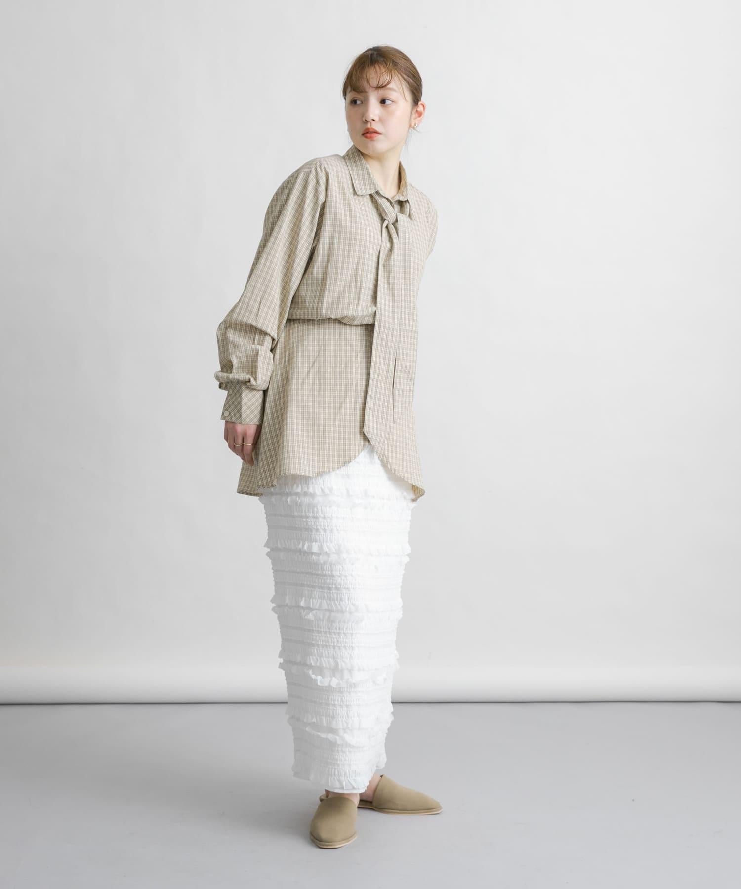 一件可更換的上衣,其輪廓看起來就像襯衫和裙子的疊穿。細微的彩色格紋圖案也很吸引人。襯衫後背有鬆緊帶,建議瀏覽後穿著。附帶的蝴蝶結領帶可拆卸,可根據心情繞在脖子上或腰間。它可以輕鬆打造出時尚的韓式搭配風格。