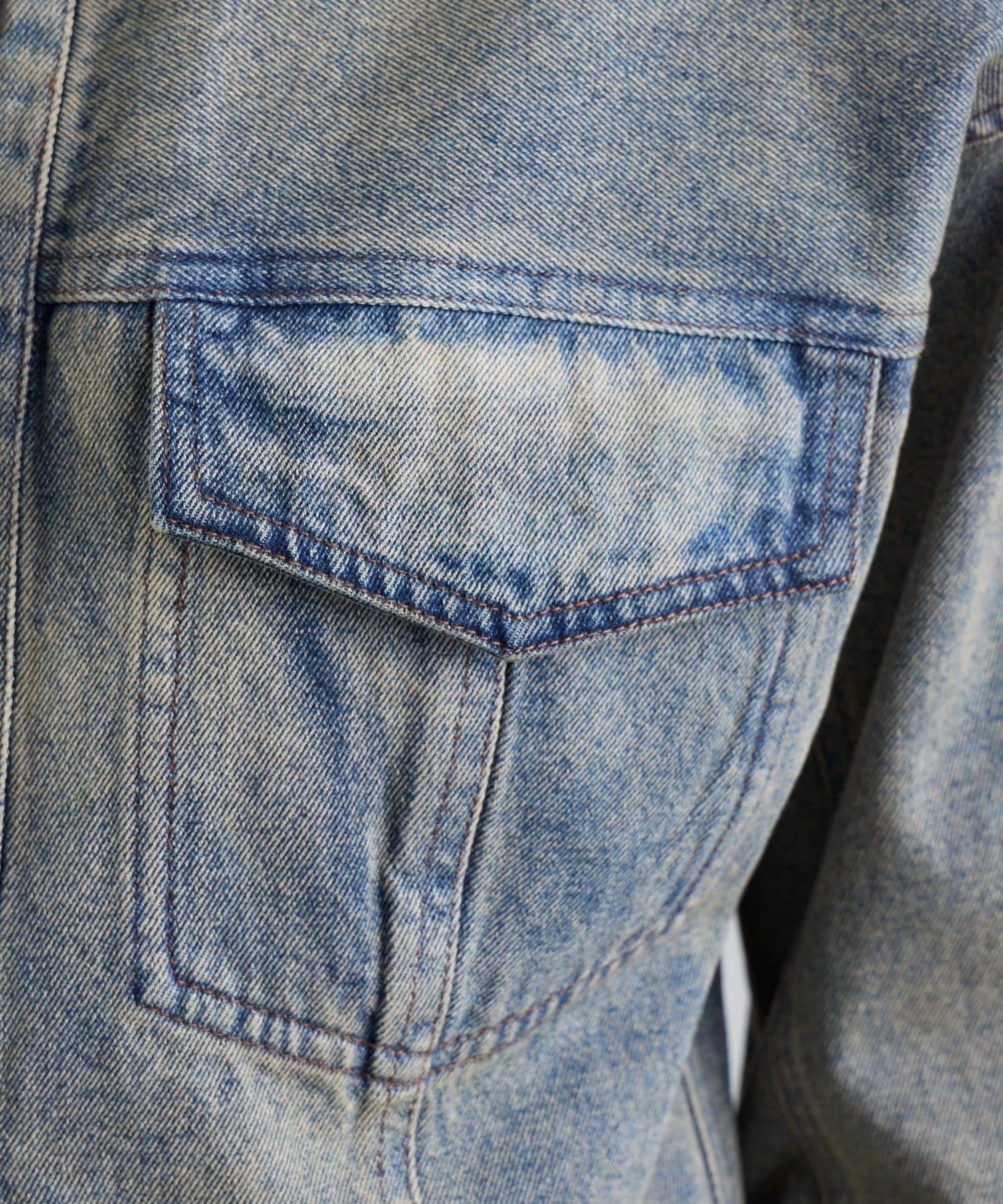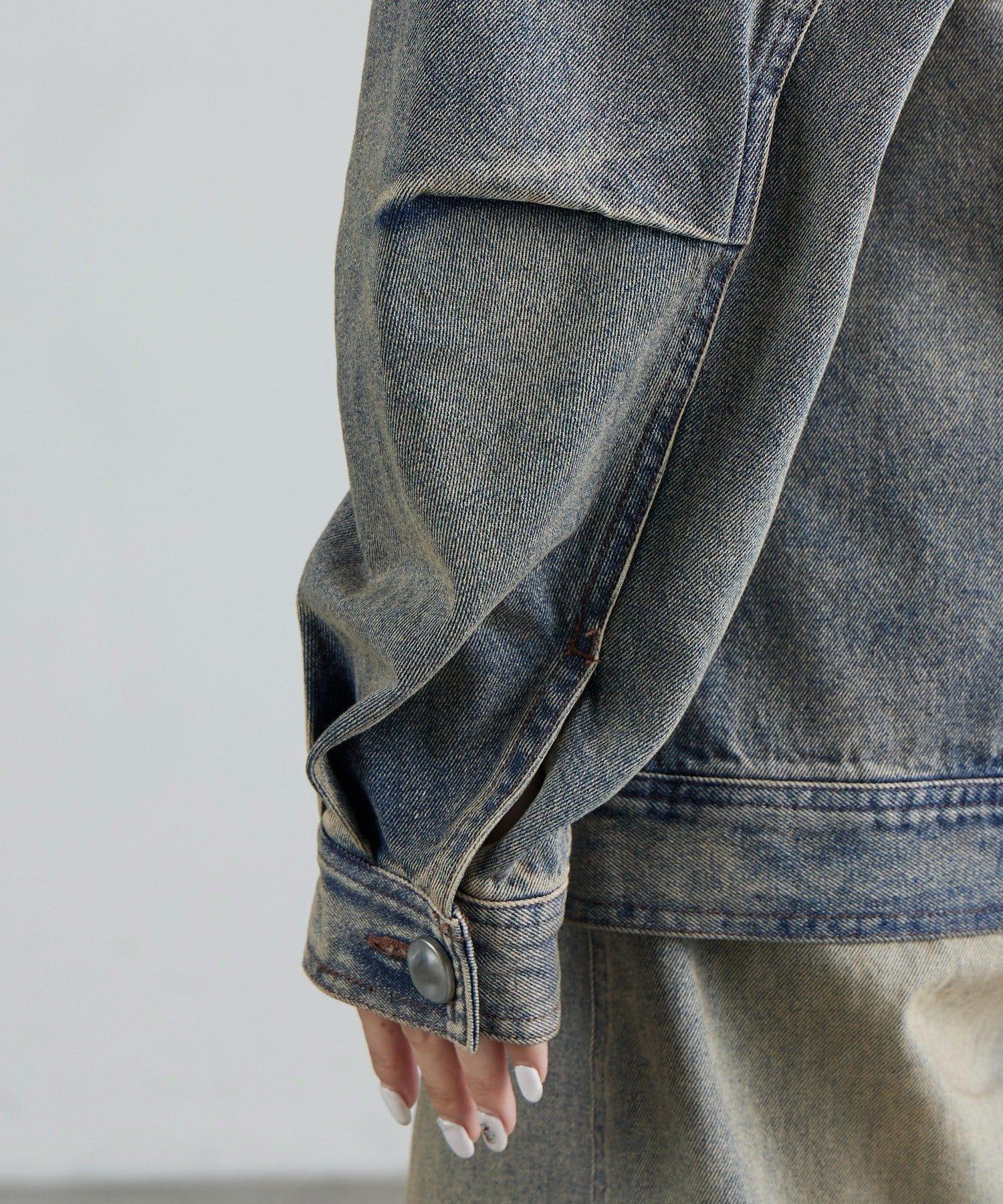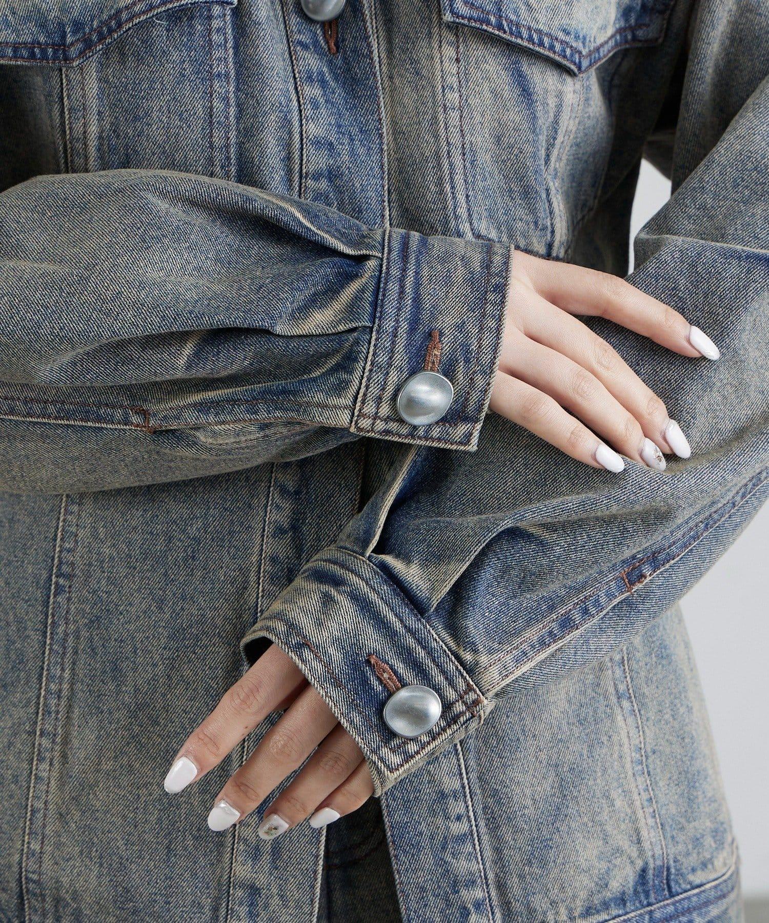 丹寧夾克,採用塑形結構剪裁。
