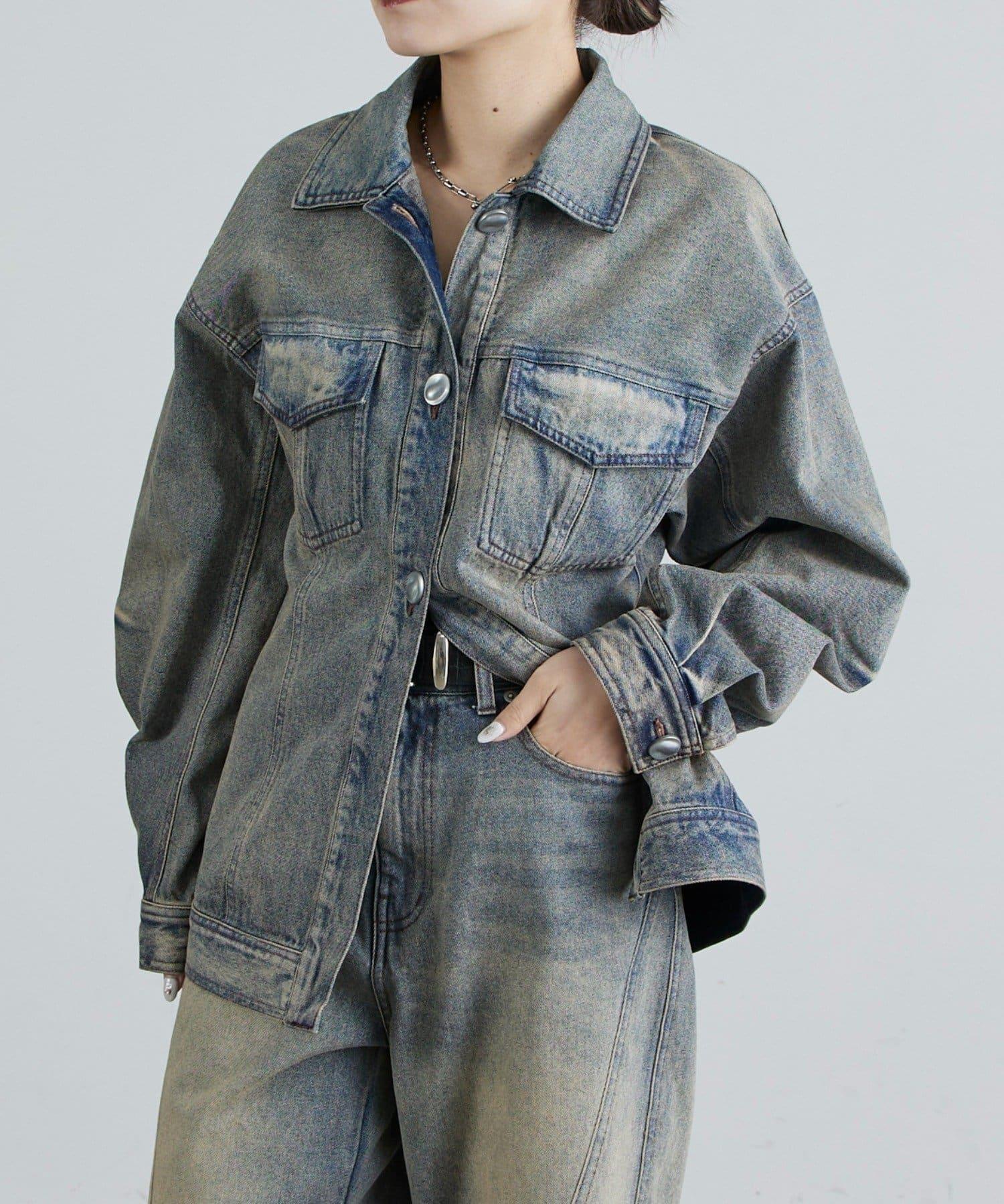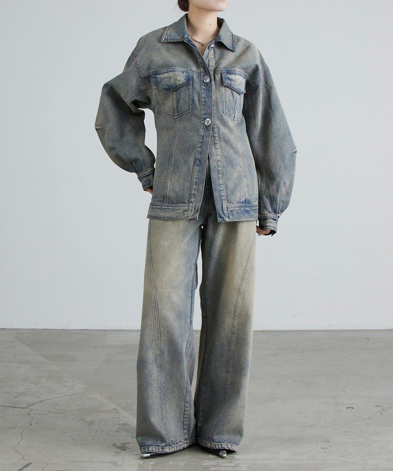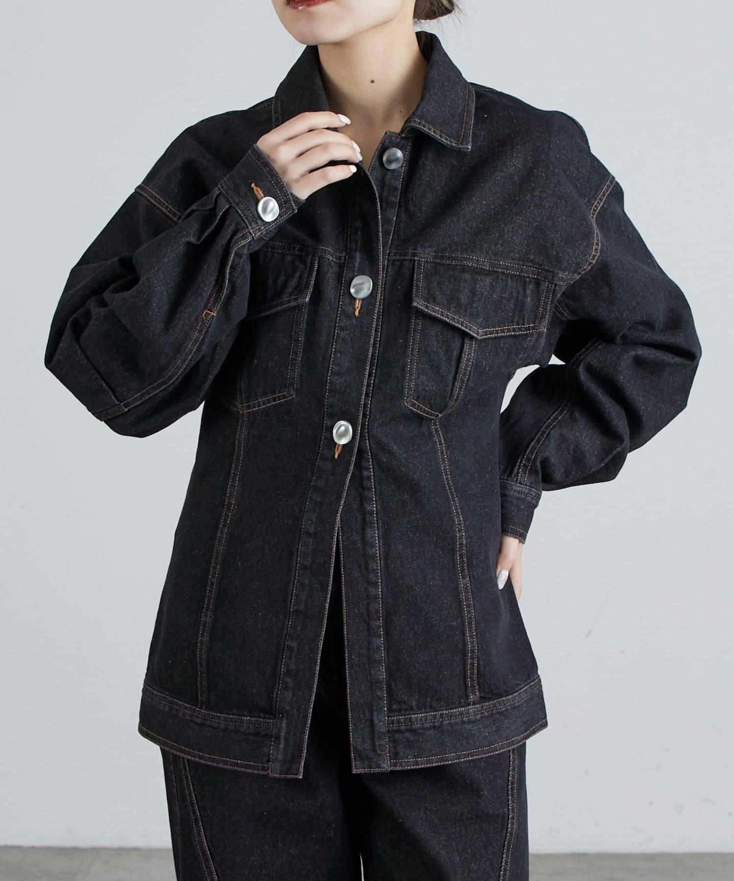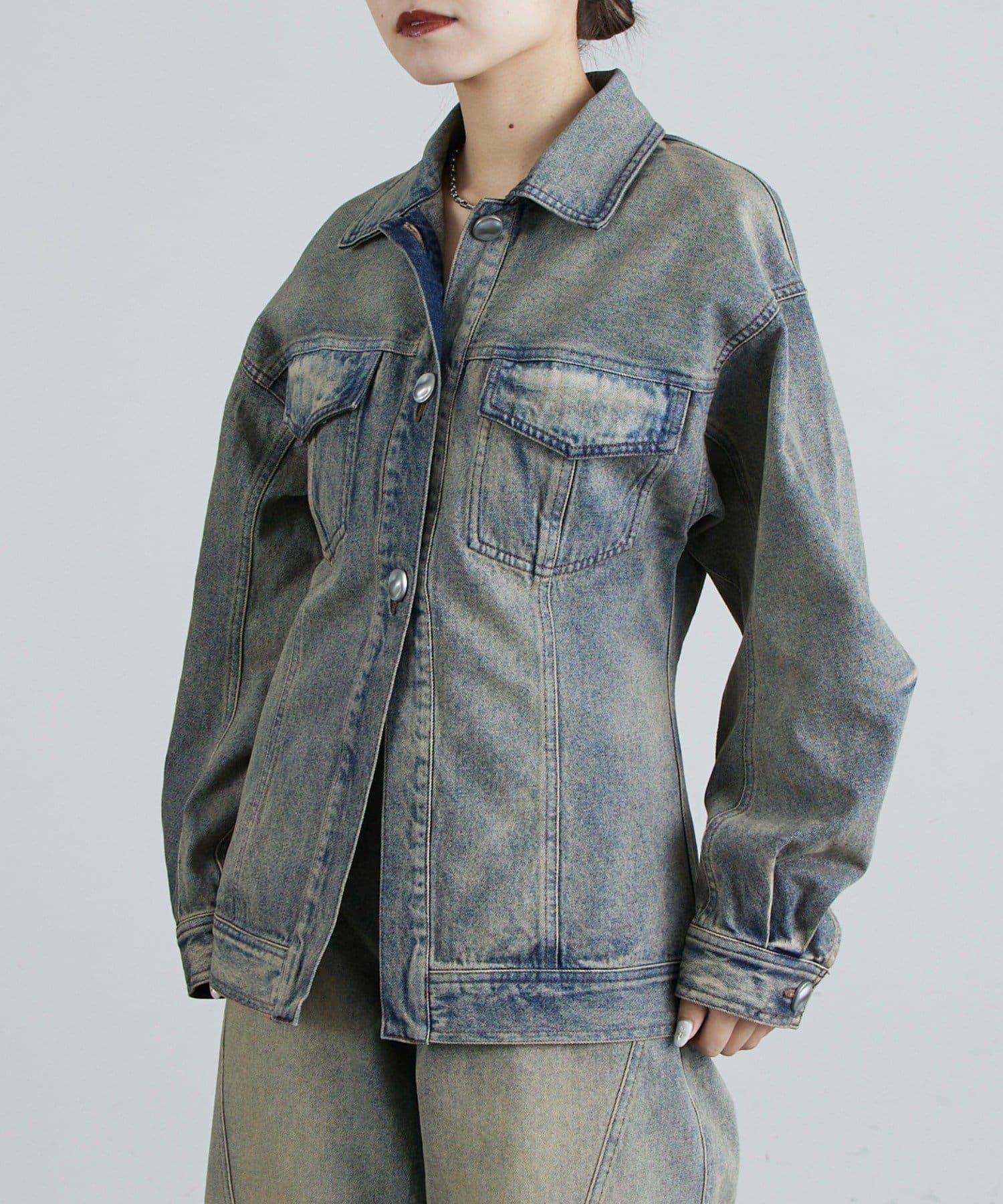 丹寧夾克,採用塑形結構剪裁。