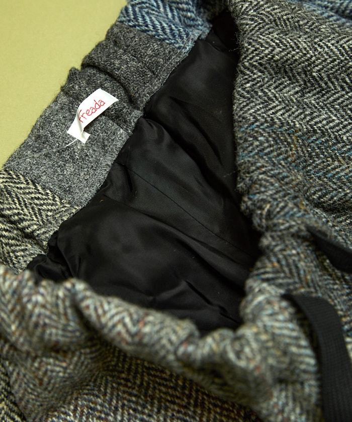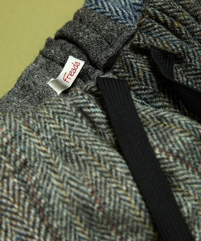 這些斜紋軟呢長褲是從哈里斯斜紋軟呢外套上精心拆卸下來的,然後重新拼接成長褲。