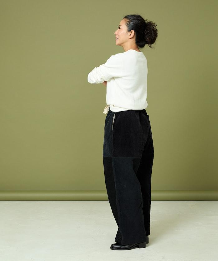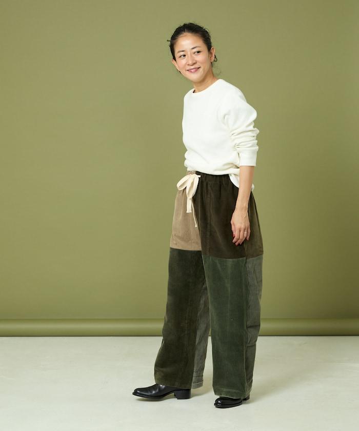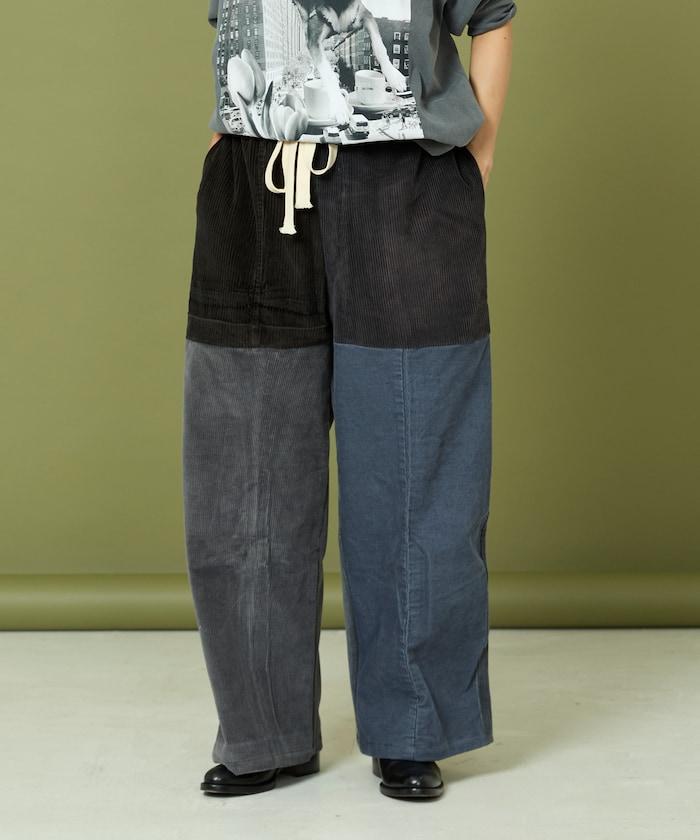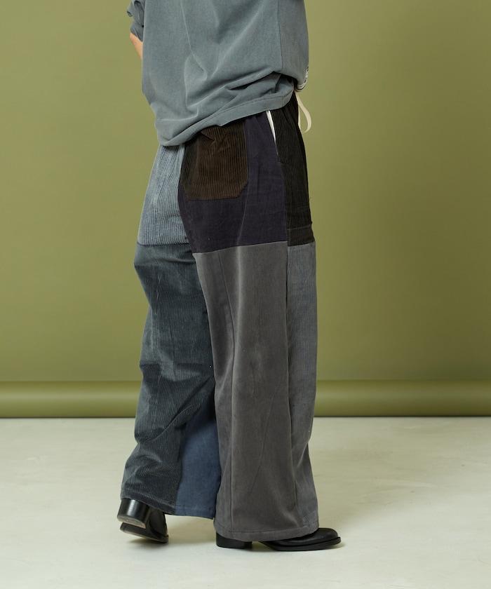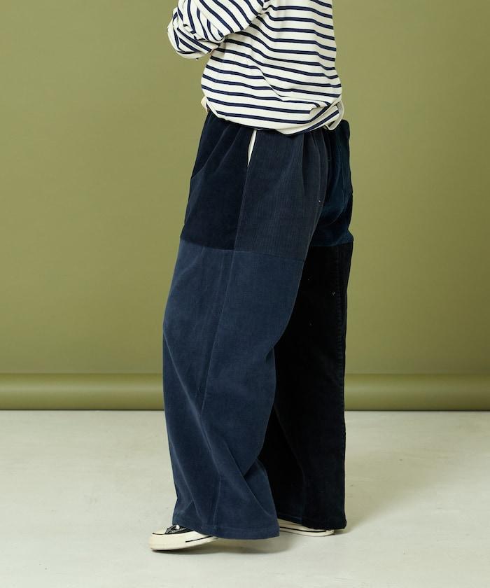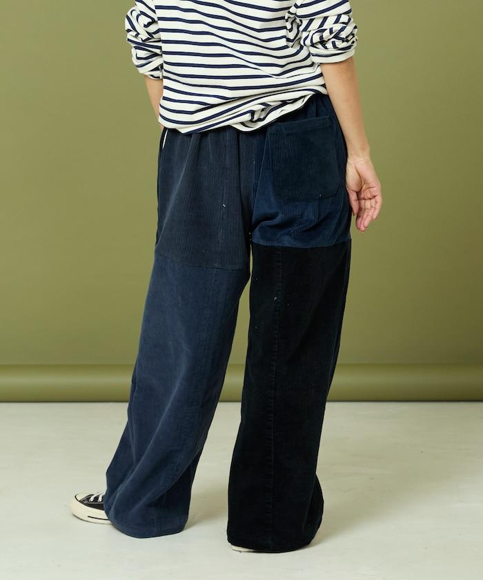 我們將四條用過的彩色燈芯絨長褲拆開,重新組合成一條褲子。