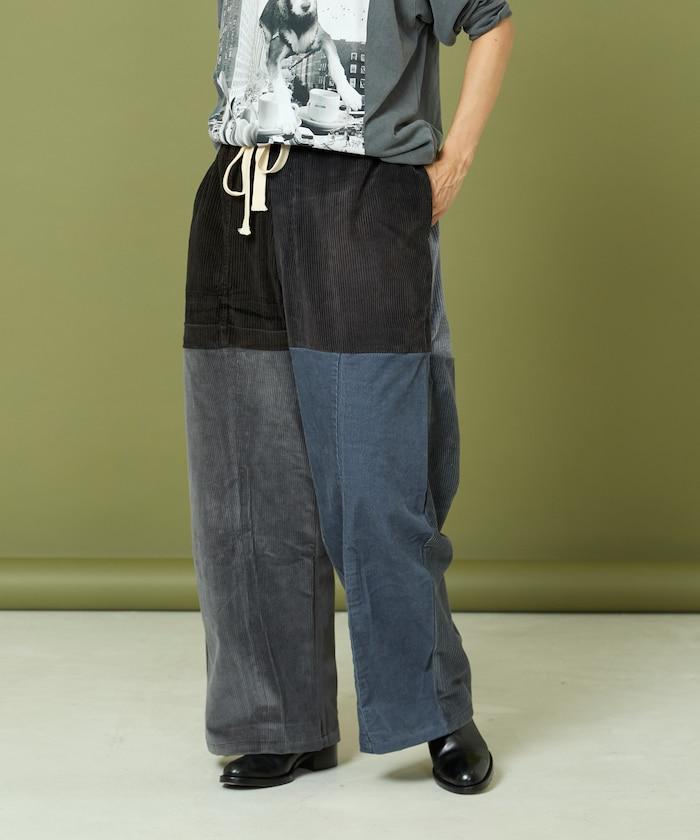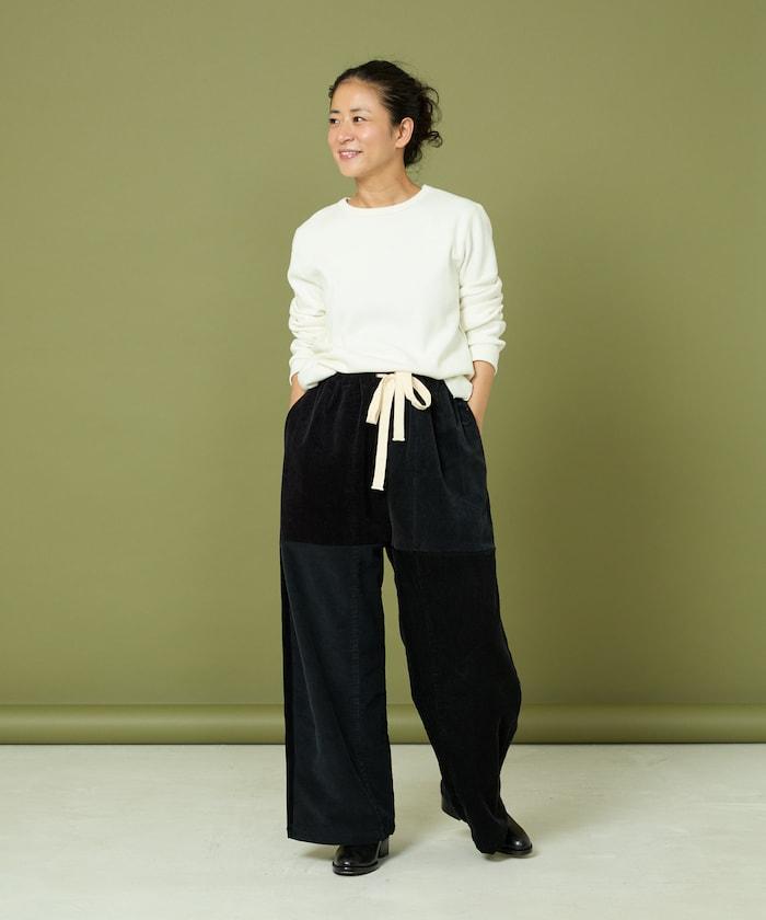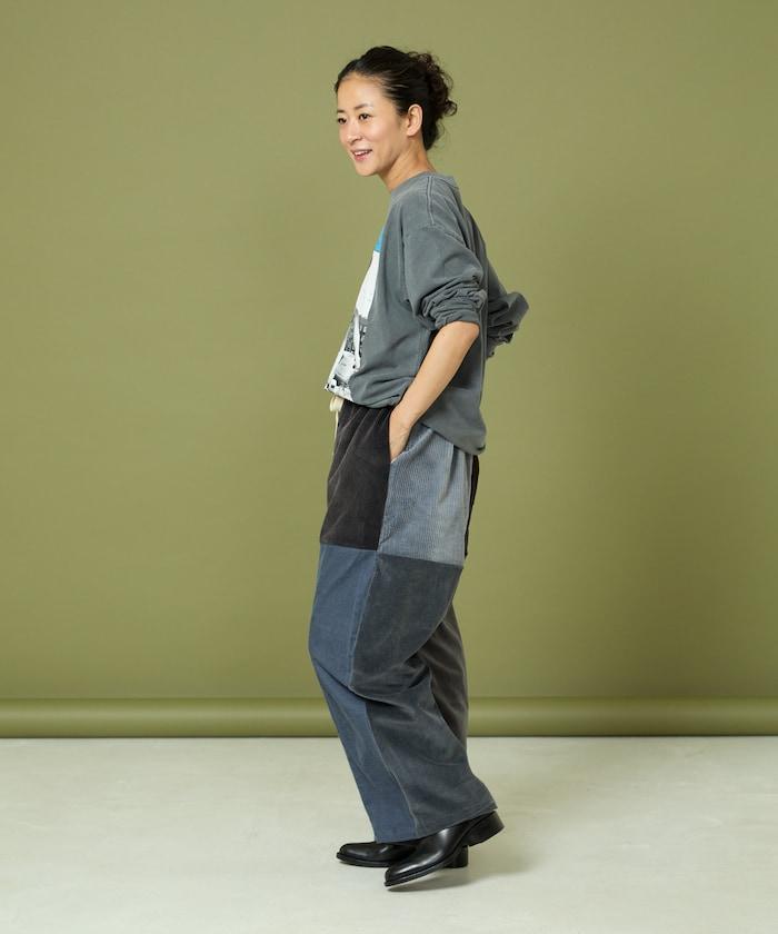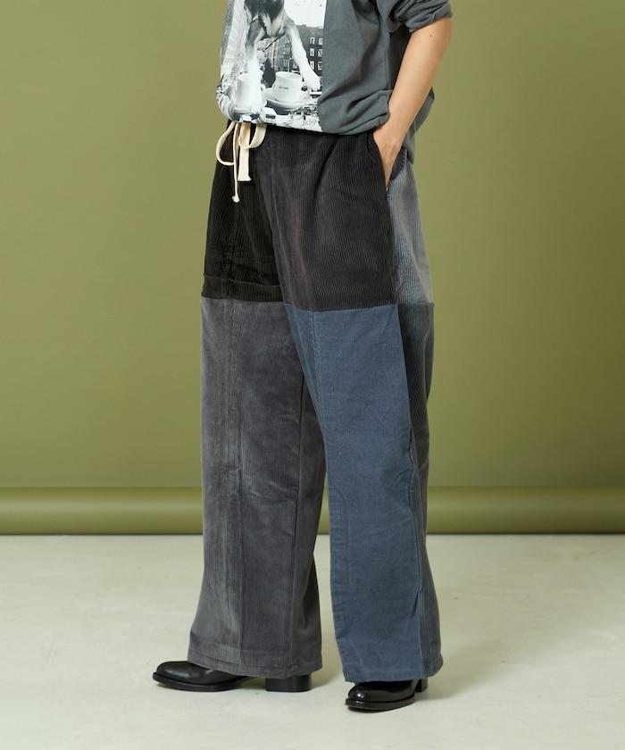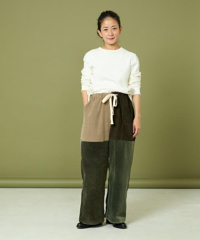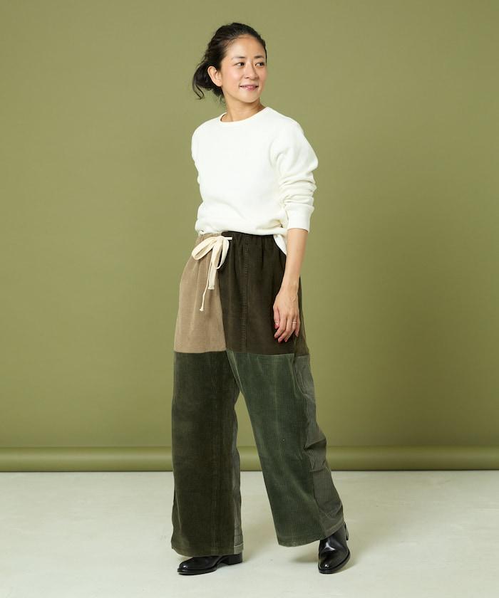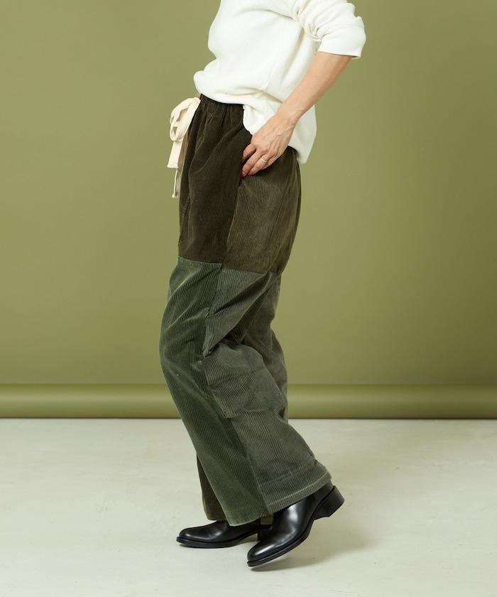 我們將四條用過的彩色燈芯絨長褲拆開,重新組合成一條褲子。