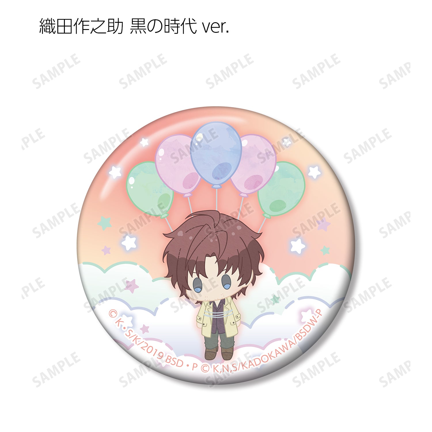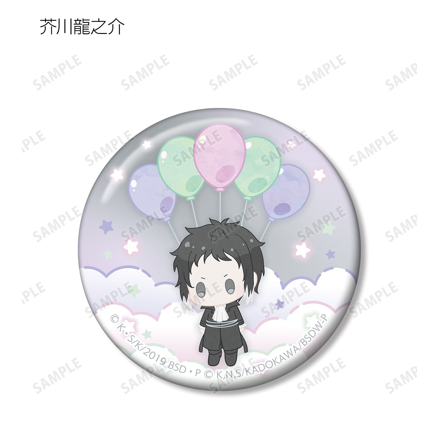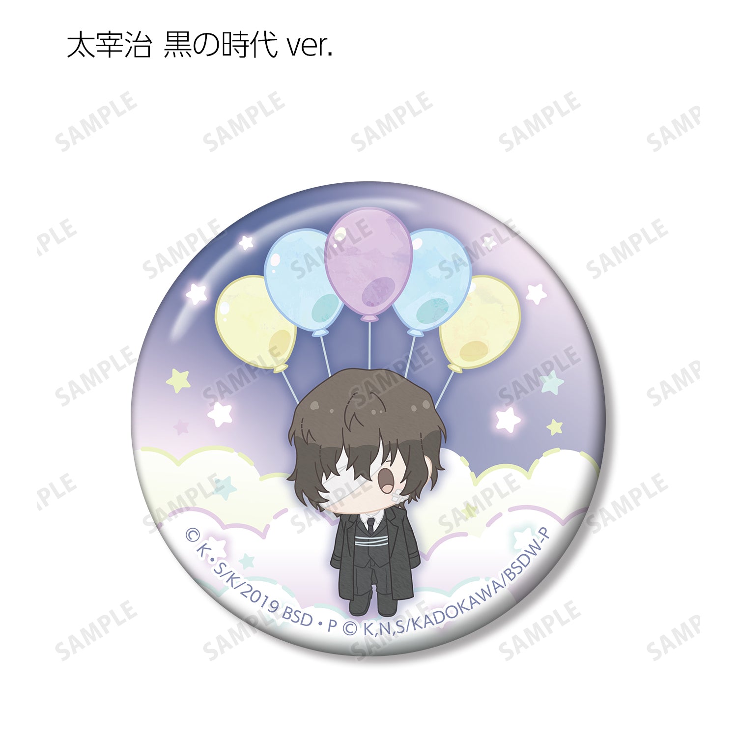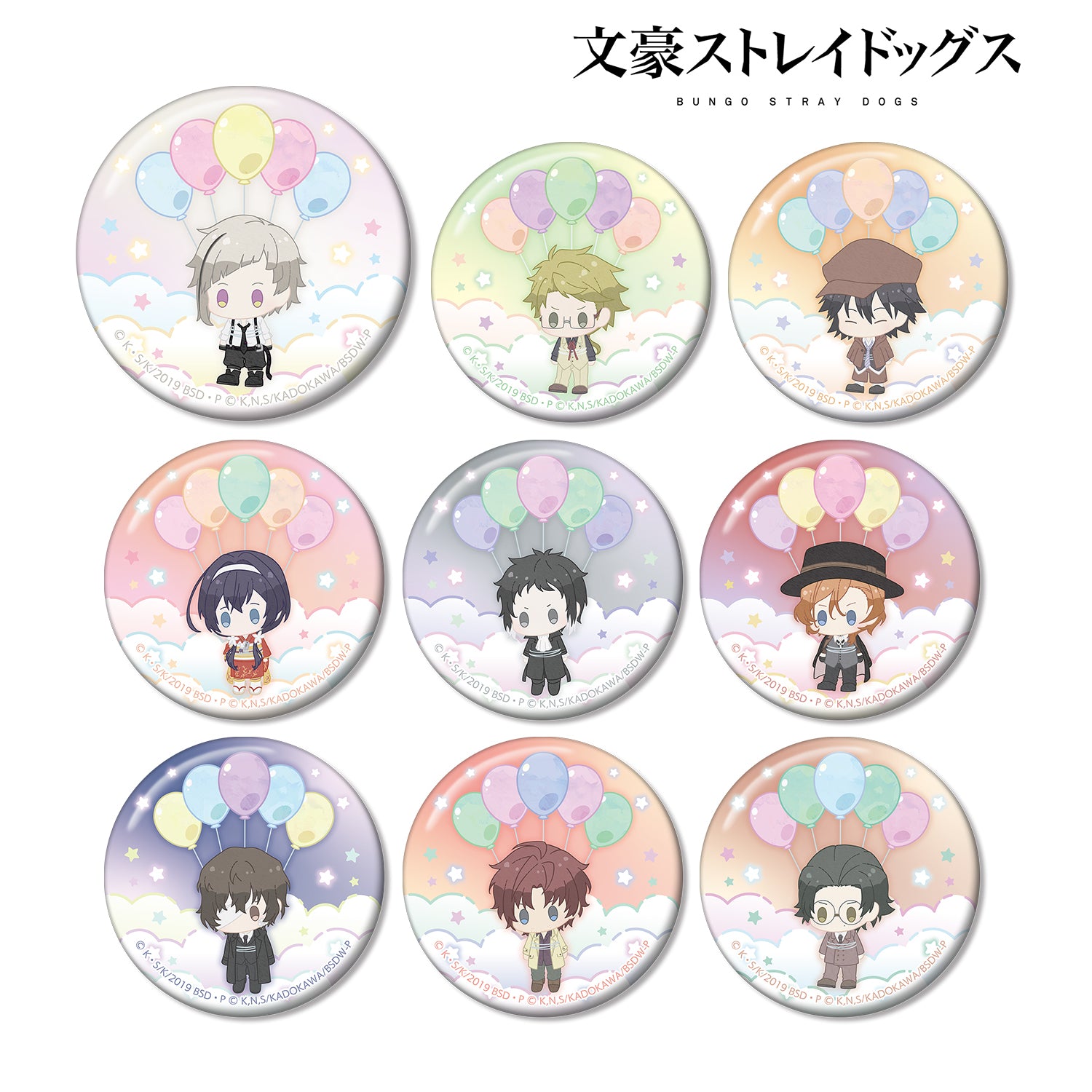 中島篤史、國木田多寶、江戶川亂步、泉京岡、芥川龍之介、中原仲也、太宰治黑色時代版、織田作之助黑色時代版、坂口安吾黑色時代版等角色,以毛絨玩具漂浮在空中氣球上的形象繪製而成。