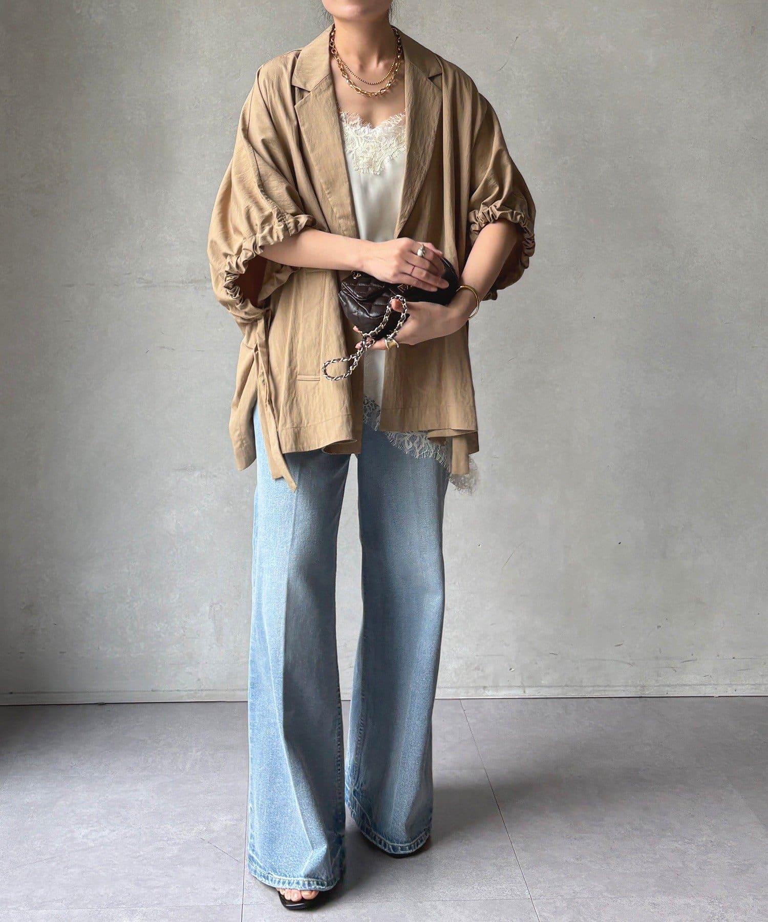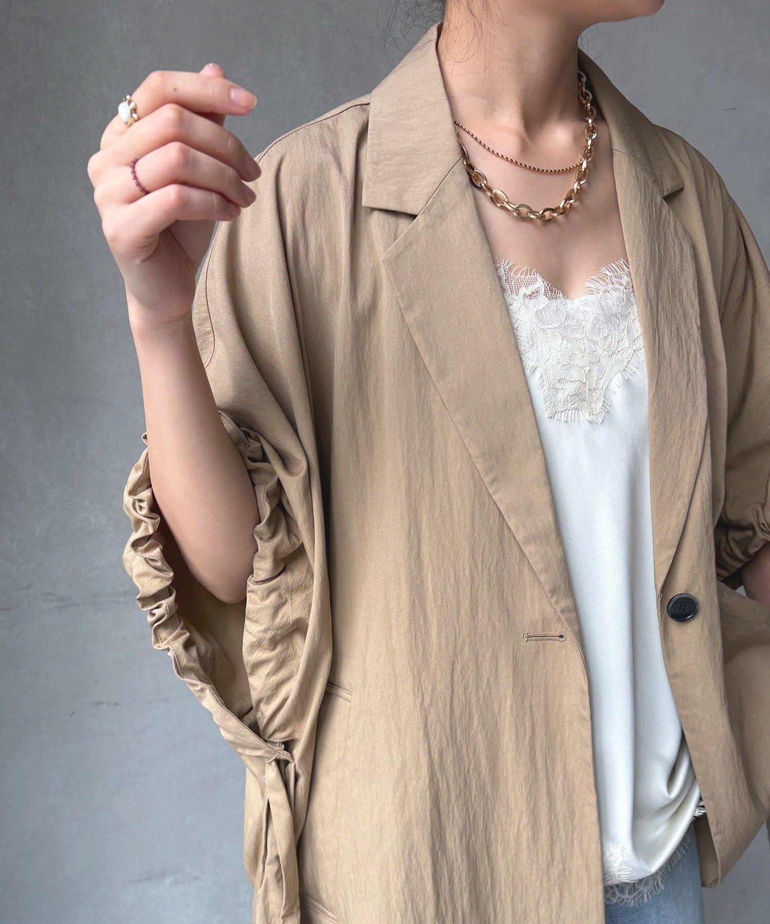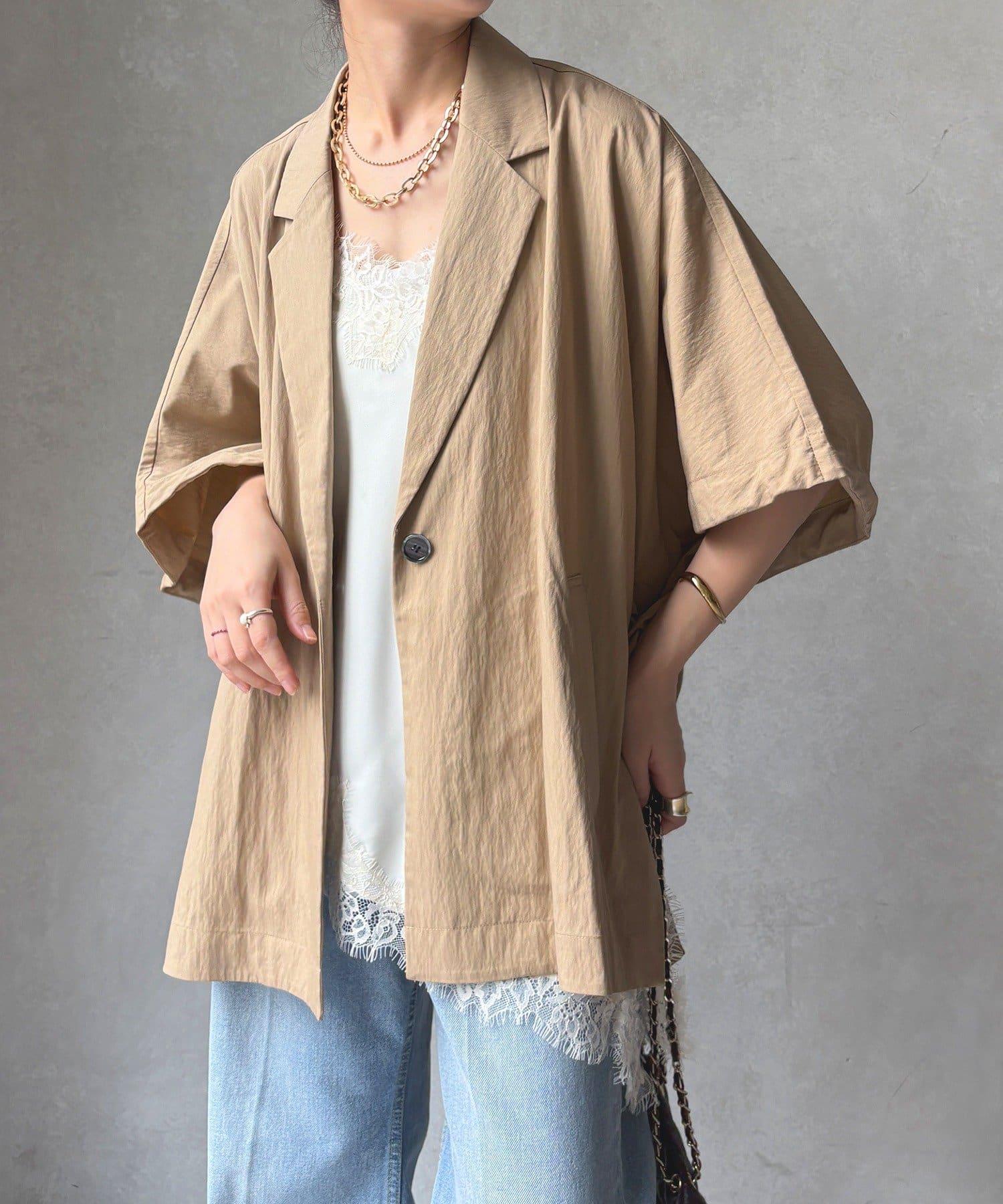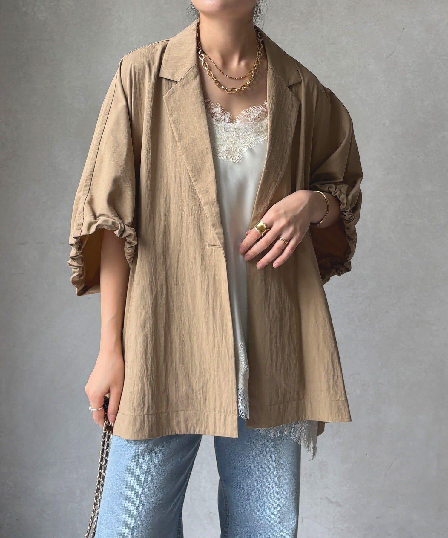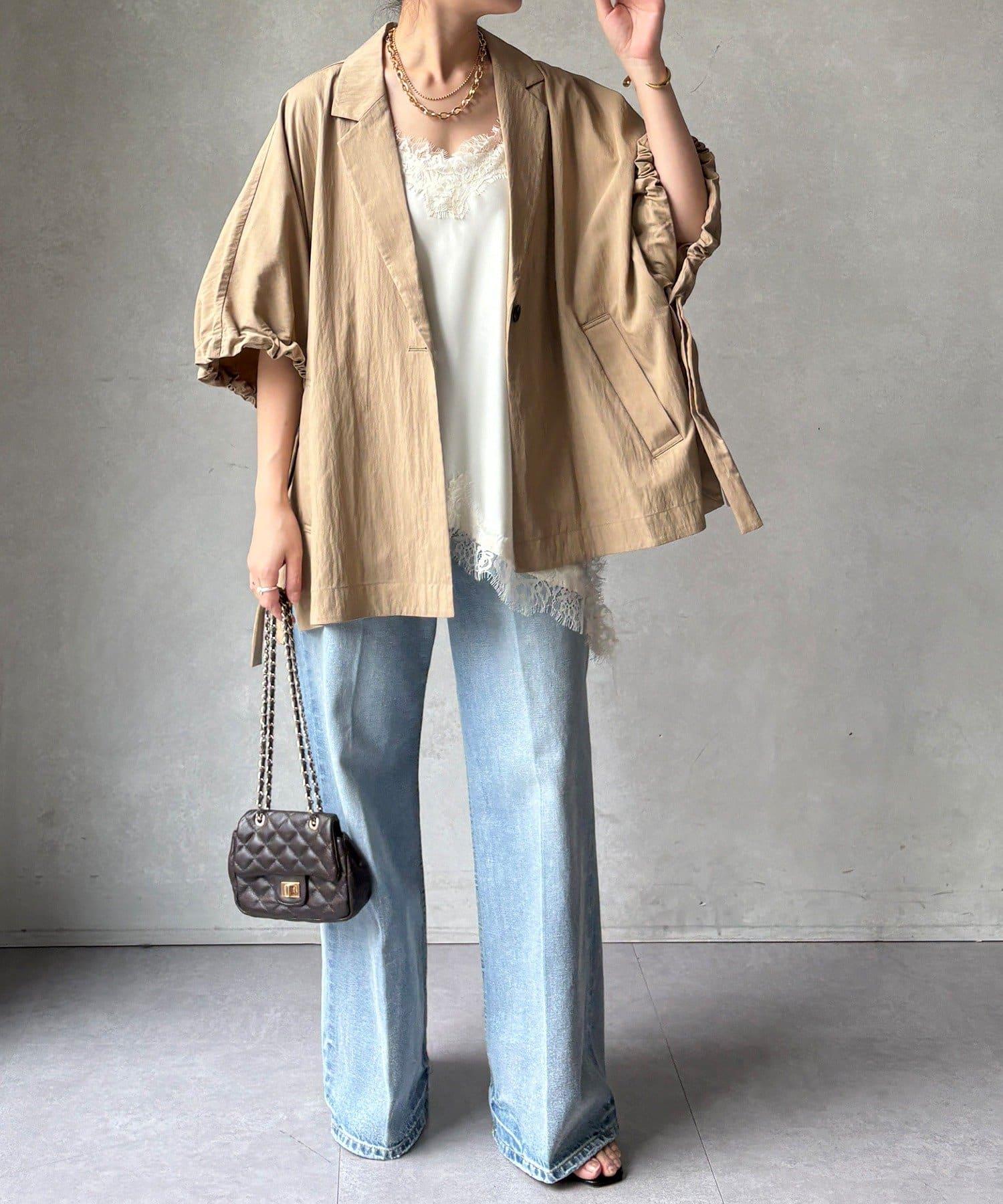 披風式夾克,袖子可以收起,瞬間變得可愛。